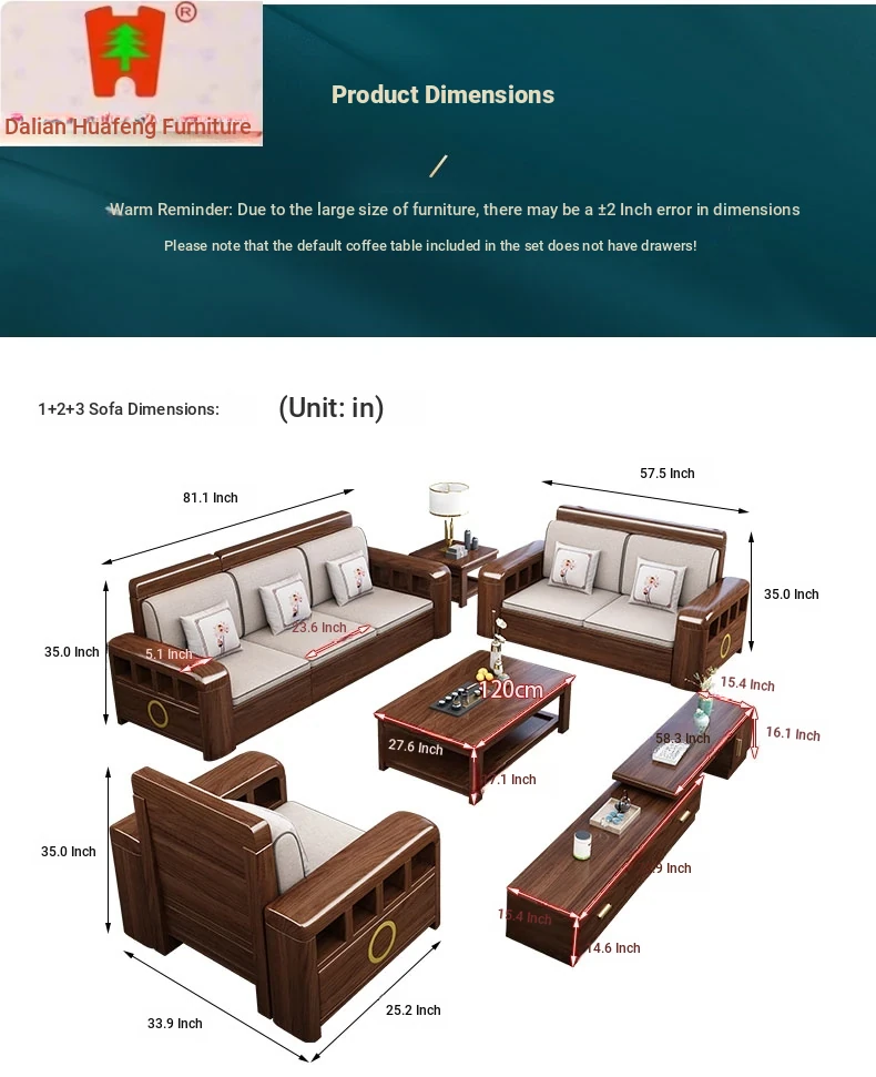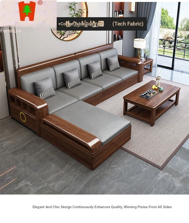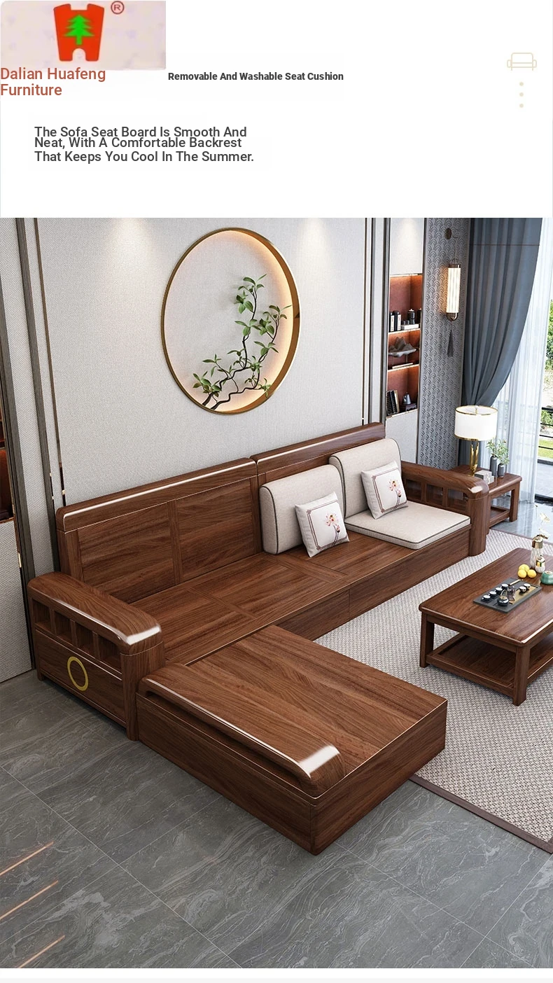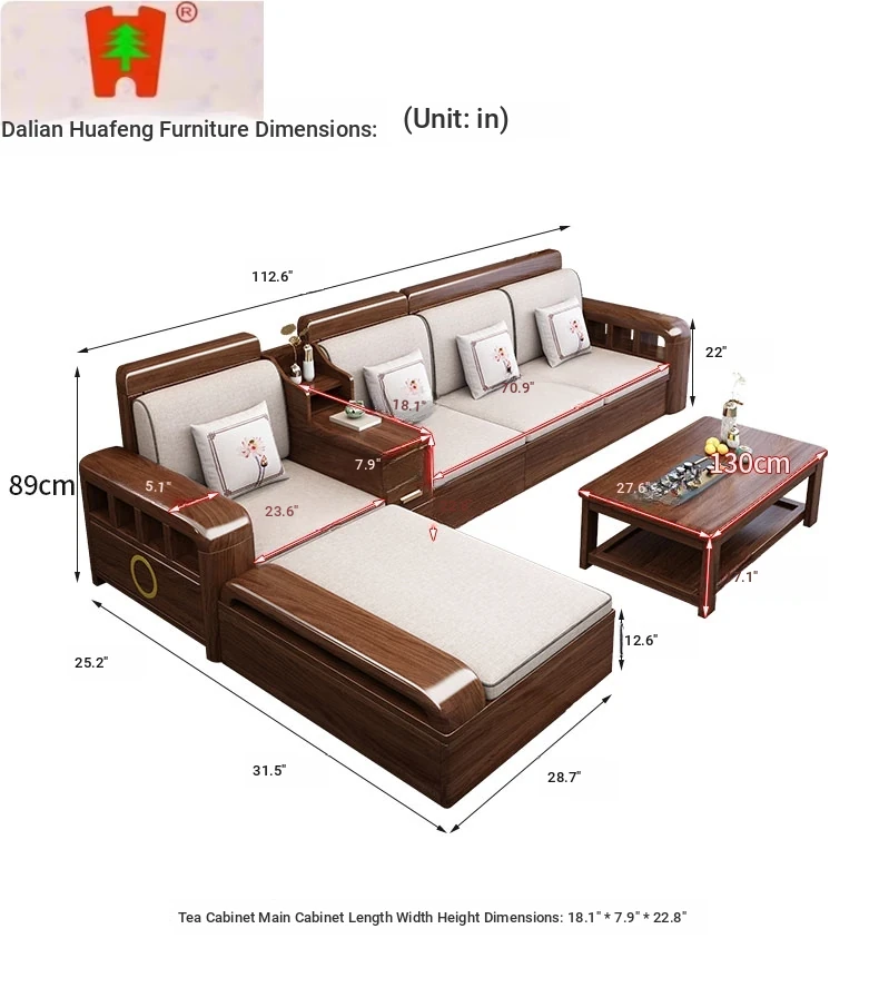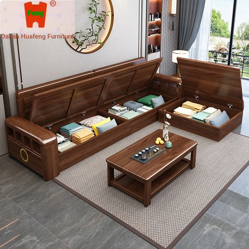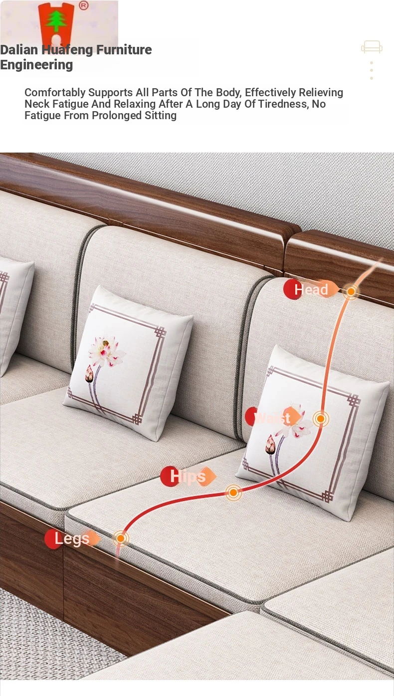 Dalian Huafeng Official Store - Elegant New Chinese Style Solid Wood Sofa Set in Golden Silk Walnut for Bedroom and Living Room - Versatile for All Seasons