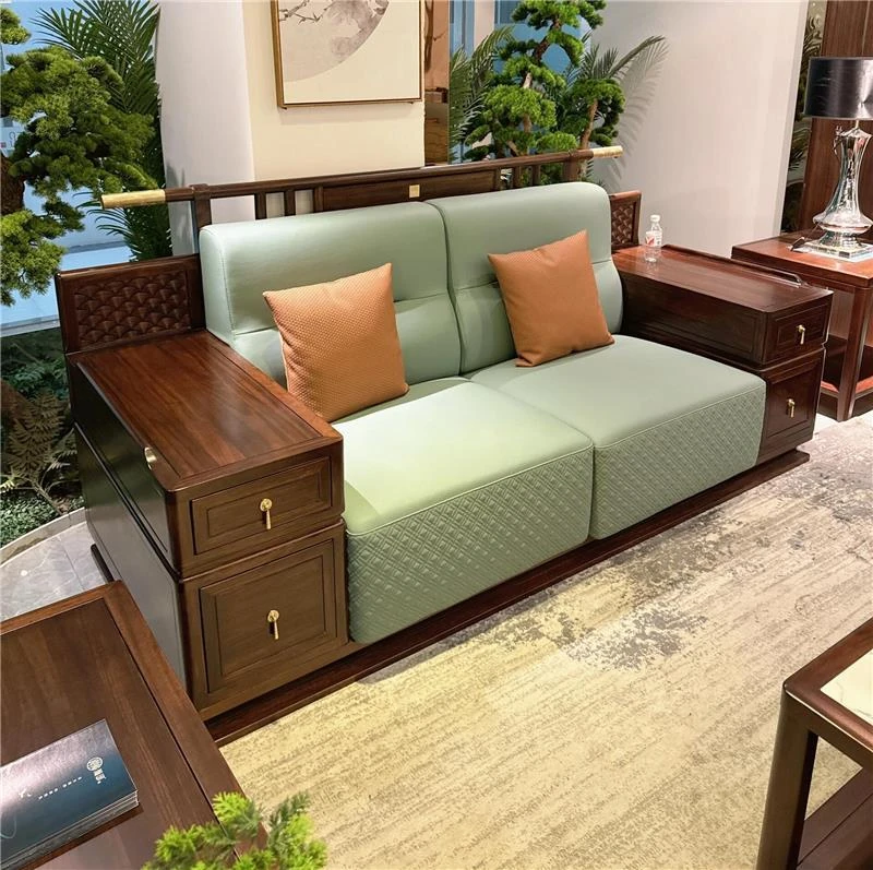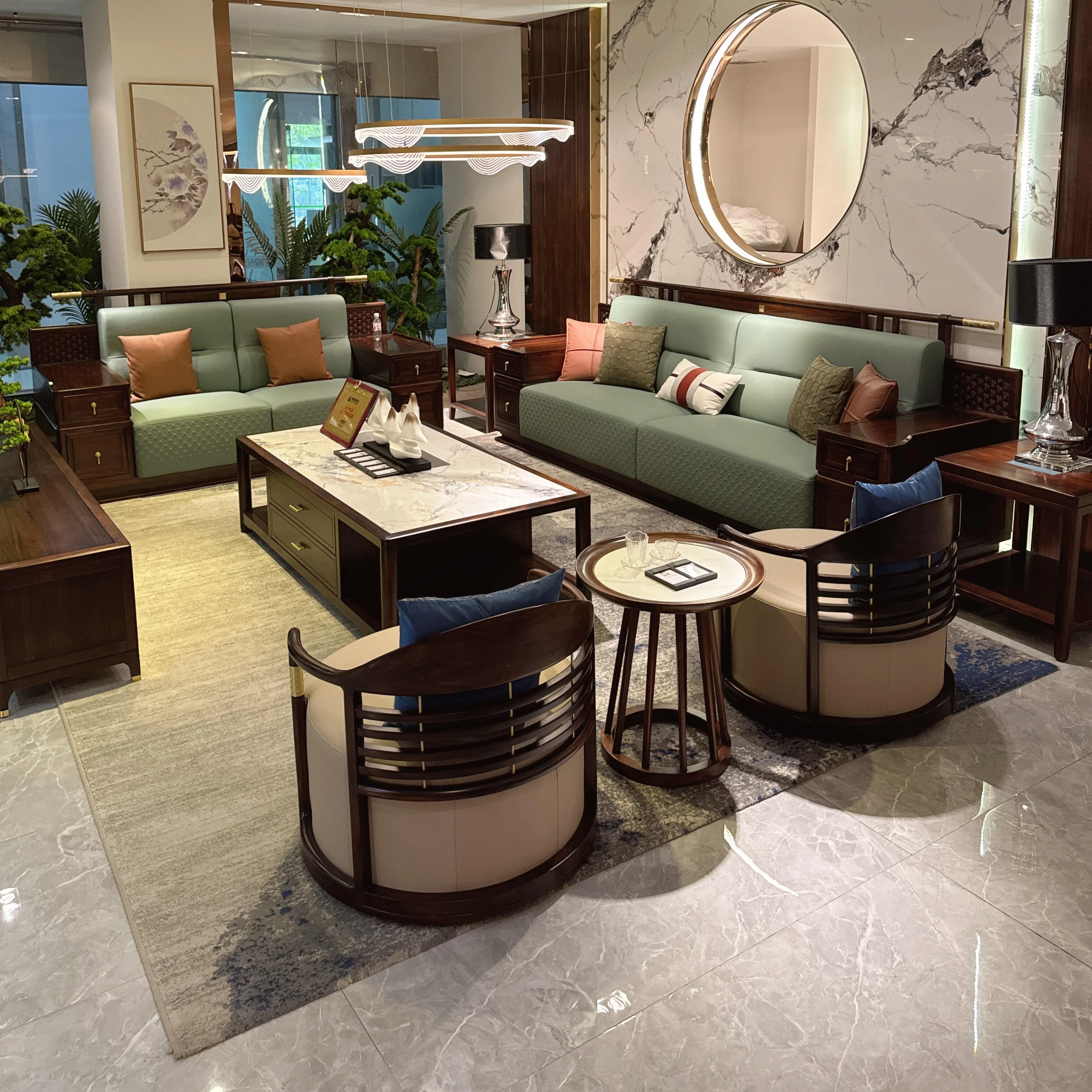Designer Luxury New Chinese-Style Black Walnut Solid Wood Sofa Set - Modern Minimalist for Spacious Living Rooms