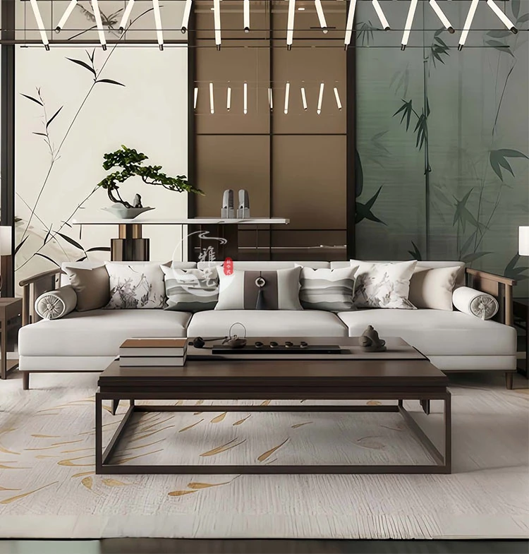 Designer Solid Ash Wood Sofa - New Chinese Style with Song Aesthetics for Living Room, Perfect for Sample Rooms and Small Apartments