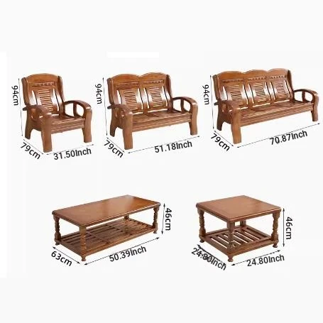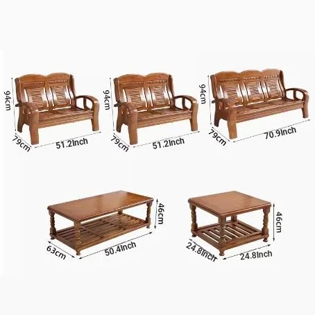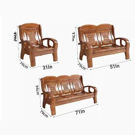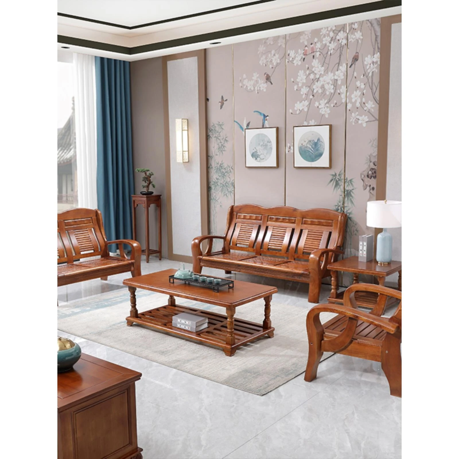 Economical Solid Wood Sofa for Small Living Rooms - Chinese Style Three-Seat All-Wood Couch for Rural Homes, Suitable for Both Winter and Summer Use