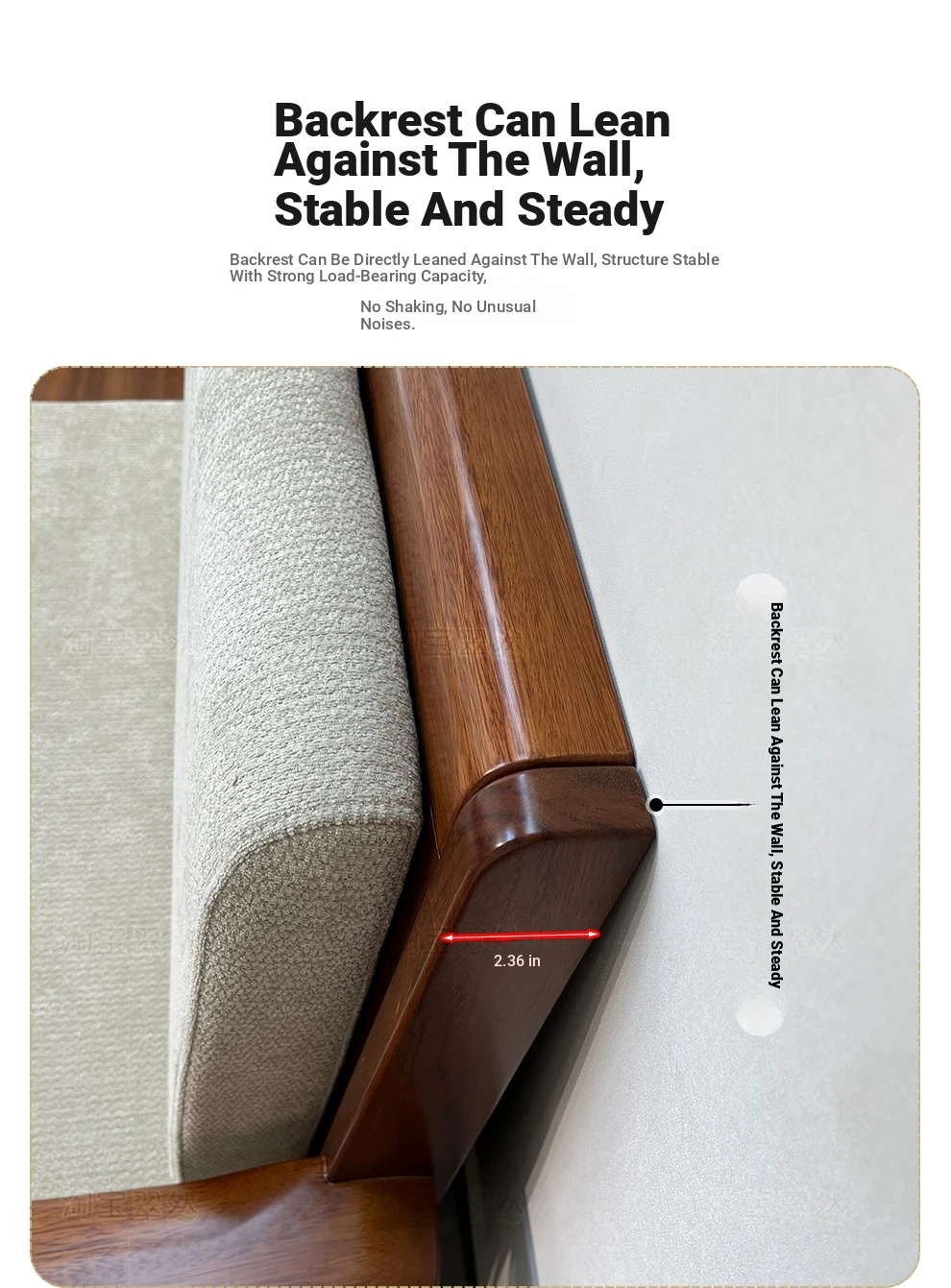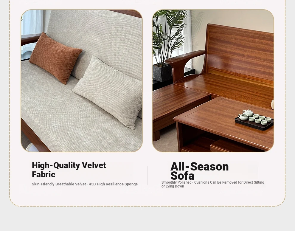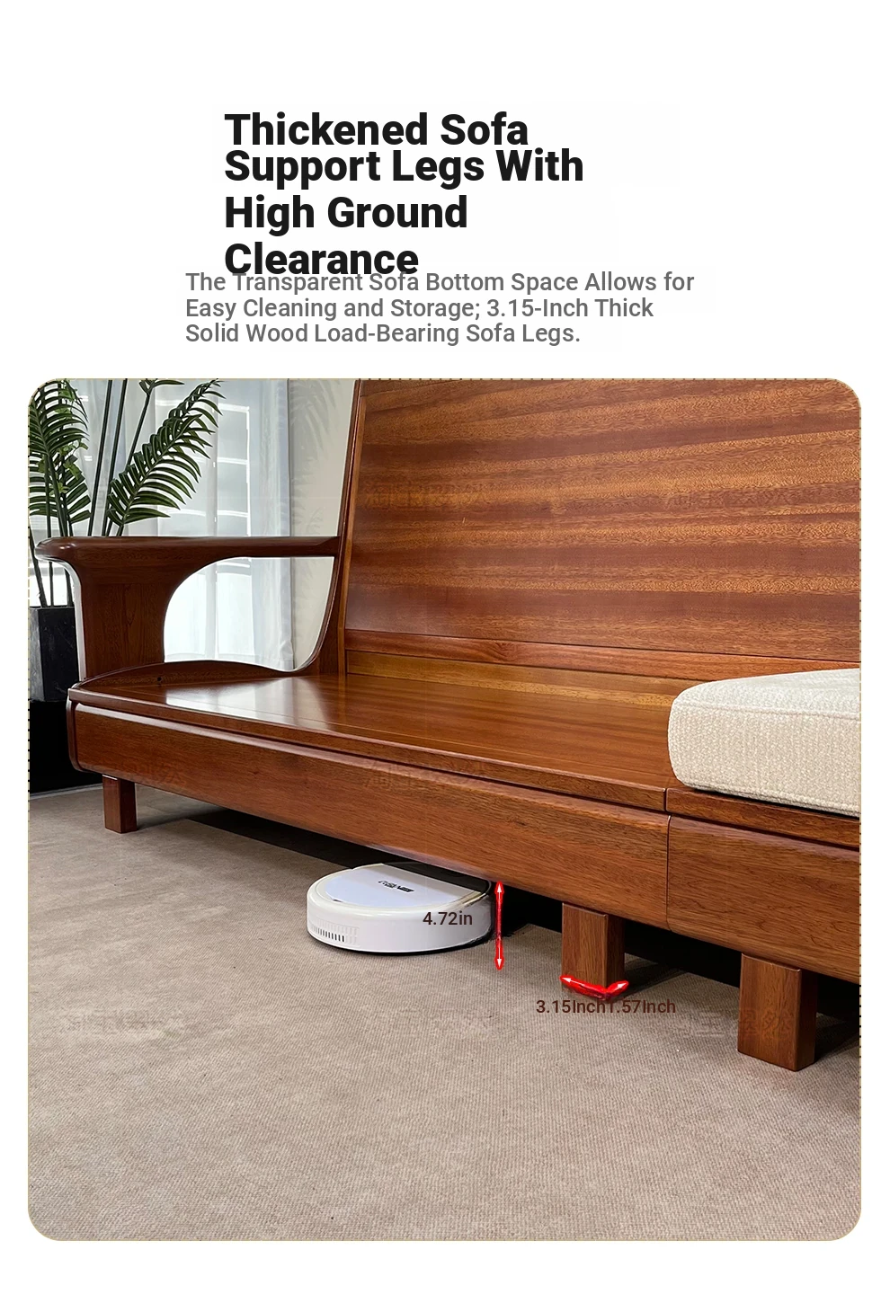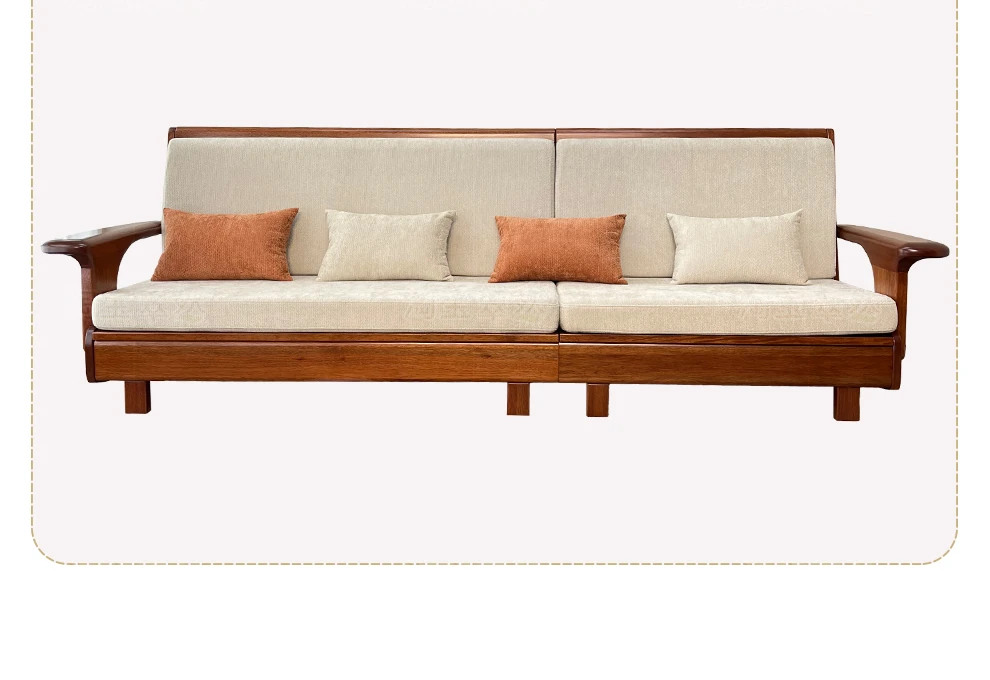 Elegant All-Solid Wood Sofa Set in Golden Pear Wood – Versatile Chaise Lounge for Small Living Rooms, Perfect for Year-Round Comfort. Minimalist Chinese-Style Furniture for Modern Homes.