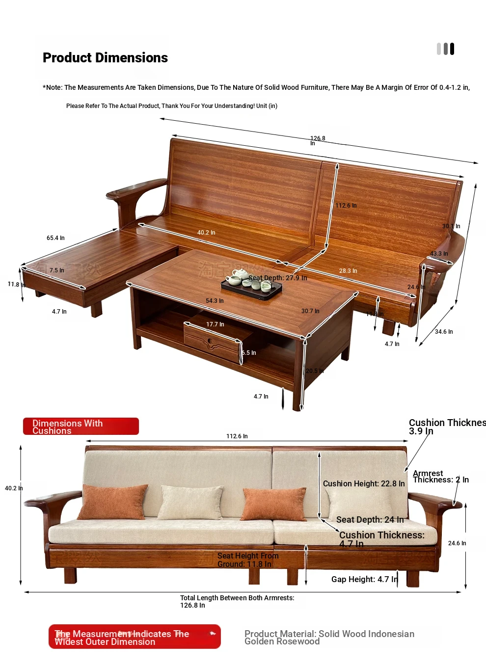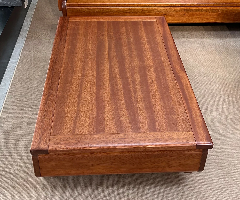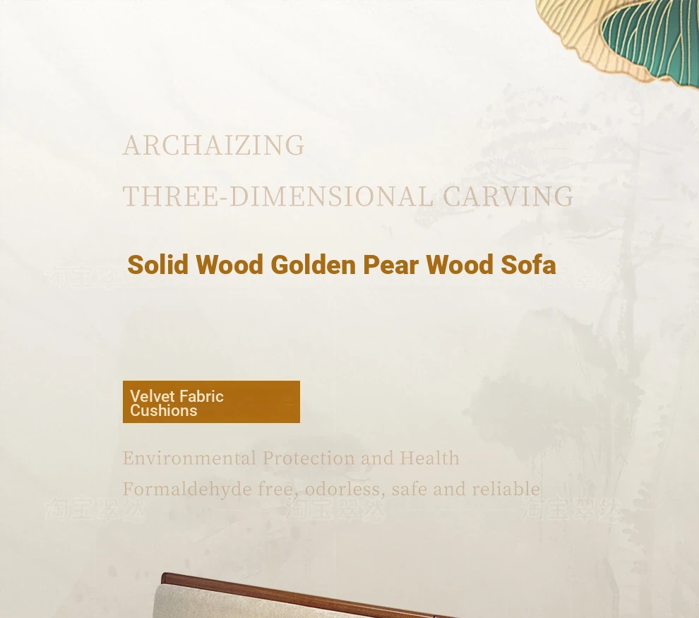 Elegant All-Solid Wood Sofa Set in Golden Pear Wood – Versatile Chaise Lounge for Small Living Rooms, Perfect for Year-Round Comfort. Minimalist Chinese-Style Furniture for Modern Homes.