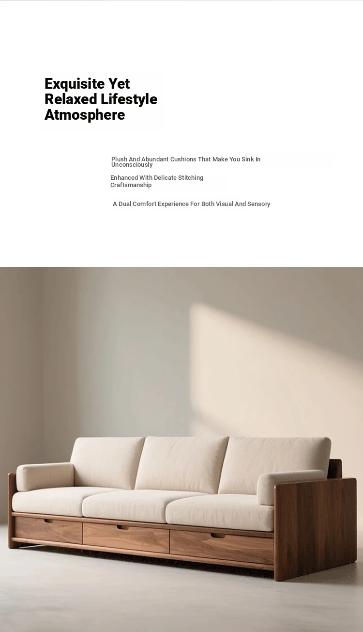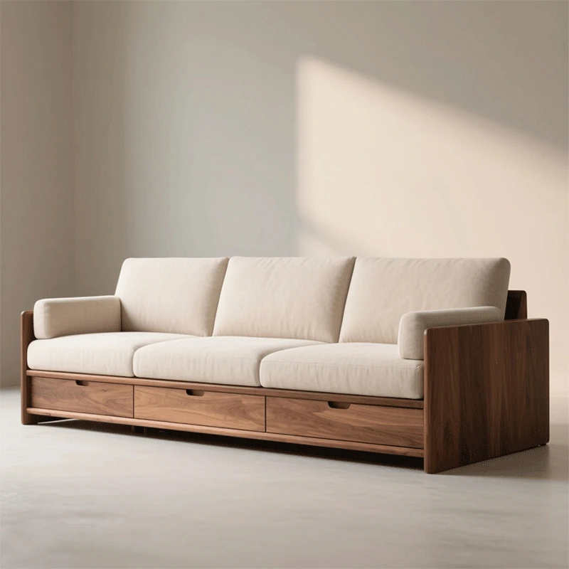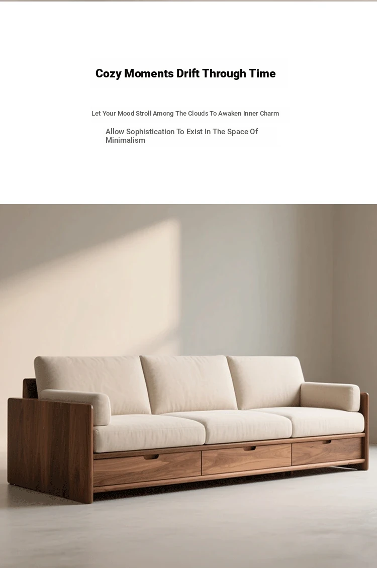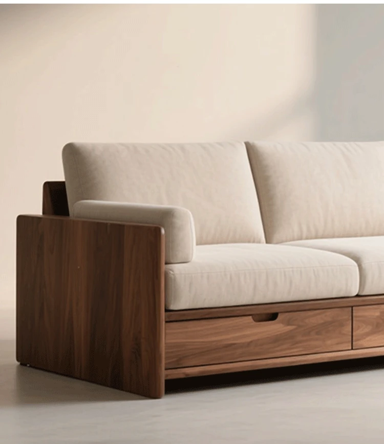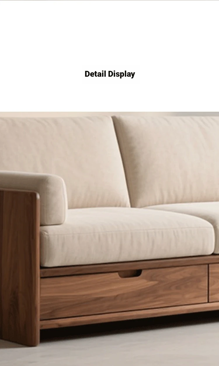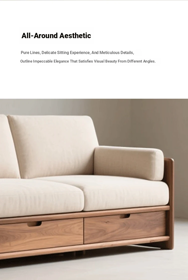 Elegant Black Walnut & Ash Wood Storage Sofa - New Chinese Zen Style, Premium Solid Wood with Genuine Leather, Perfect for Offices, Hotels, and Guesthouses.