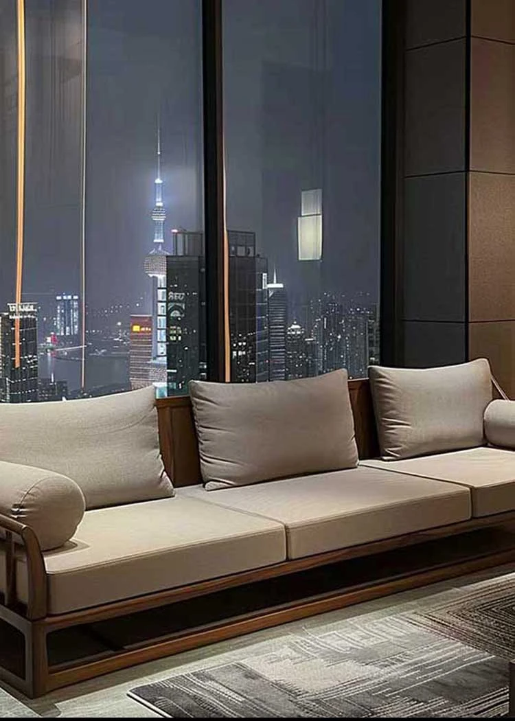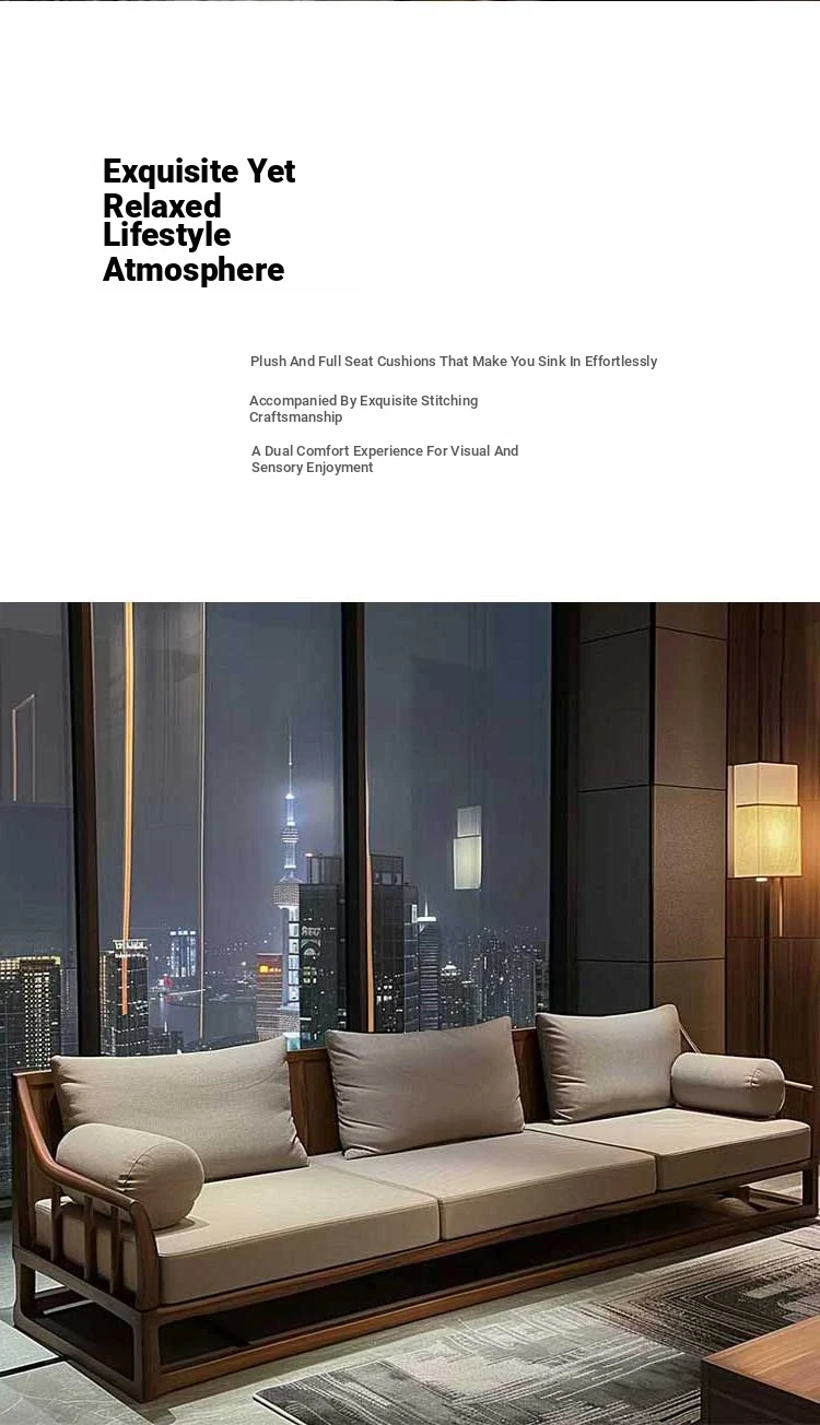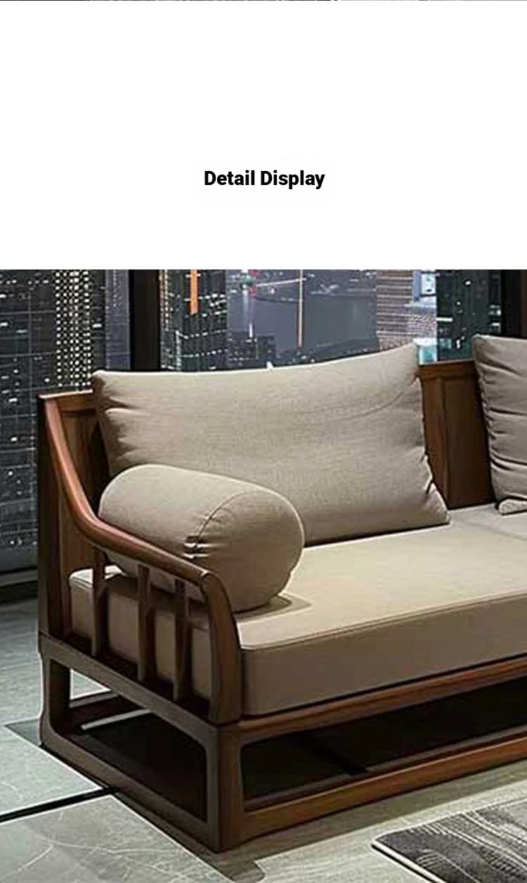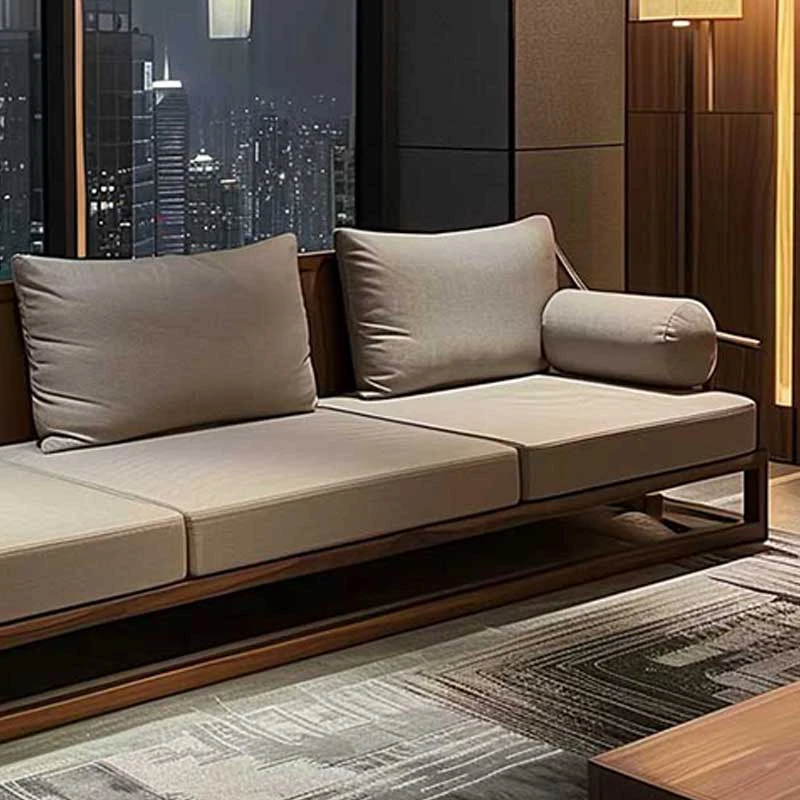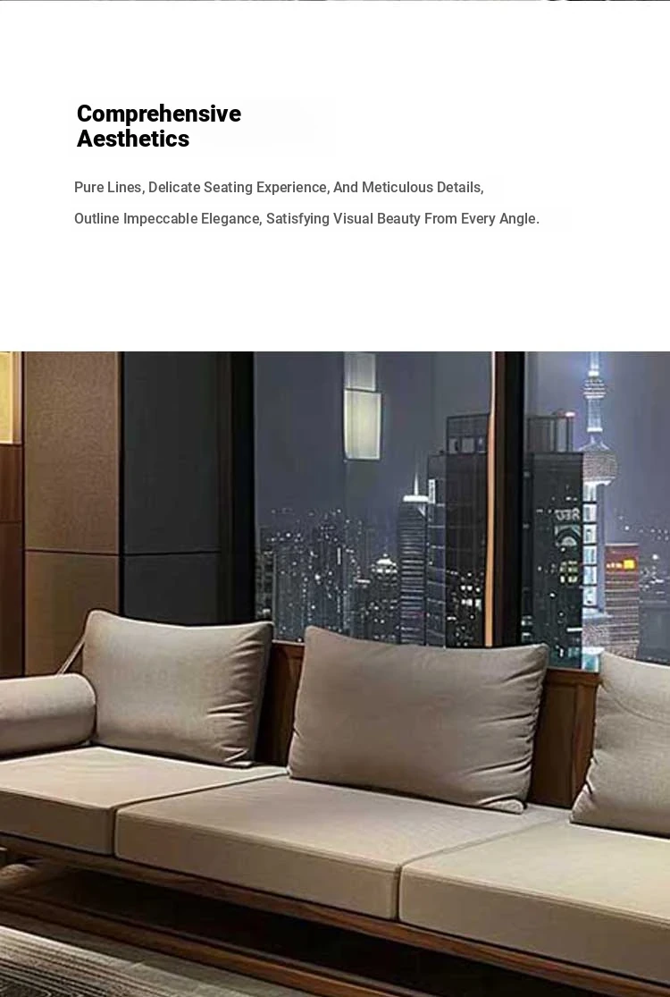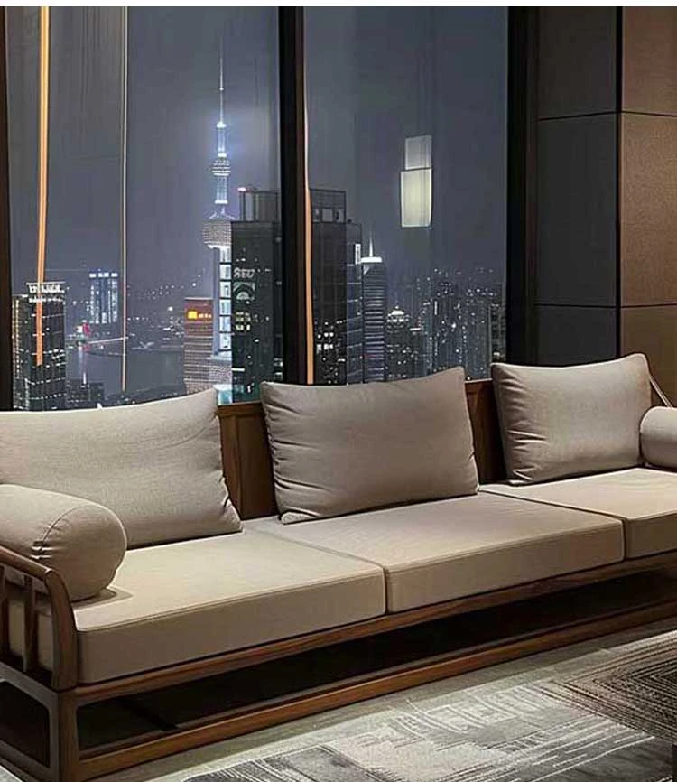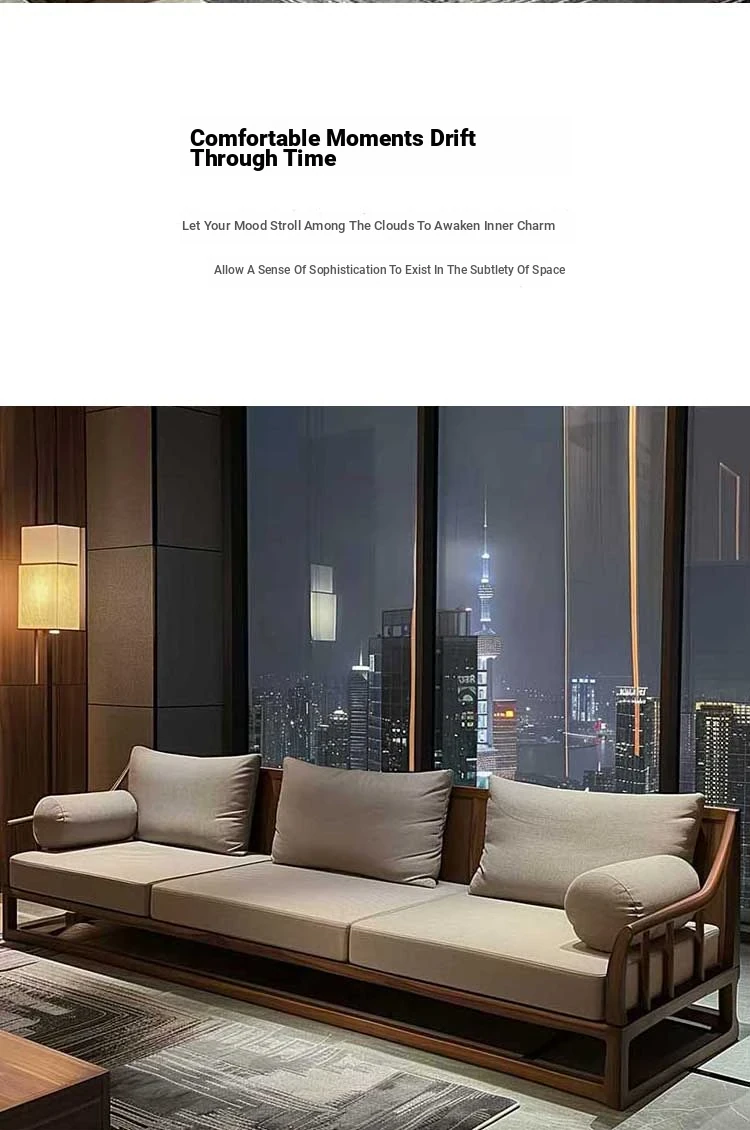 Elegant Black Walnut and Ash Wood Sofa - New Chinese Zen Style Solid Wood High-End Genuine Leather Furniture for Office, Hotel, and Airbnb