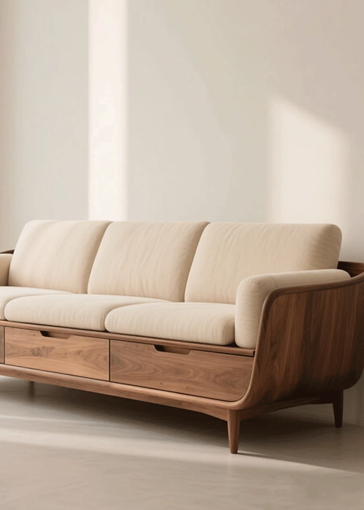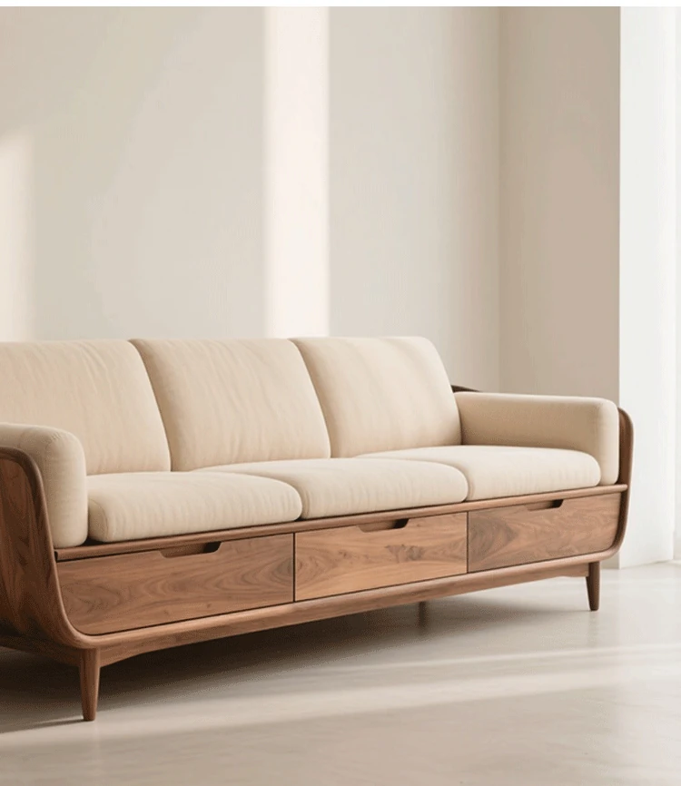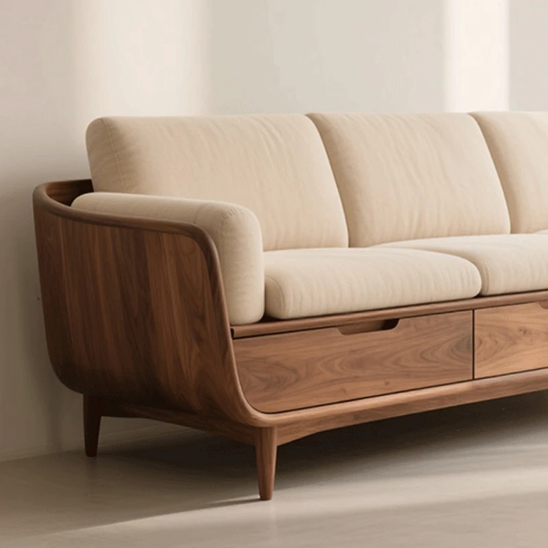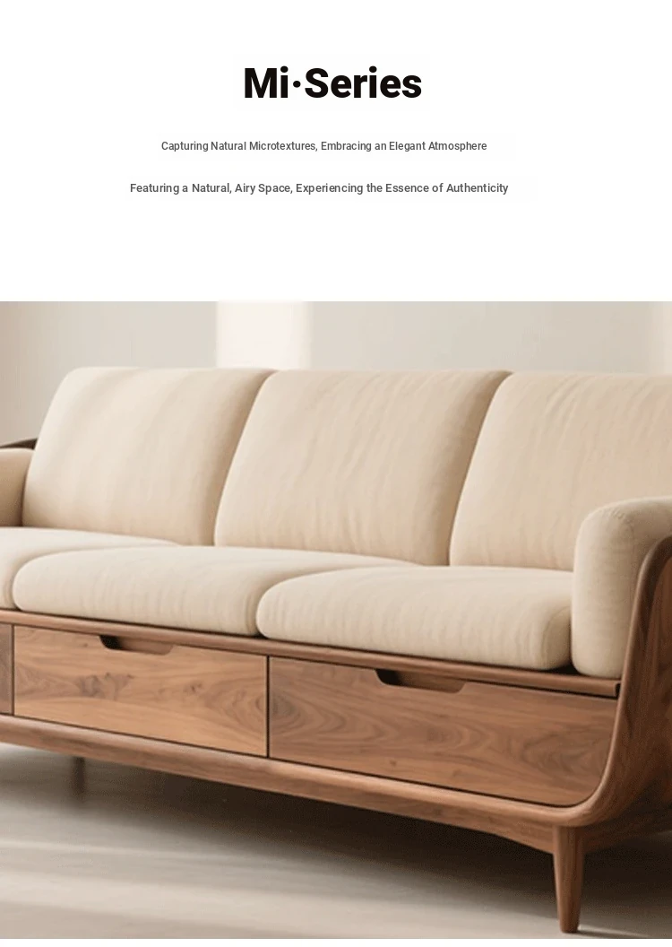 Elegant Black Walnut and Ash Wood Sofa - New Chinese Zen Style Solid Wood Premium Leather for Office, Hotel, and Airbnb Furniture. Experience Luxury and Comfort in Every Detail!