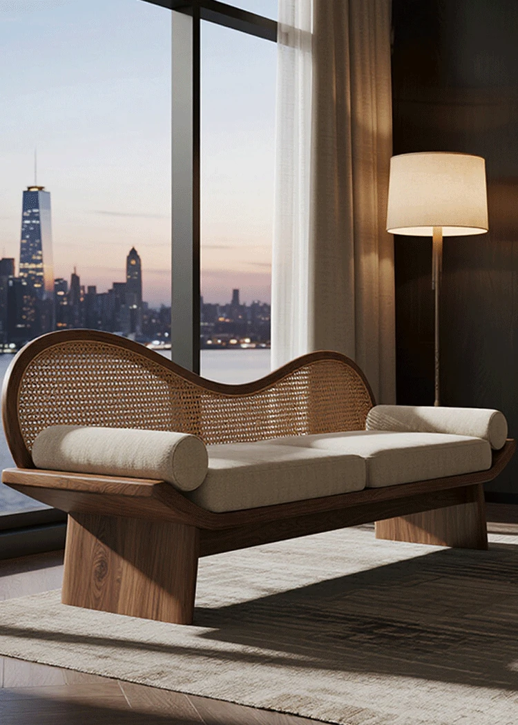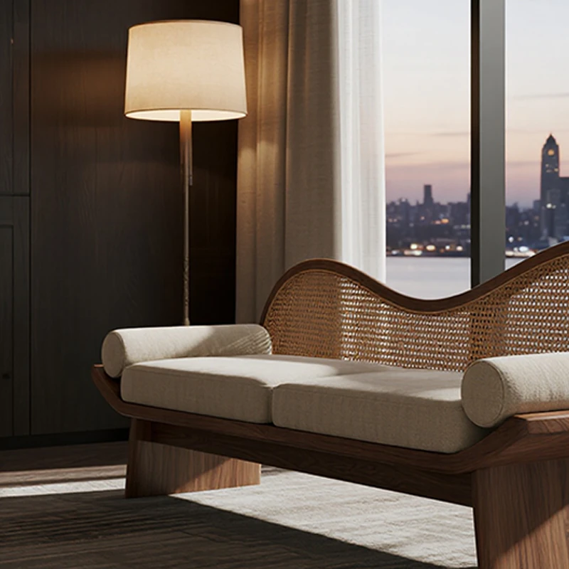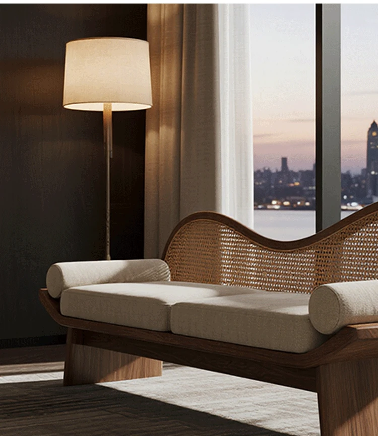 Elegant New Chinese Style Black Walnut and Ash Wood Solid Zen Chaise Lounge Chair for Office, Hotel, and Guesthouse - Perfect Blend of Comfort and Aesthetic.