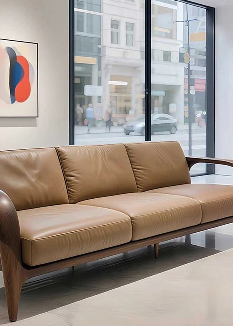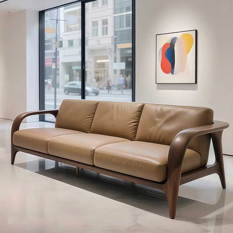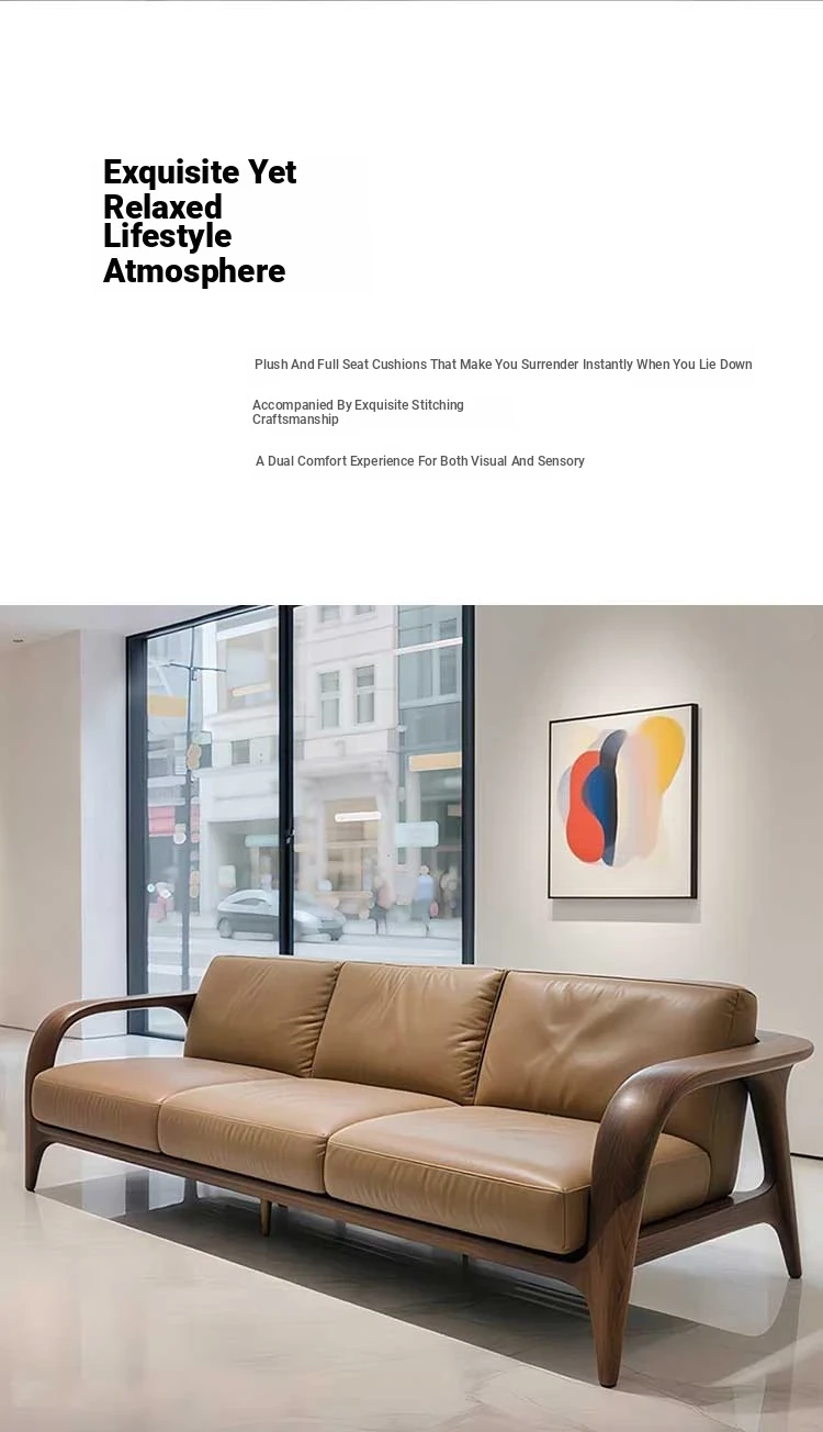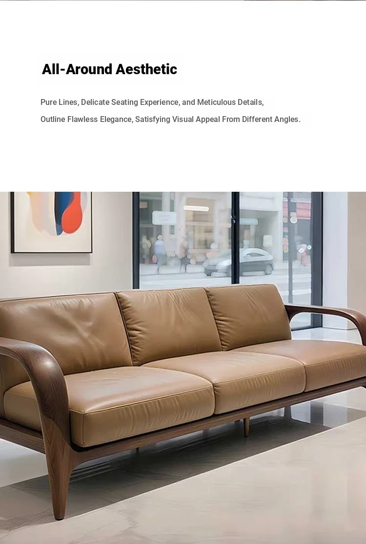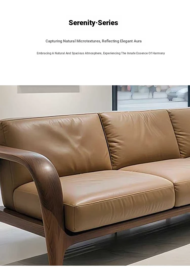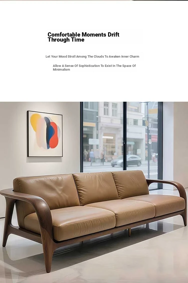 Elegant New Chinese Style Solid Black Walnut Zen Sofa - Premium Real Leather for Office, Hotels, and Guesthouses - A Touch of Serenity in Your Space