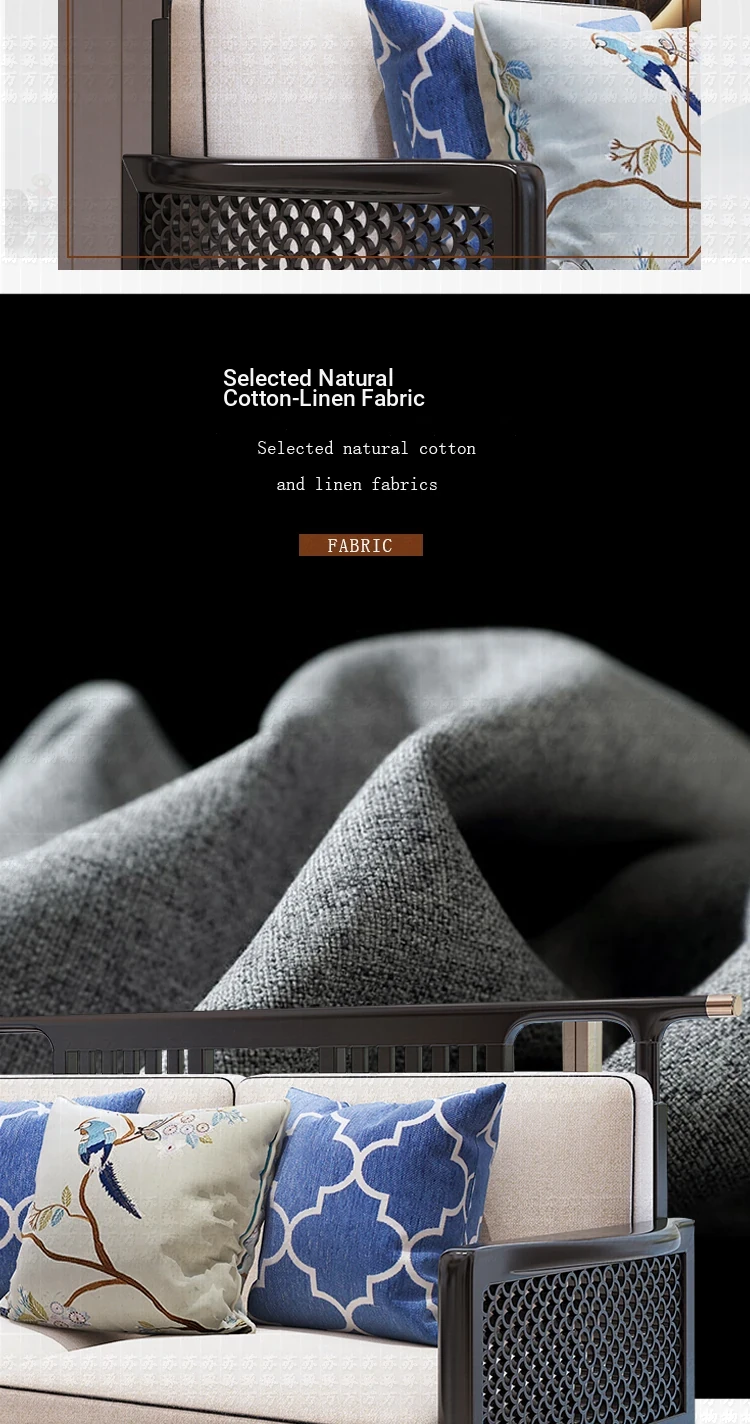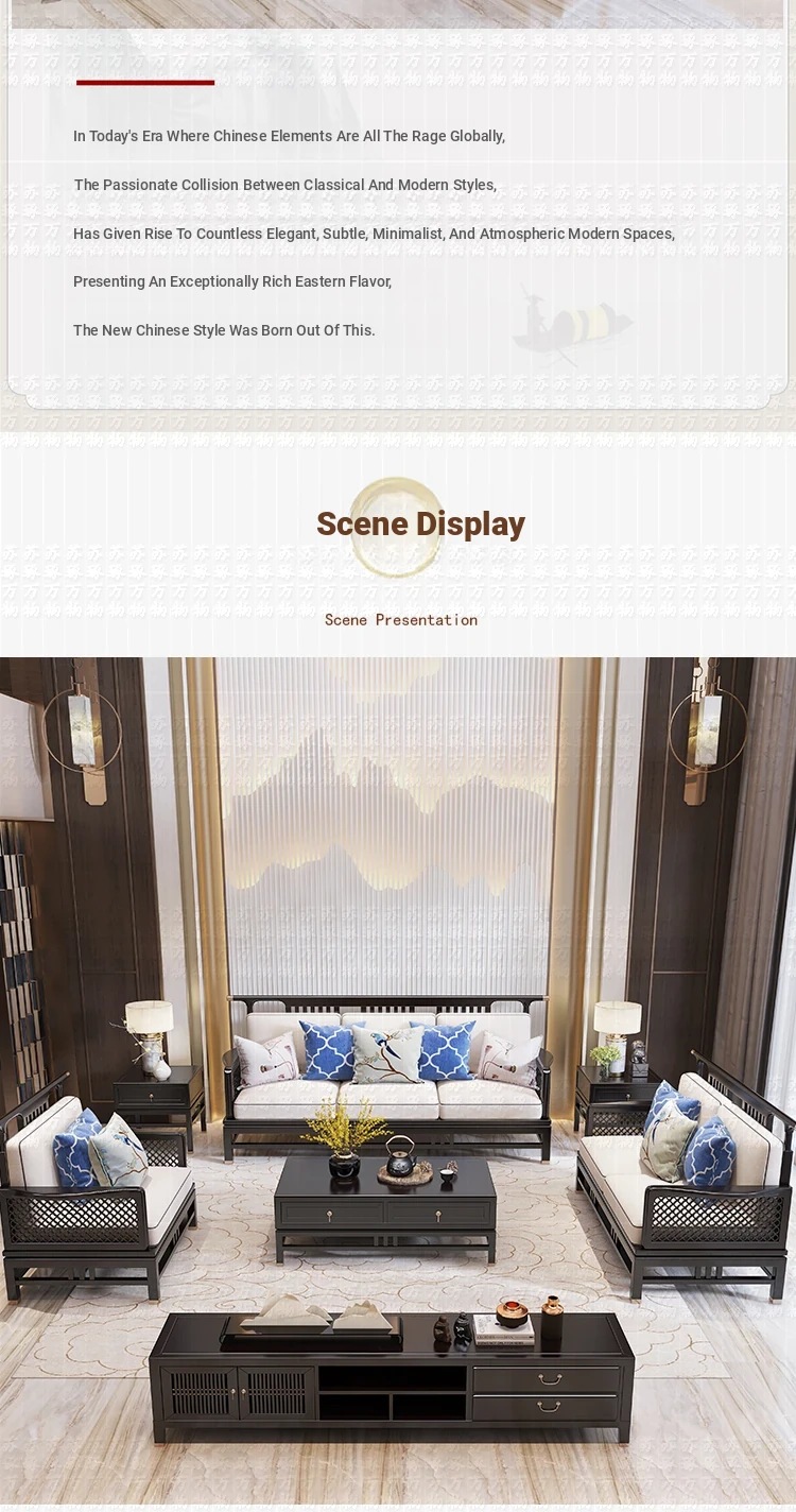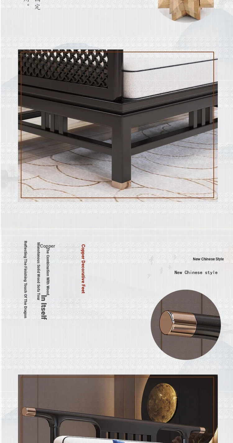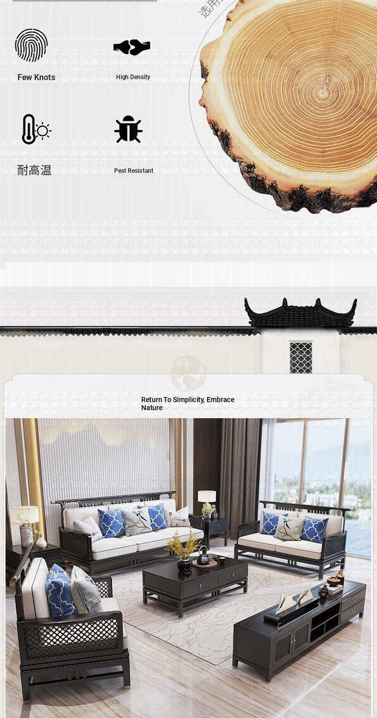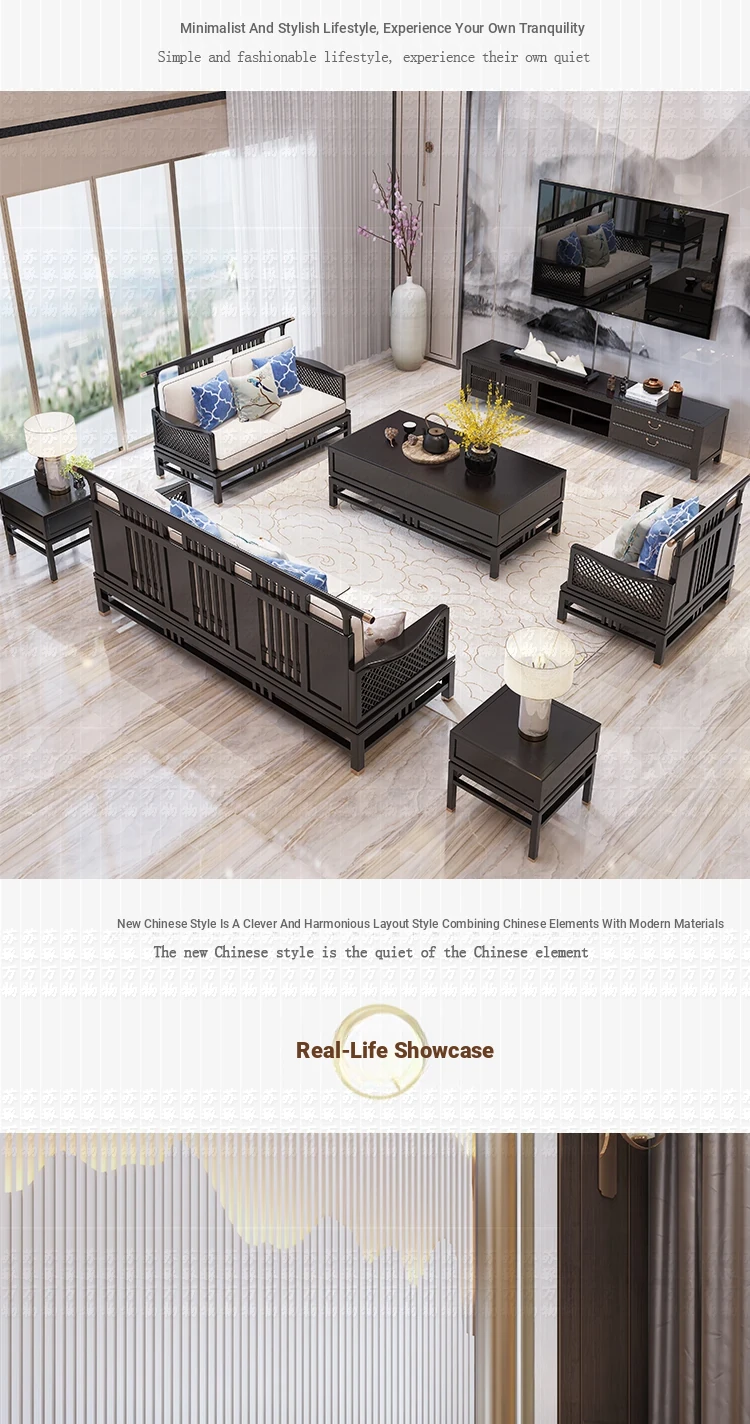 Elegant New Chinese Style Solid Wood Carved Sofa - High-End Ebony Furniture for Model Homes, Villas, and Guesthouses - Luxurious Living Room Set