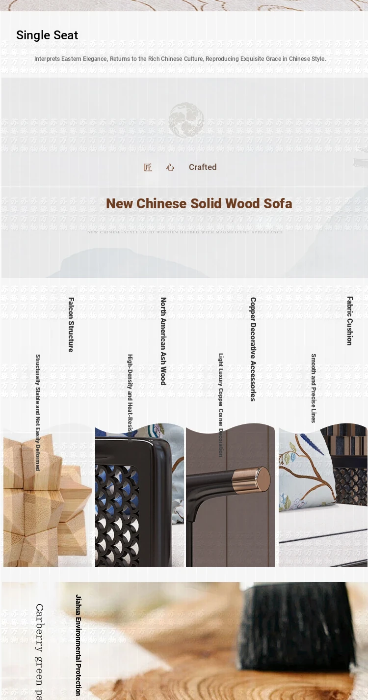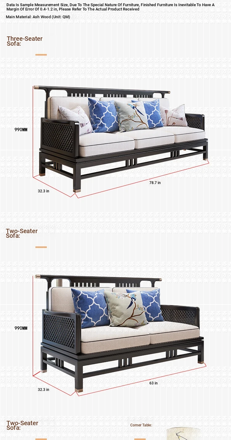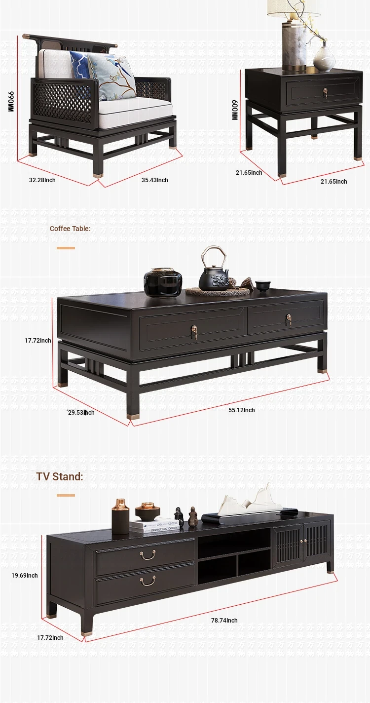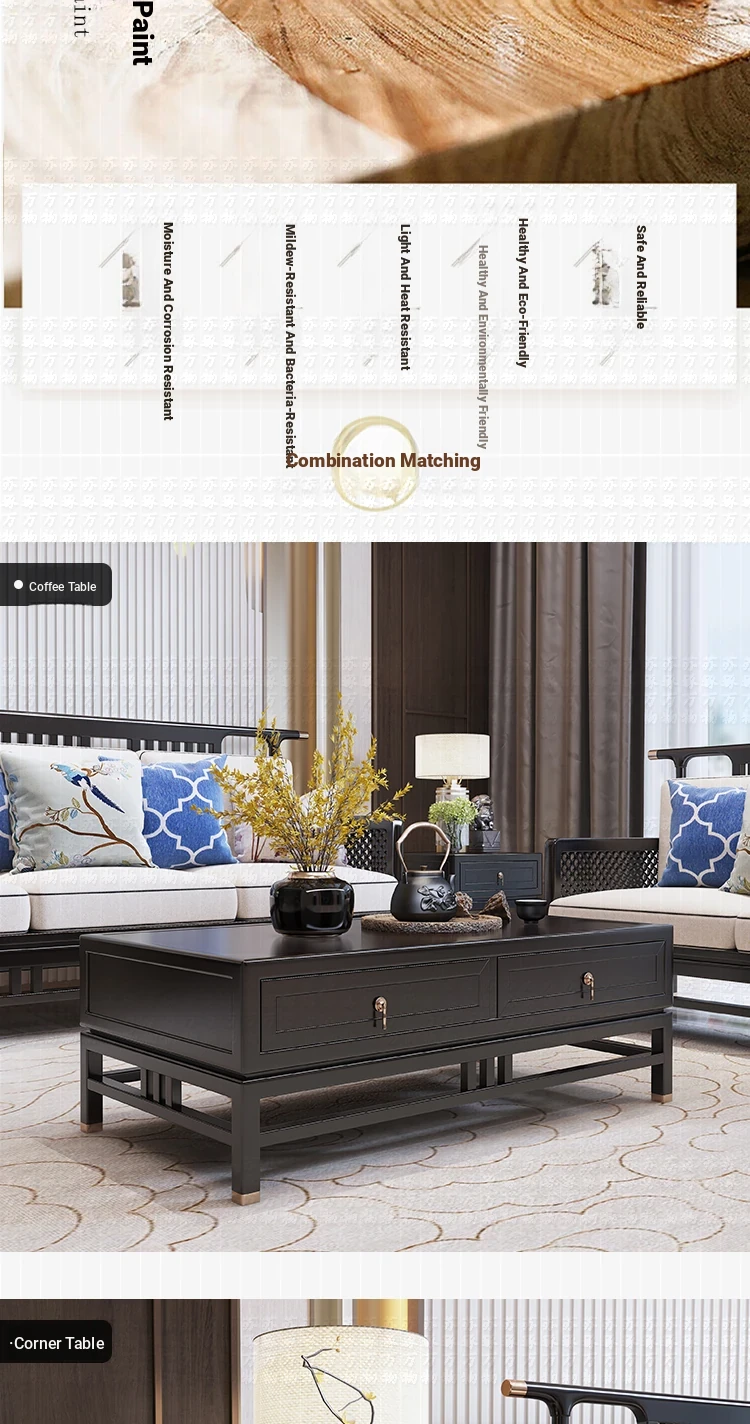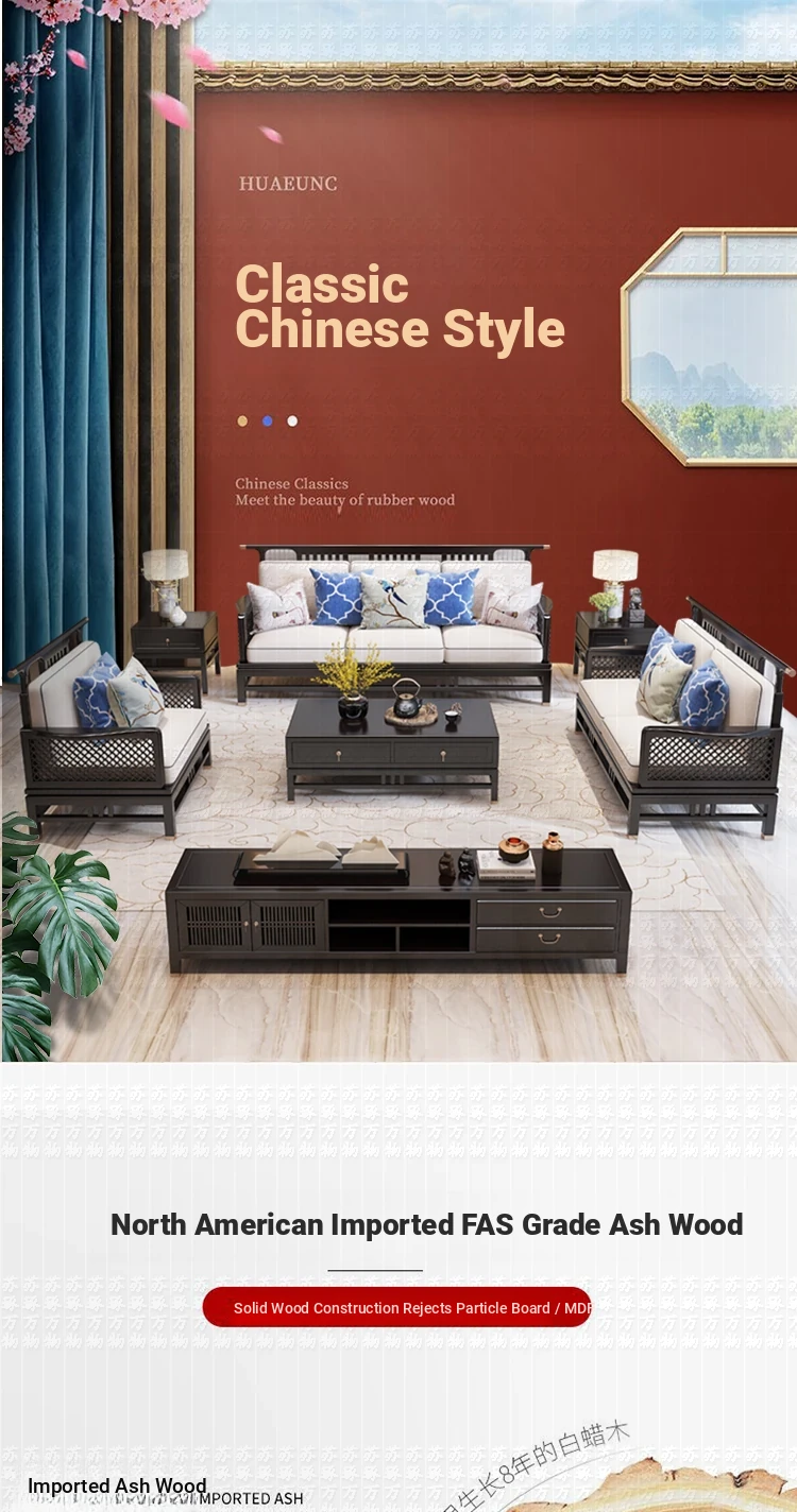 Elegant New Chinese Style Solid Wood Carved Sofa - High-End Ebony Furniture for Model Homes, Villas, and Guesthouses - Luxurious Living Room Set
