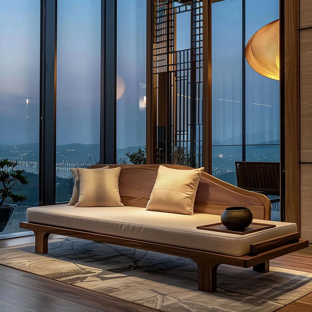 Elegant New Chinese Zen Style Black Walnut and White Ash Chaise Lounge - Perfect for Living Rooms, Hotels, Guesthouses, and Offices. Experience Comfort and Serenity in Style!