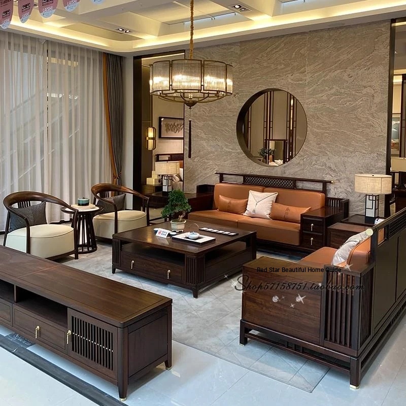 Elegant New Chinese-Style Blackwood Sofa Set for Luxurious Villas, High-End Living Rooms, Hotels, and Clubs – Premium Solid Wood Furniture