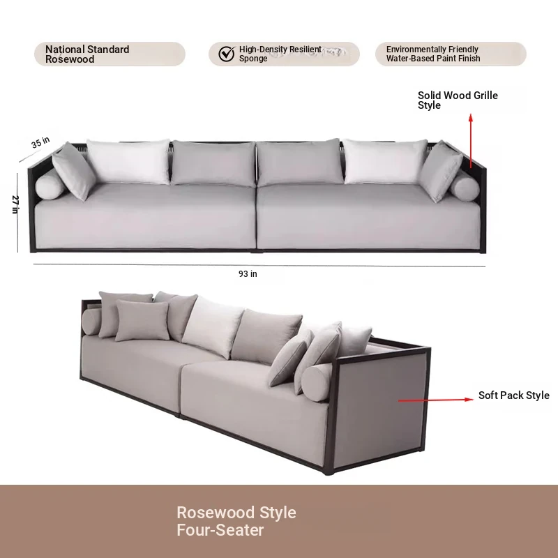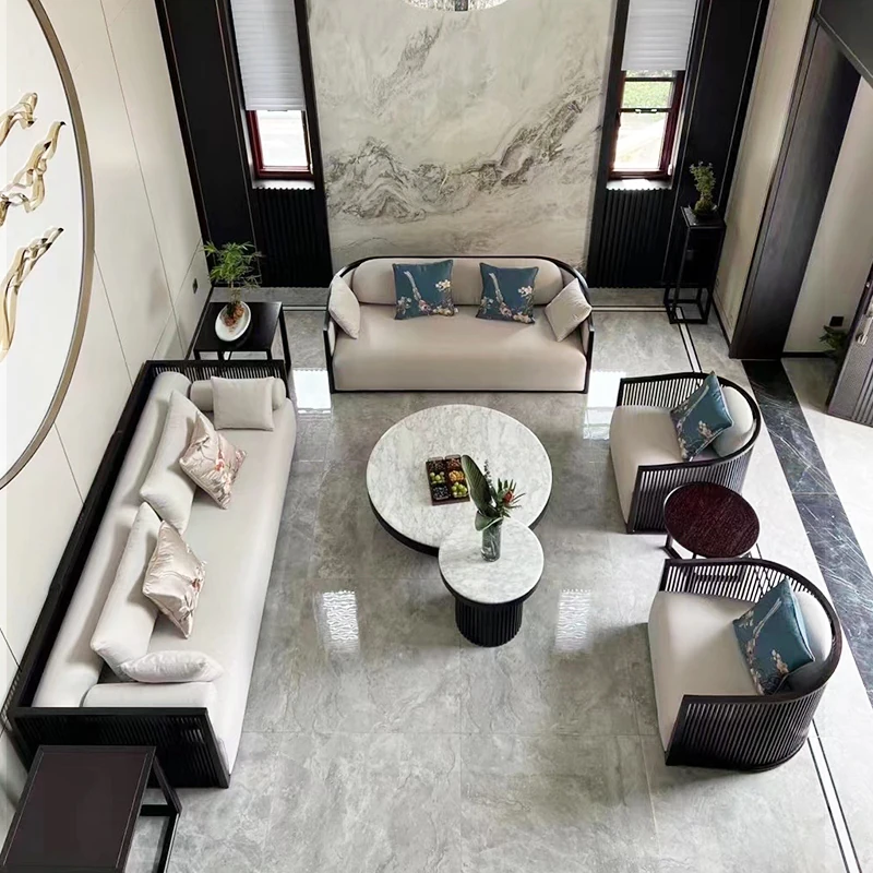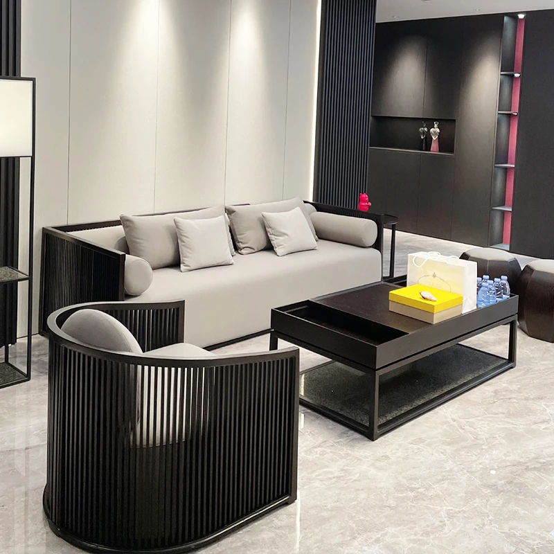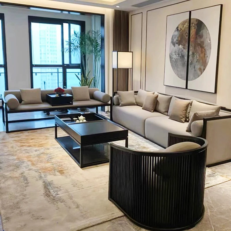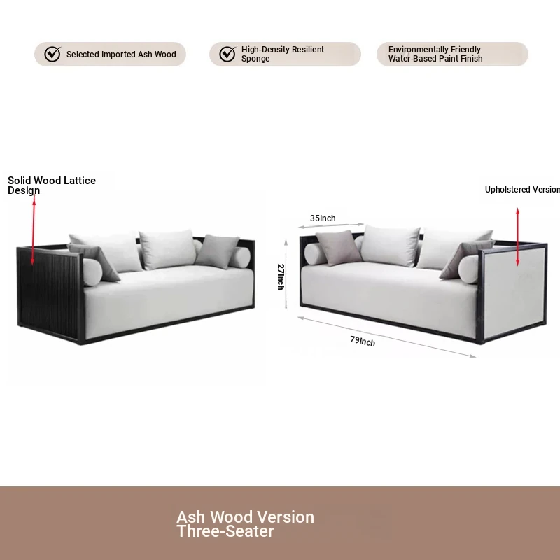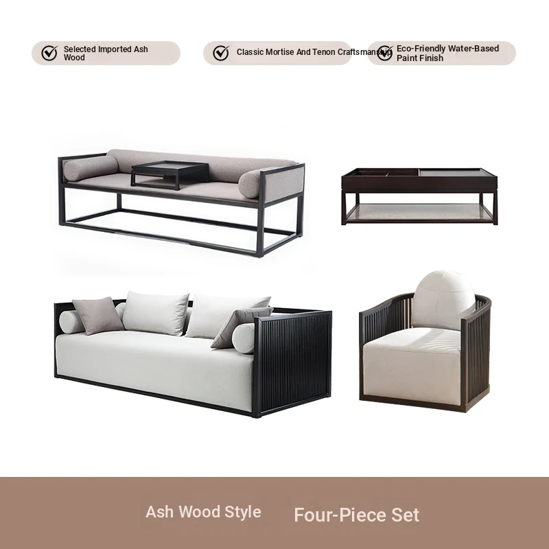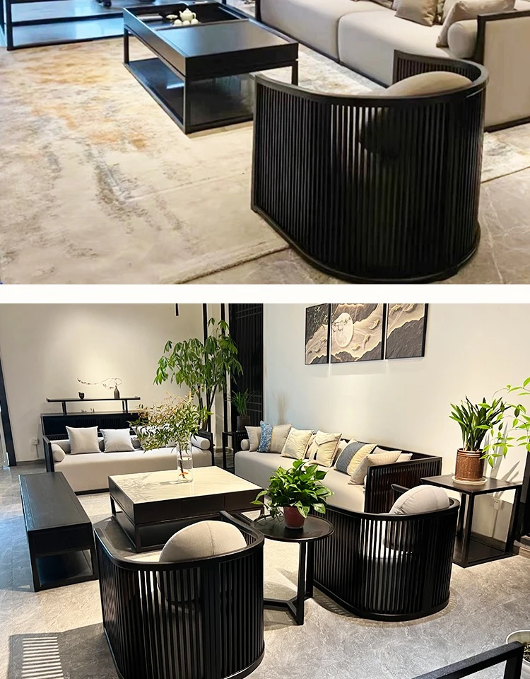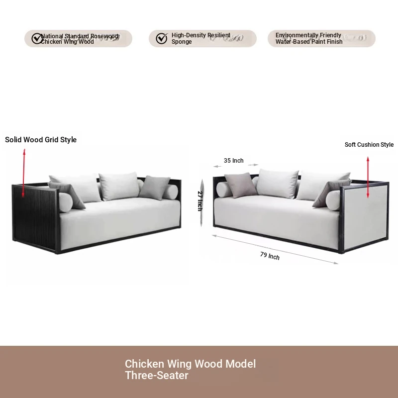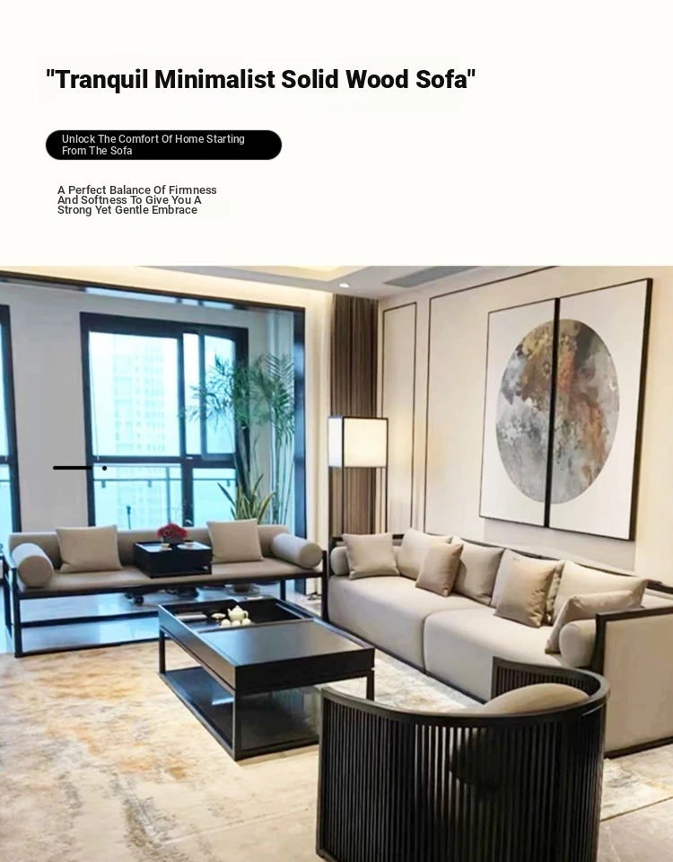 Elegant Song Dynasty Aesthetics: Modern Minimalist Solid Wood Zen Sofa for Villas - Chic Wingwood Living Room Furniture