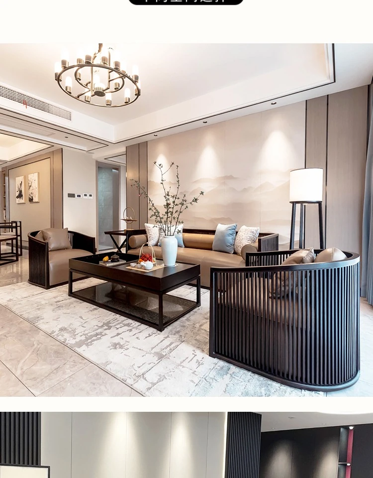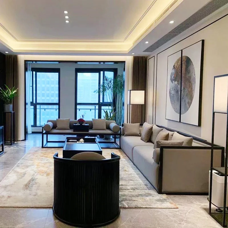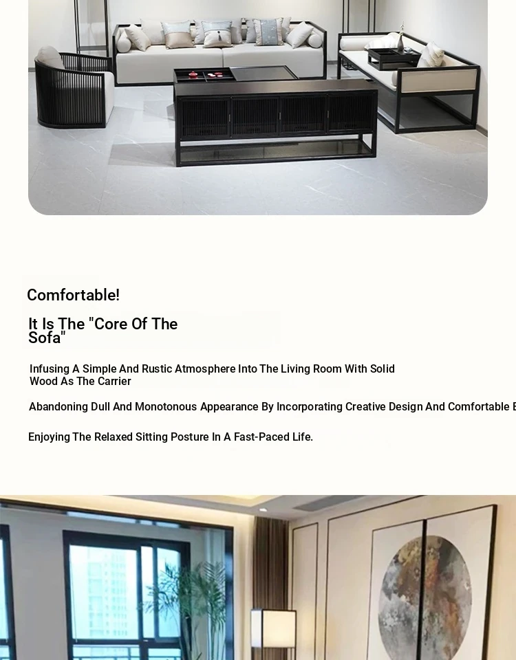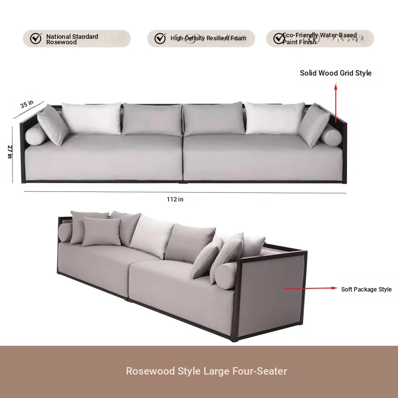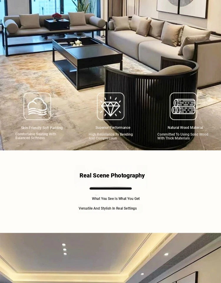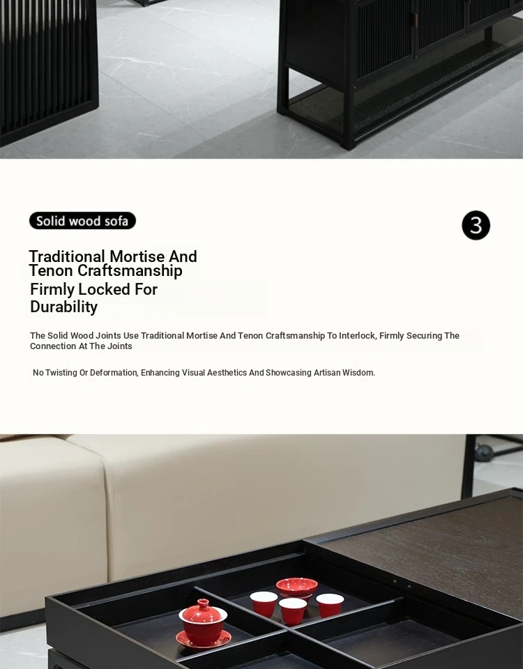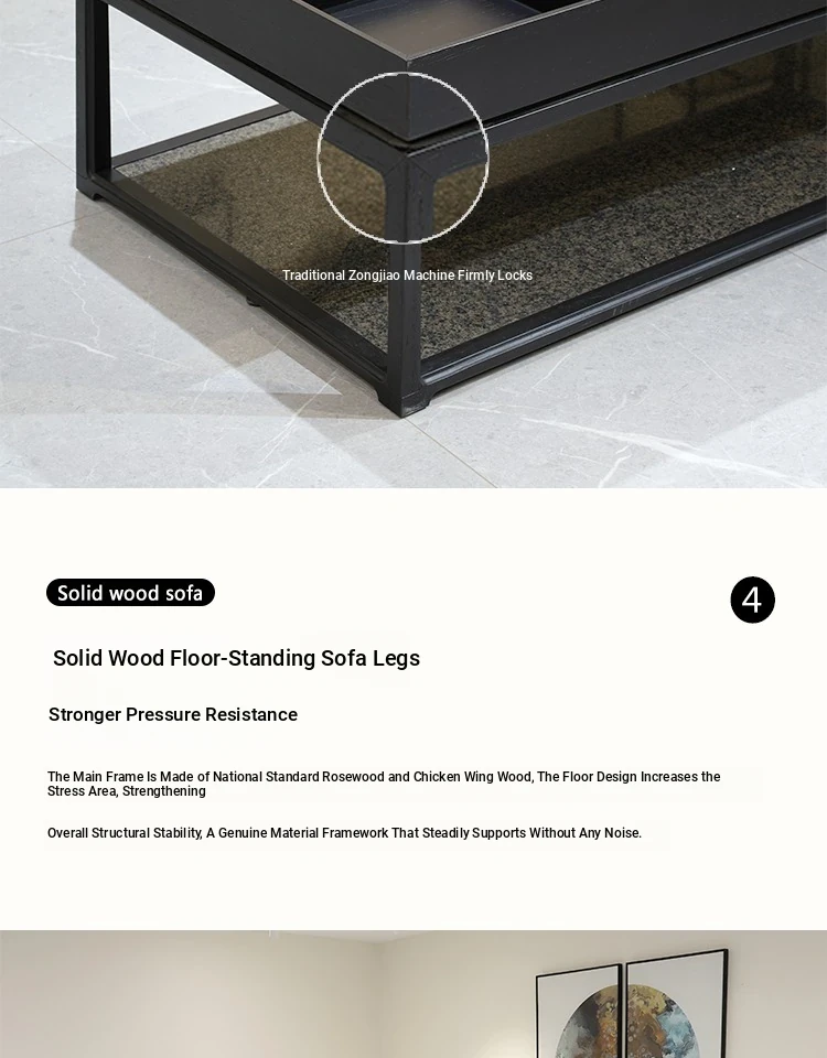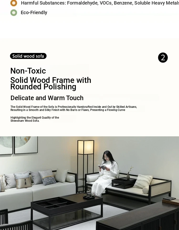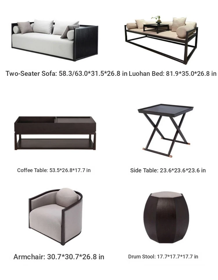 Elegant Song Dynasty Aesthetics: Modern Minimalist Solid Wood Zen Sofa for Villas - Chic Wingwood Living Room Furniture