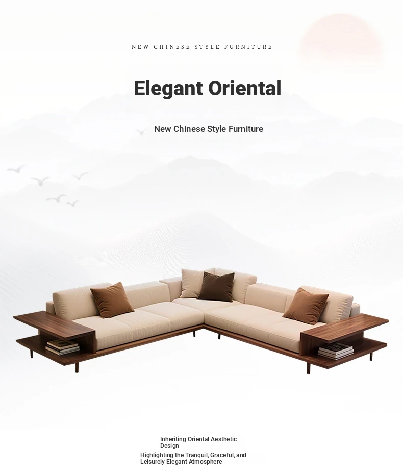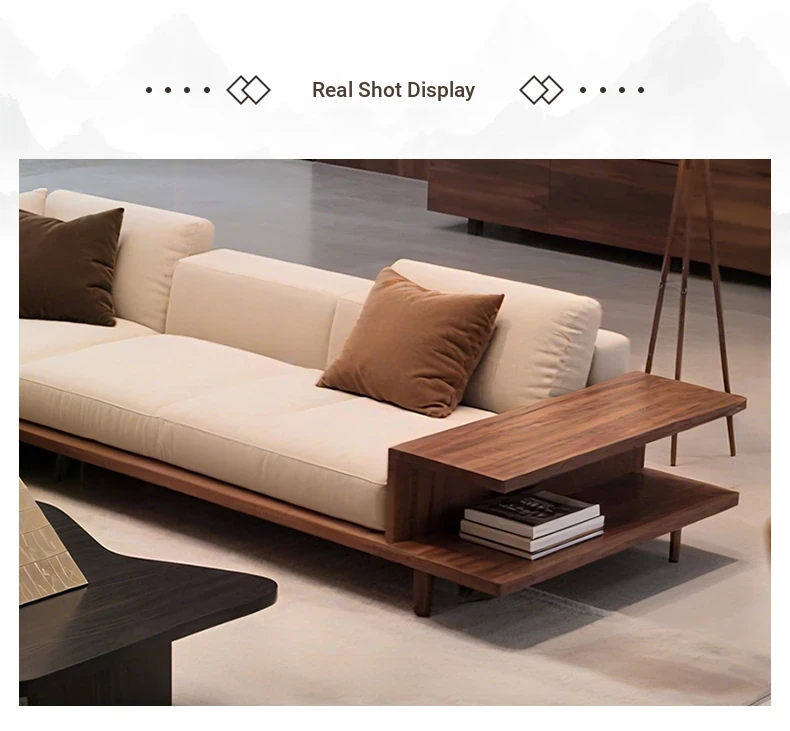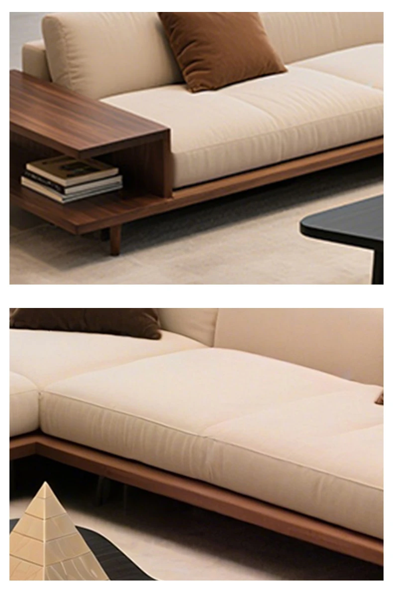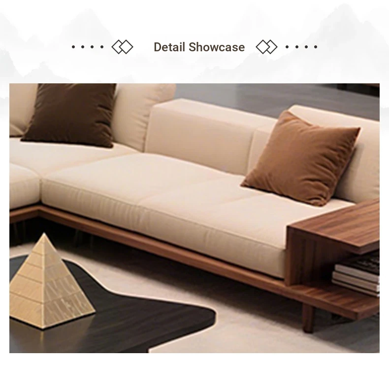 Elegant Song-style Aesthetic North American Walnut Luxury Solid Wood Sofa - High-End Corner Sofa for Living Room, Ideal for Villas, Featuring Plush Fabric Design