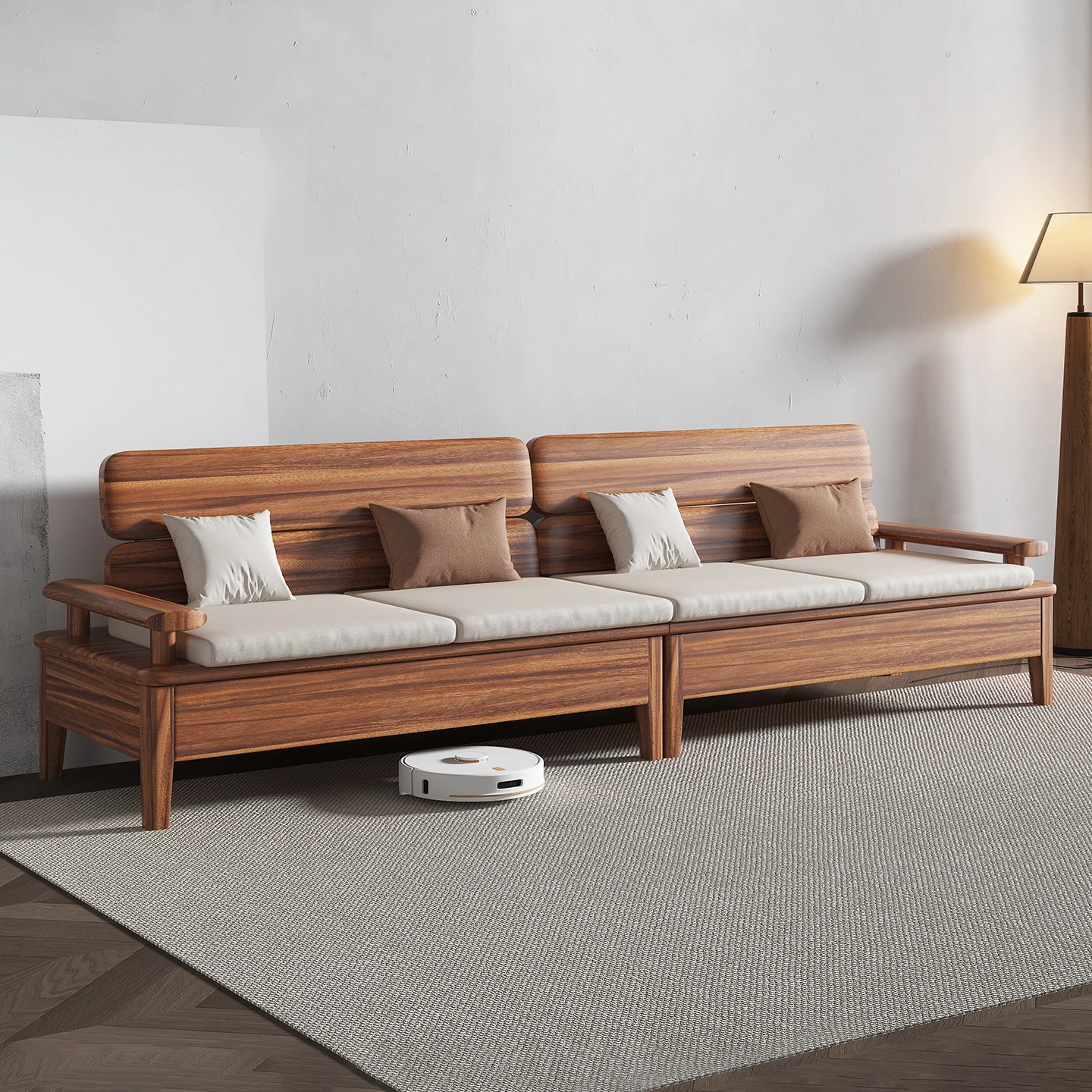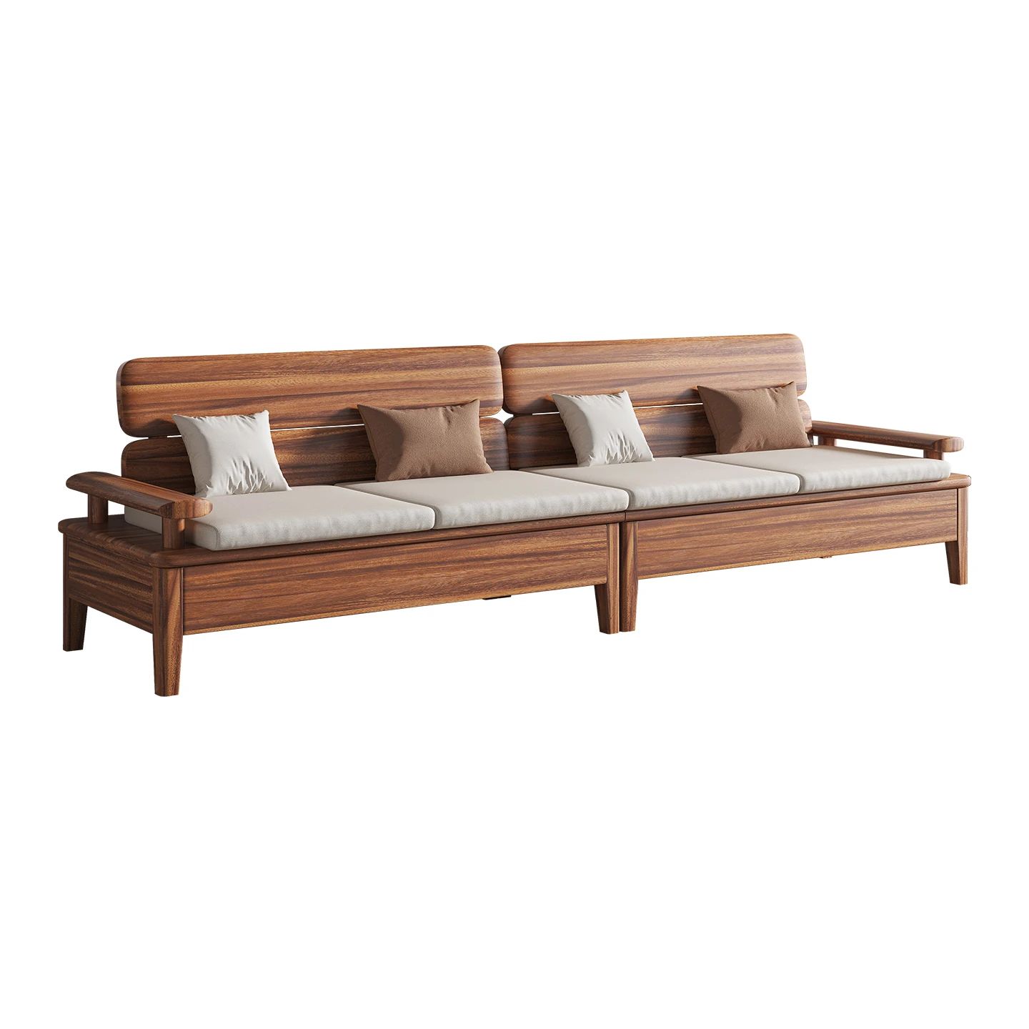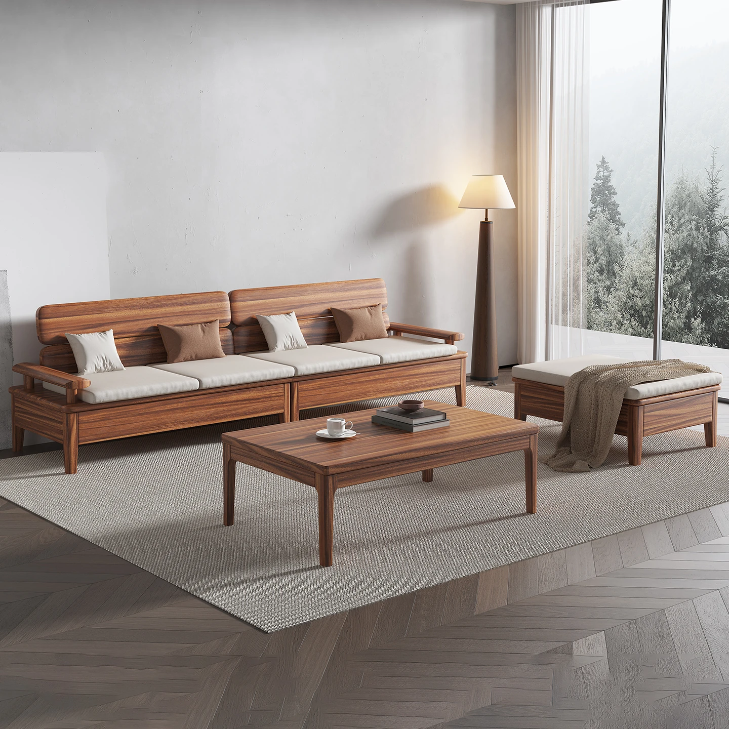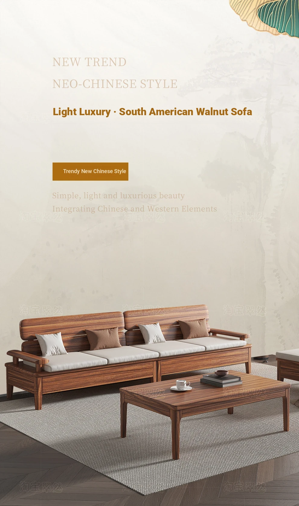 Elegant South American Walnut Solid Wood Sofa Set for Small Living Rooms - Minimalist 4-Seater New Chinese Style Furniture