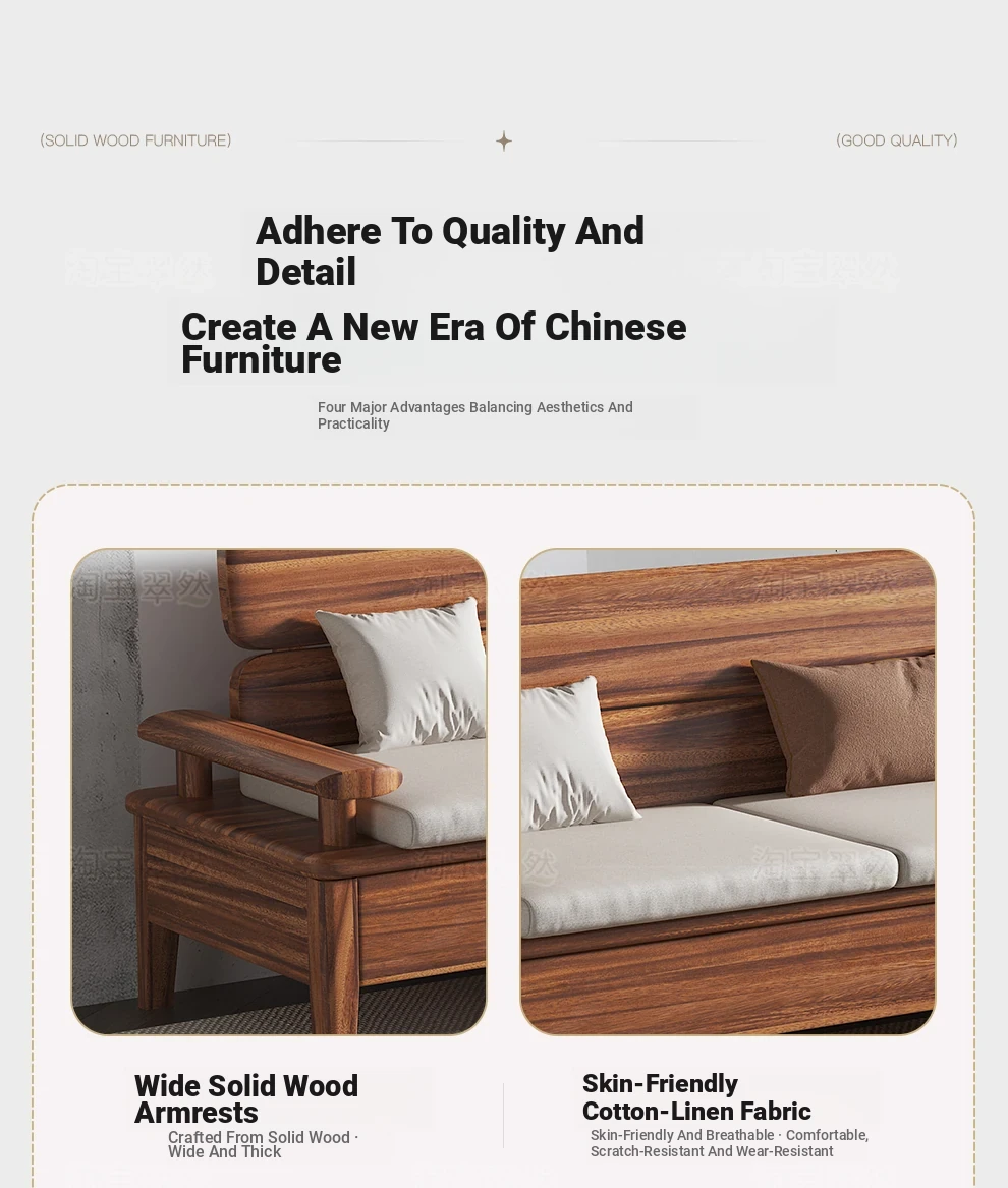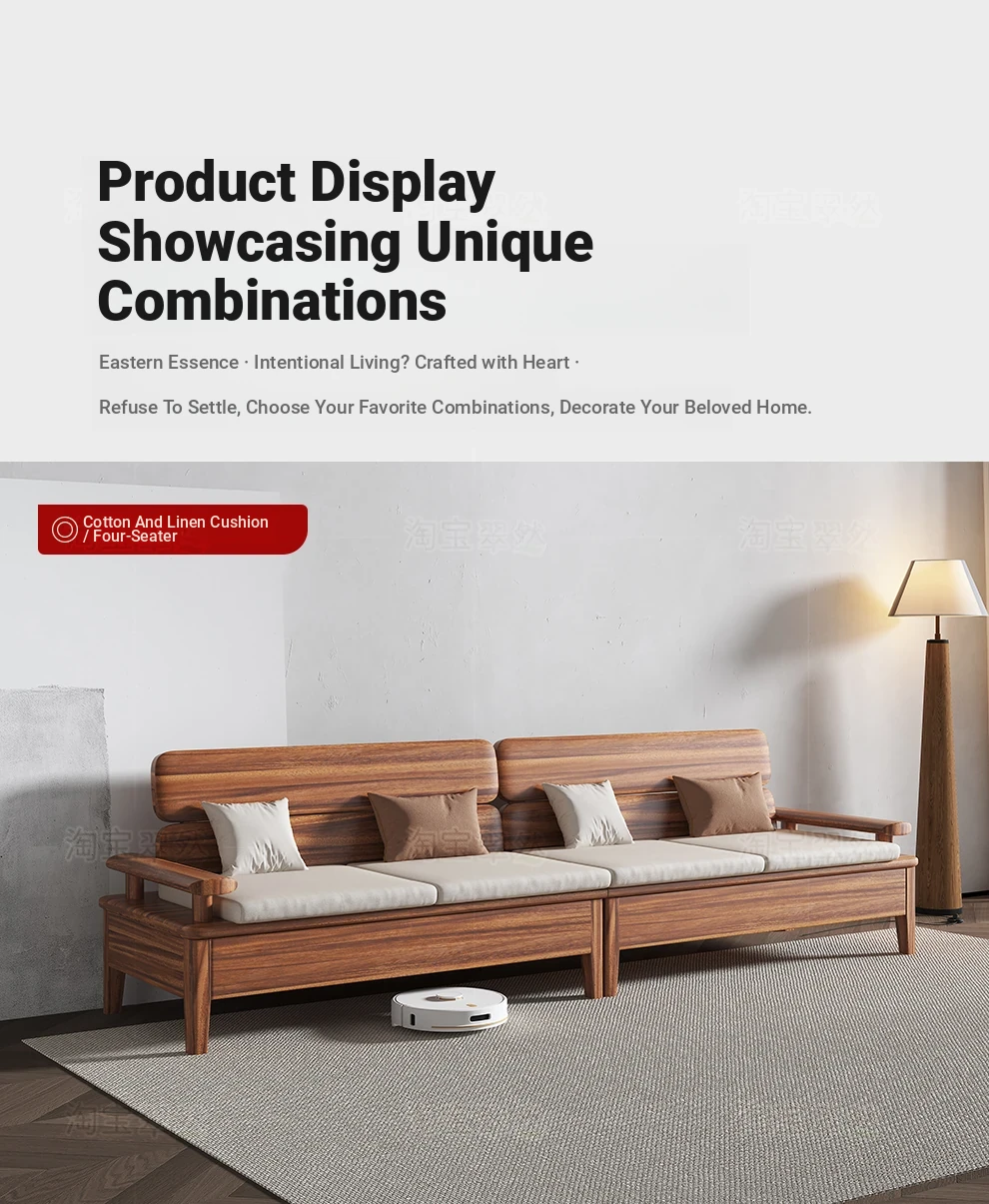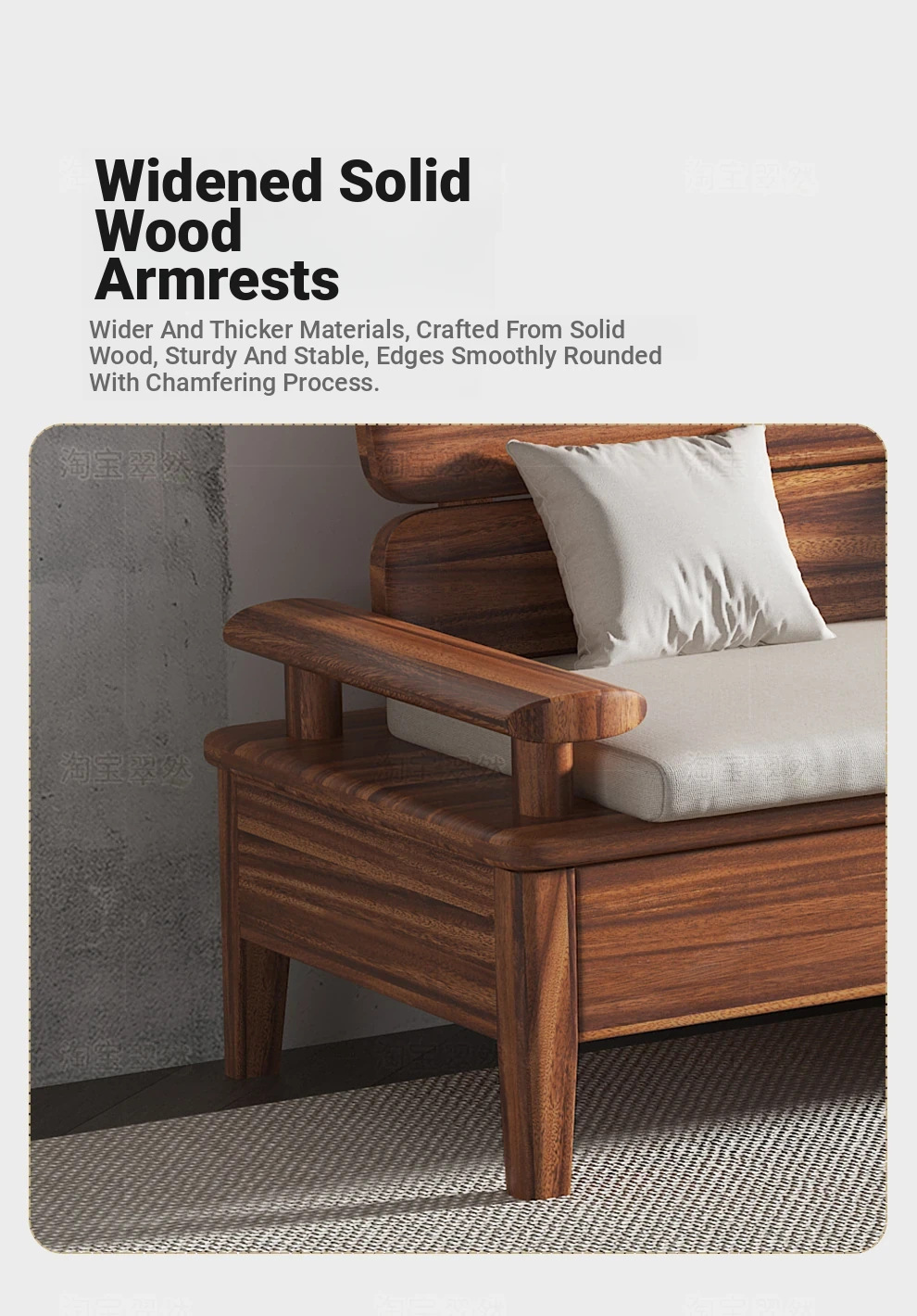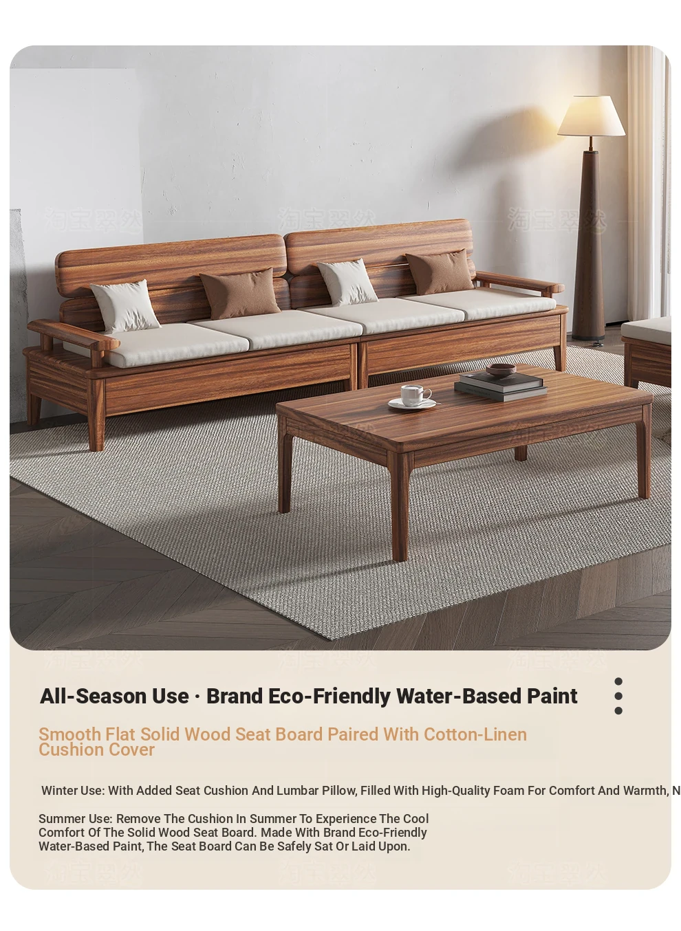 Elegant South American Walnut Solid Wood Sofa Set for Small Living Rooms - Minimalist 4-Seater New Chinese Style Furniture