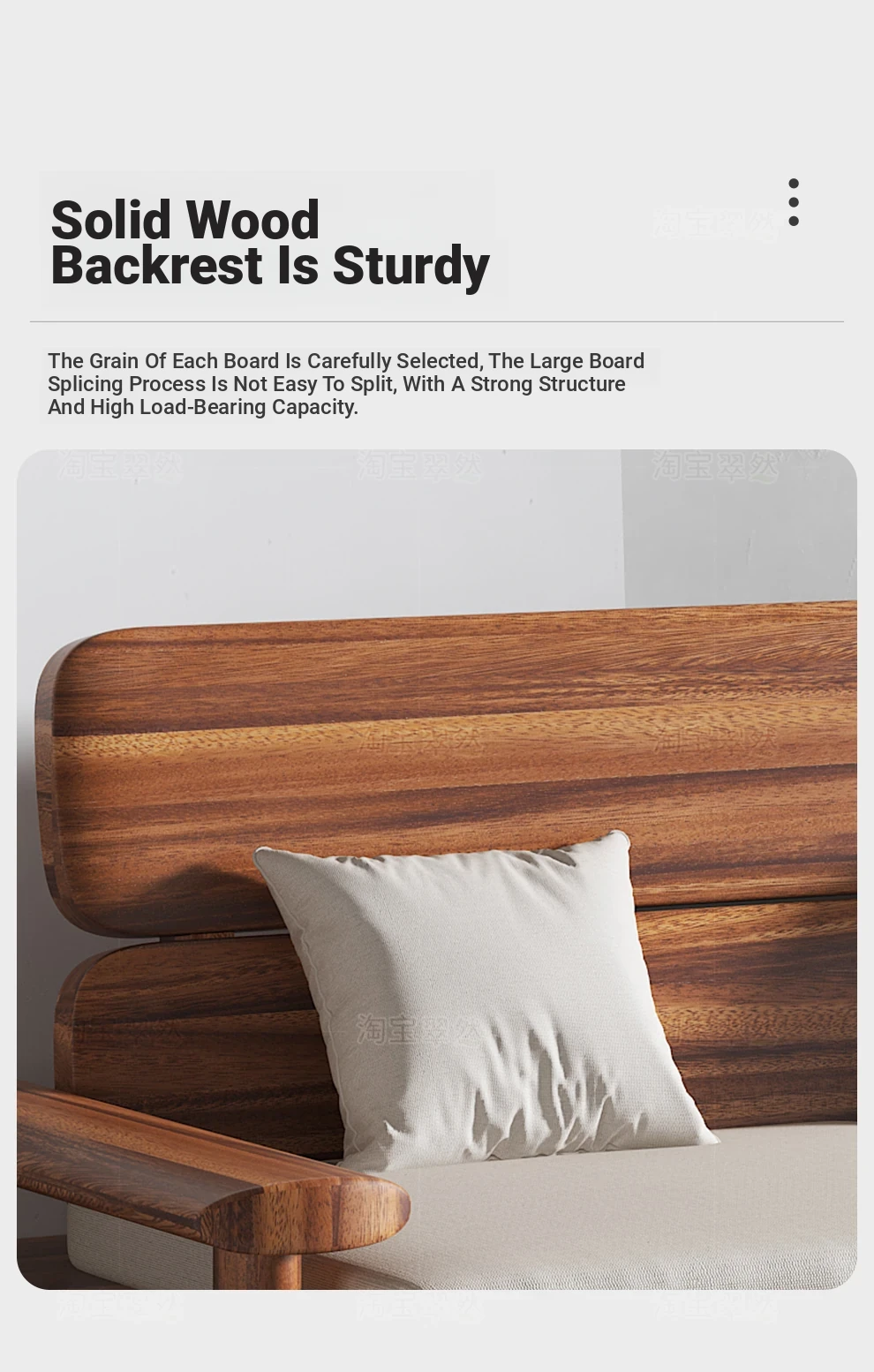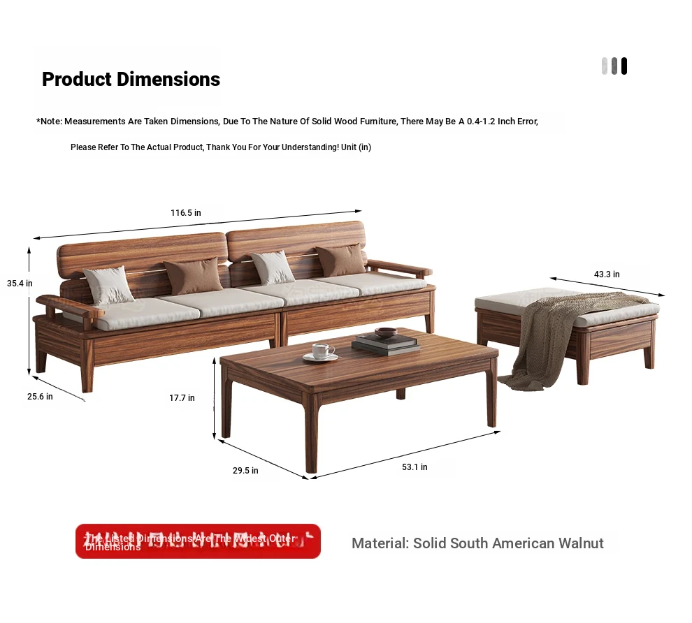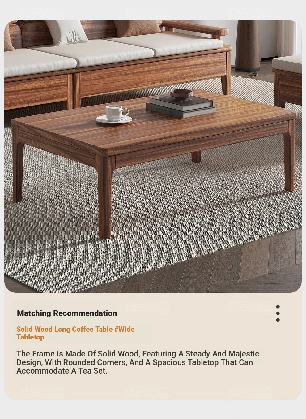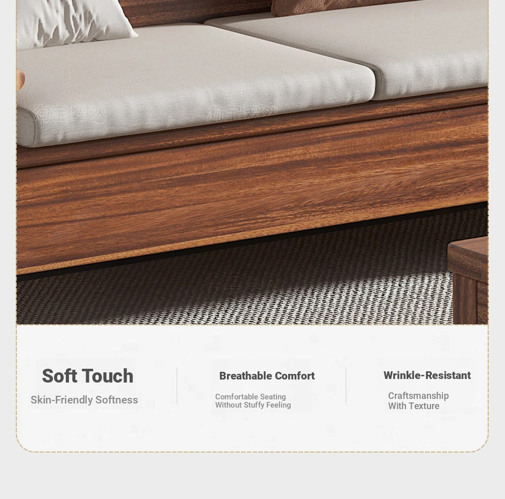 Elegant South American Walnut Solid Wood Sofa Set for Small Living Rooms - Minimalist 4-Seater New Chinese Style Furniture