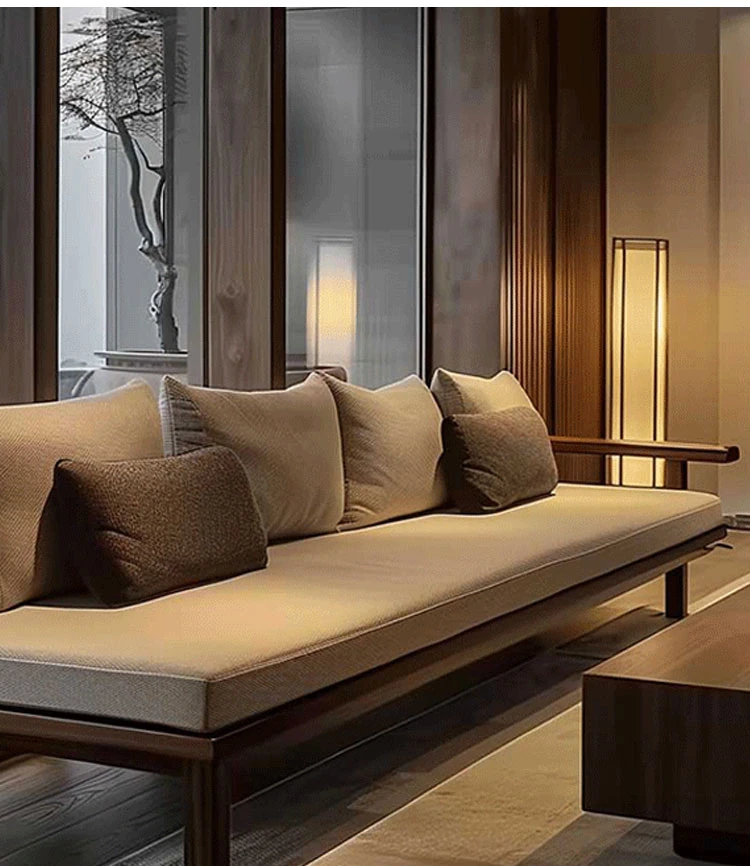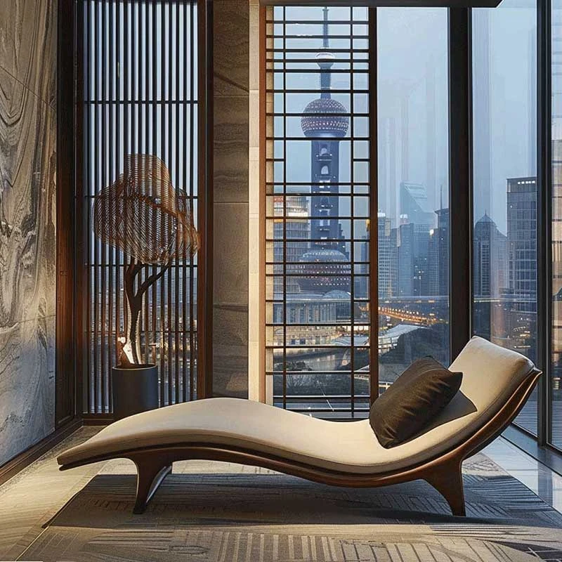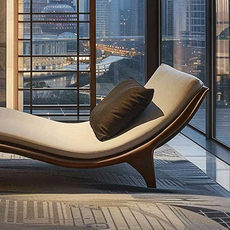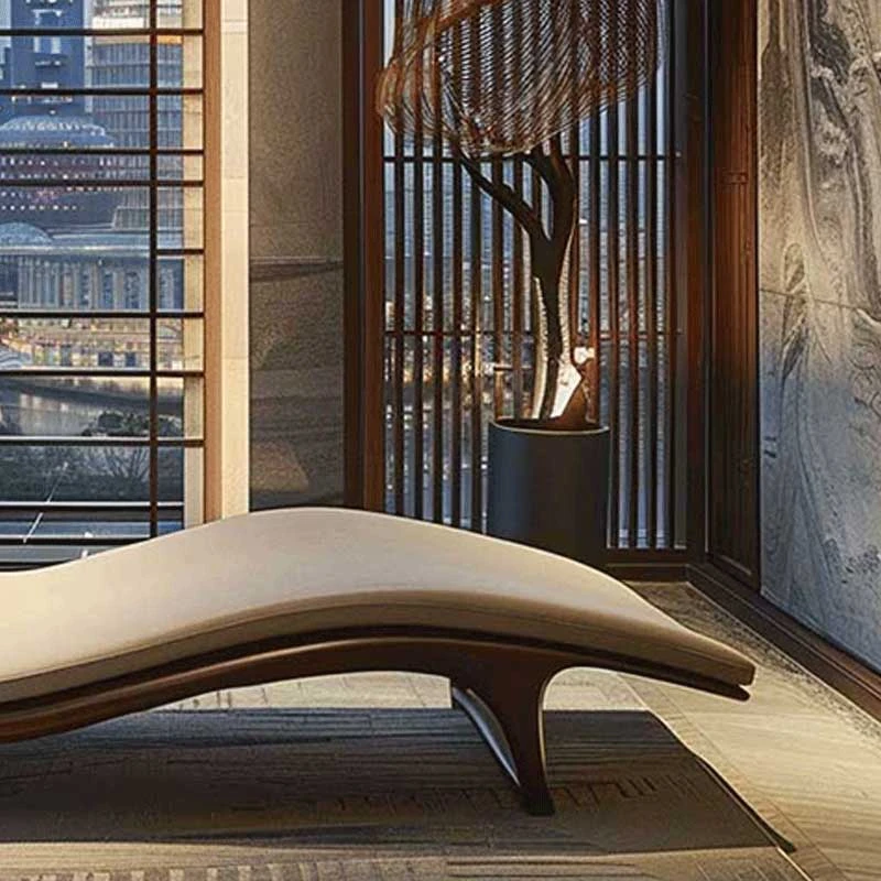 Elegant Zen-Inspired Black Walnut and Ash Wood Chaise Lounge - Perfect for Offices, Hotels, and Vacation Rentals. Experience Comfort and Style in Every Relaxation Moment!