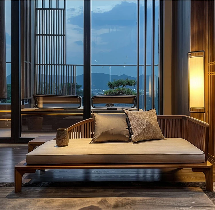 Elegant Zen-Inspired Solid Wood Chaise Lounge in Black Walnut and Ash - Perfect for Luxury Living Rooms, Hotels, and Boutique Stays. Experience Comfort and Style in Every Detail!