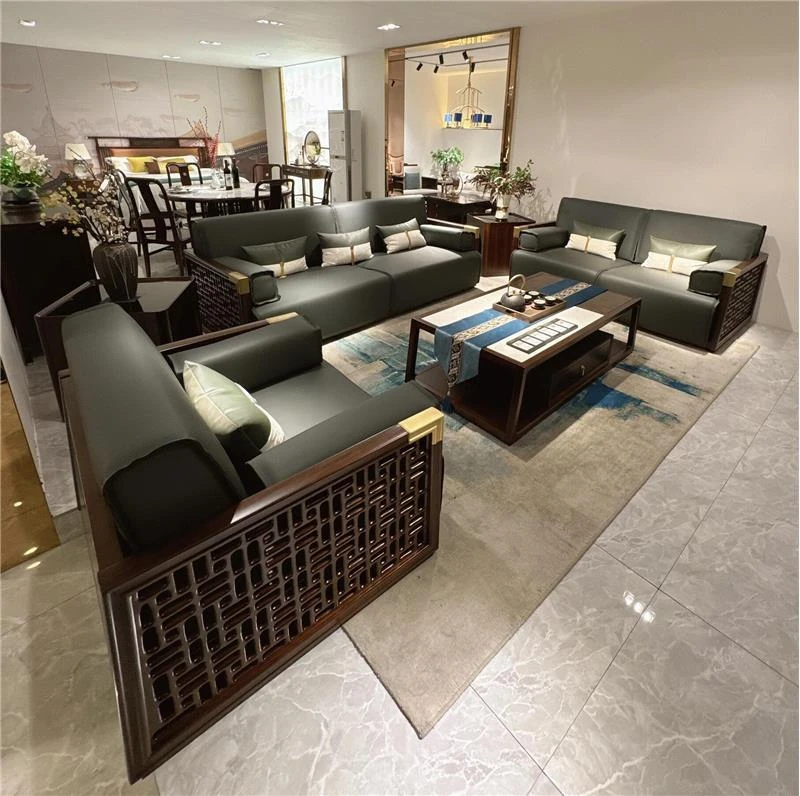 Exclusive Design Luxury New Chinese Style Black Walnut Solid Wood Sofa Set - Modern Minimalist Living Room Furniture for Villas and Mansions