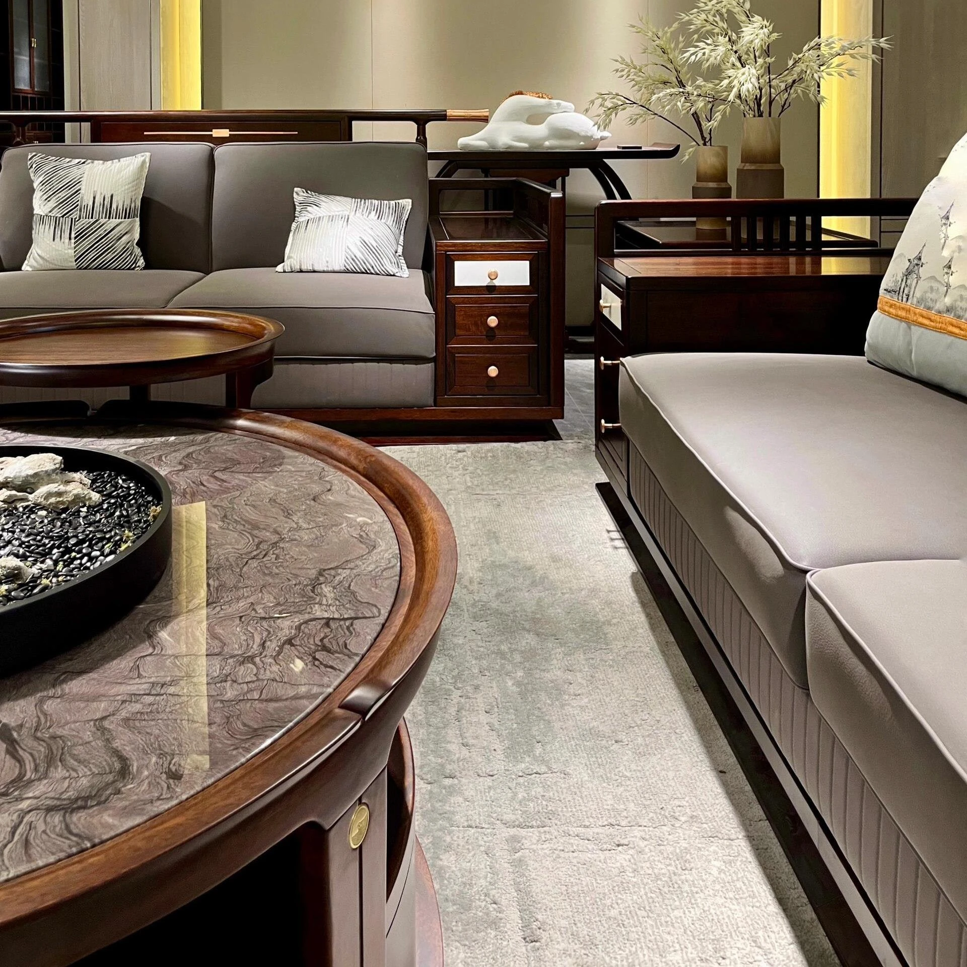 Exclusive Design Villa with Modern Minimalist Large Flat in New Chinese Style - Solid Black Walnut Wood Sofa for Bedroom