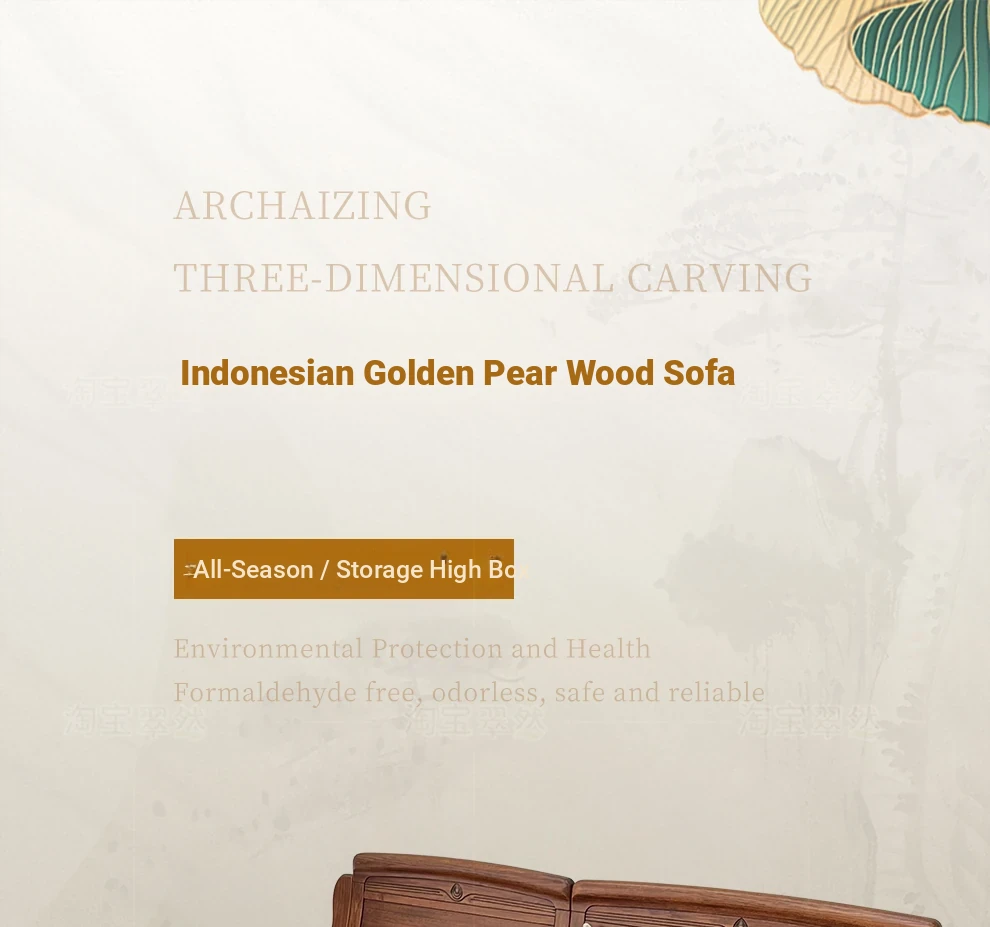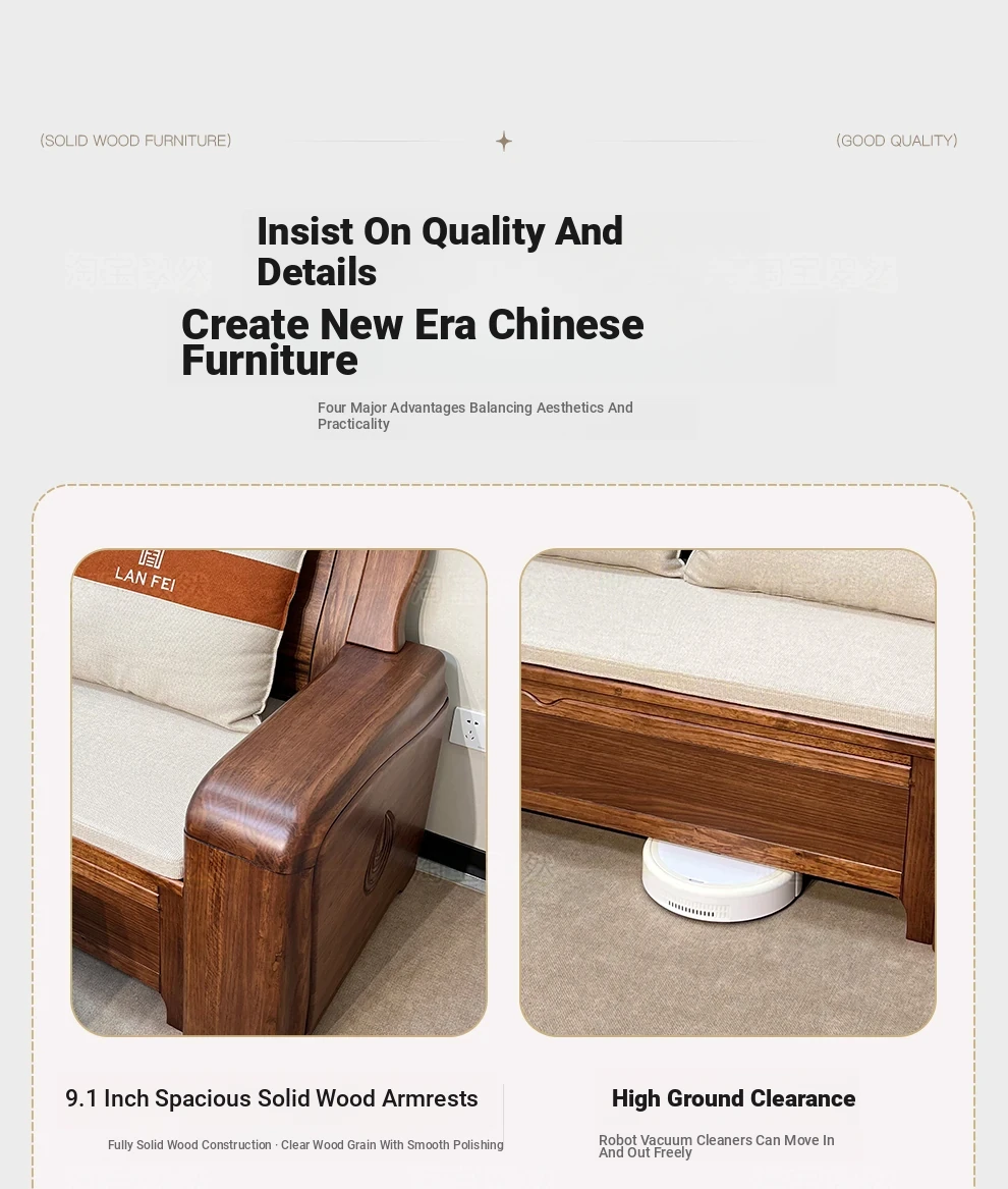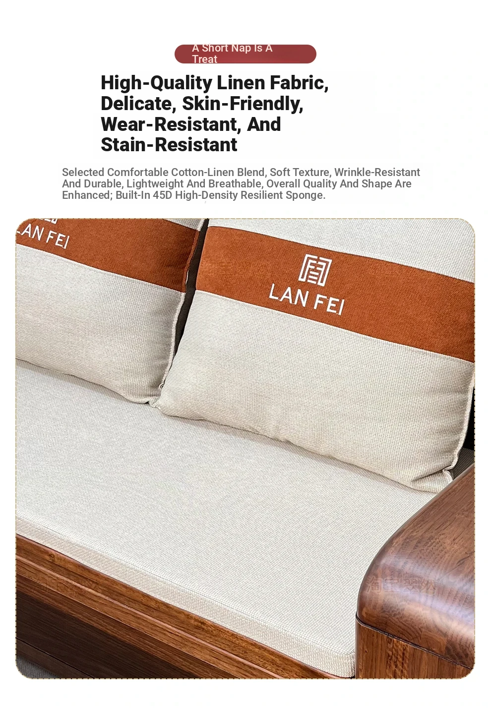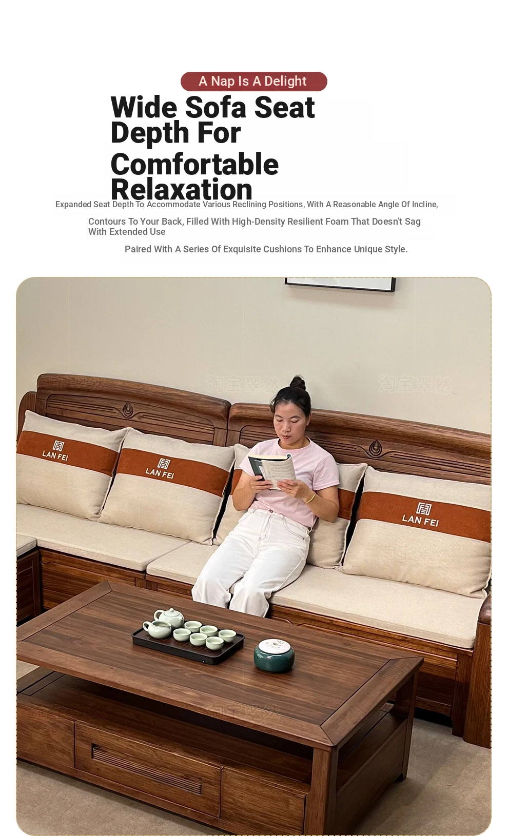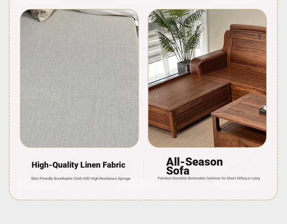 Golden Pear Wood Solid Wood Sofa Set for Small Living Rooms - 5-Seater, Dual-Season Use with Chaise Lounge and Storage, Elegant Chinese Furniture