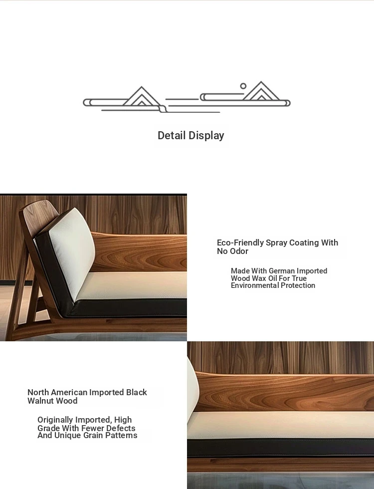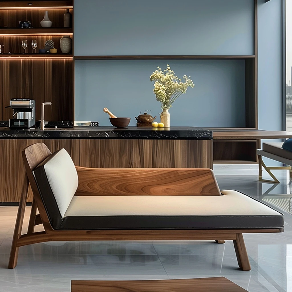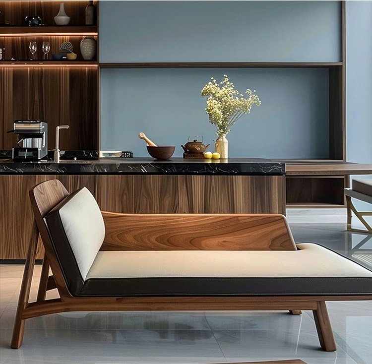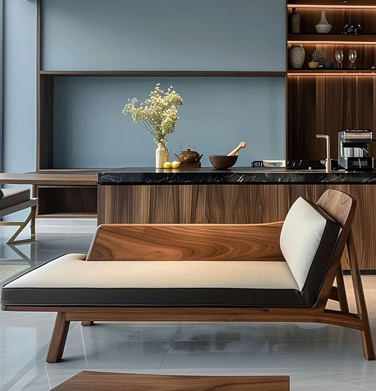 High-End Walnut Wood Chaise Lounge - Modern Minimalist Zen Style for Living Room and Bedroom, Elegant and Luxurious Design