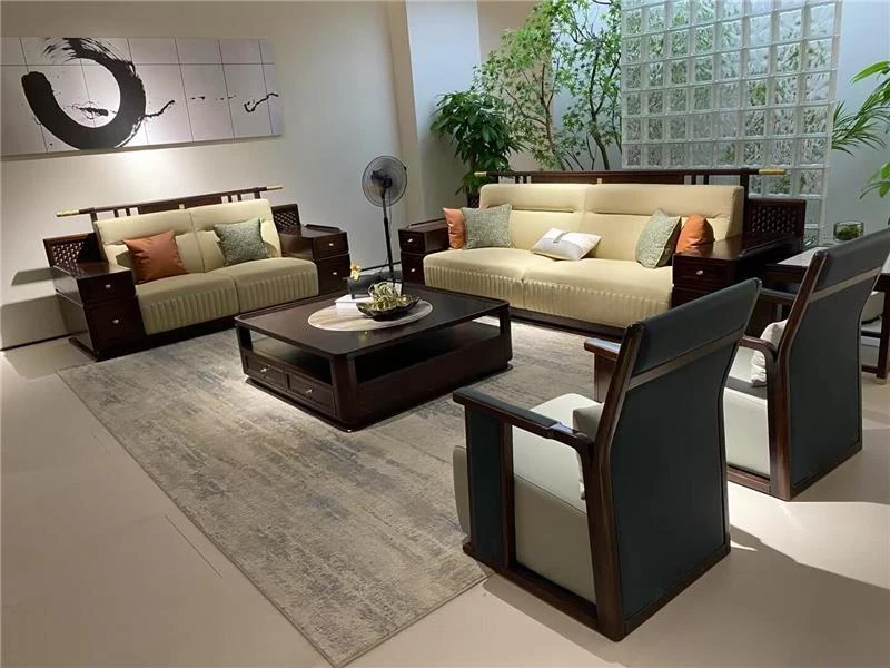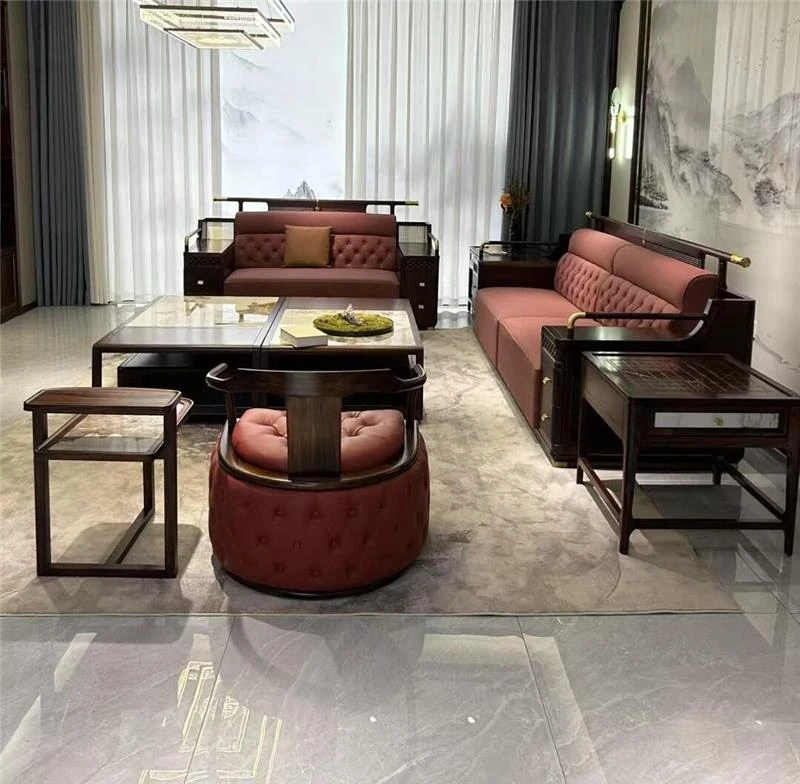 Luxurious Flat with Clubhouse Villa - Modern Minimalist Bedroom Featuring Elegant Black Walnut Solid Wood Sofa in New Chinese Style
