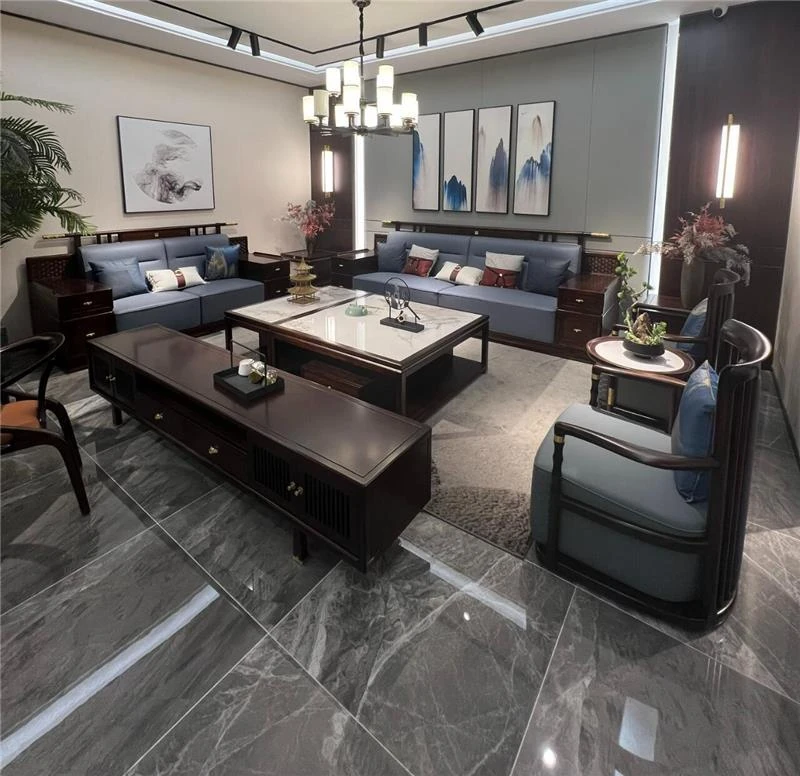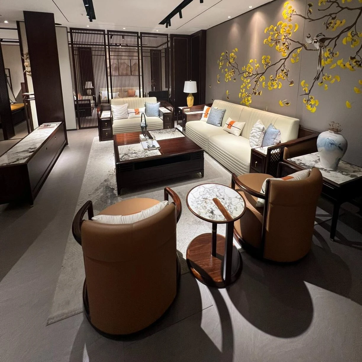 Luxurious New Chinese Style Black Walnut Solid Wood Sofa Set - Elegant Modern Minimalist Design for Villas and Mansions, Perfect for Your Dream Home