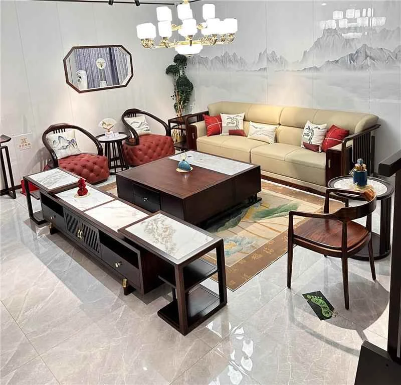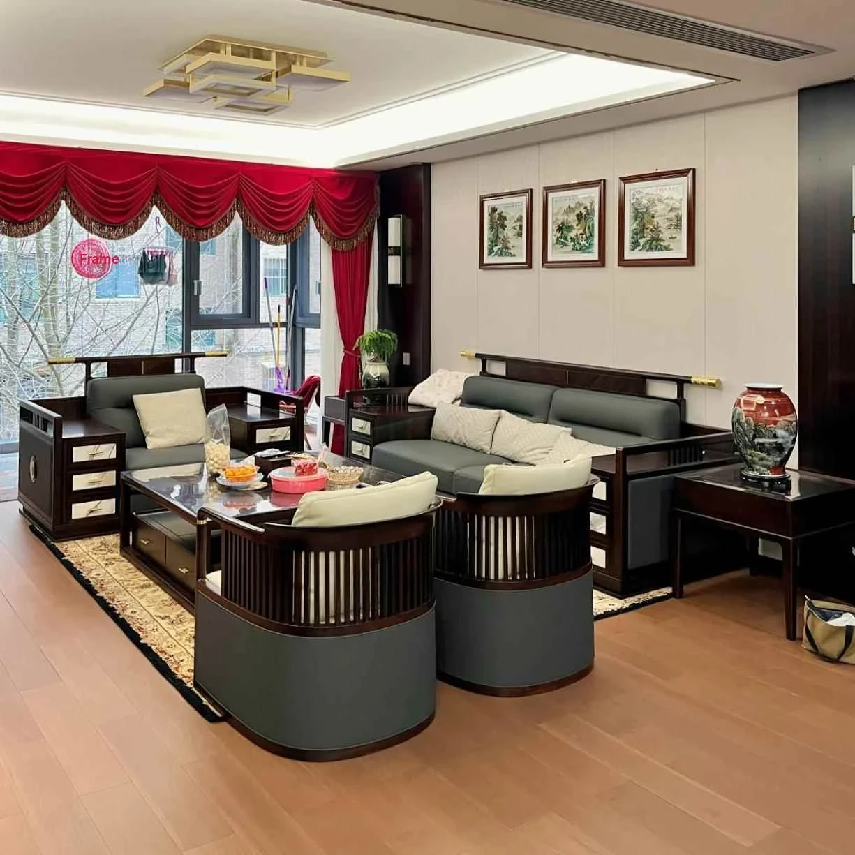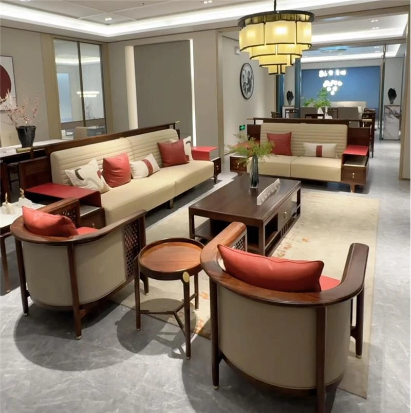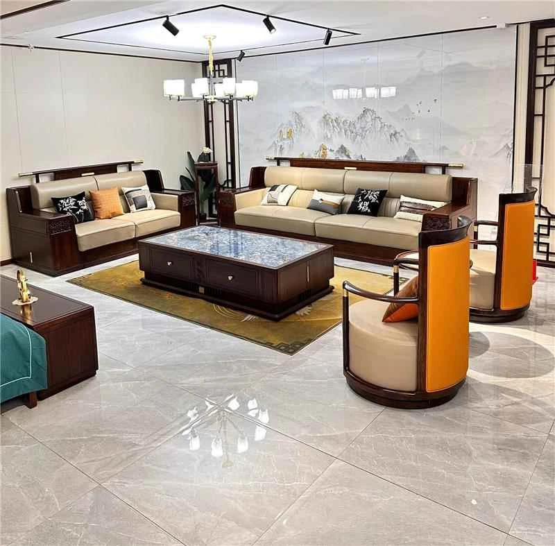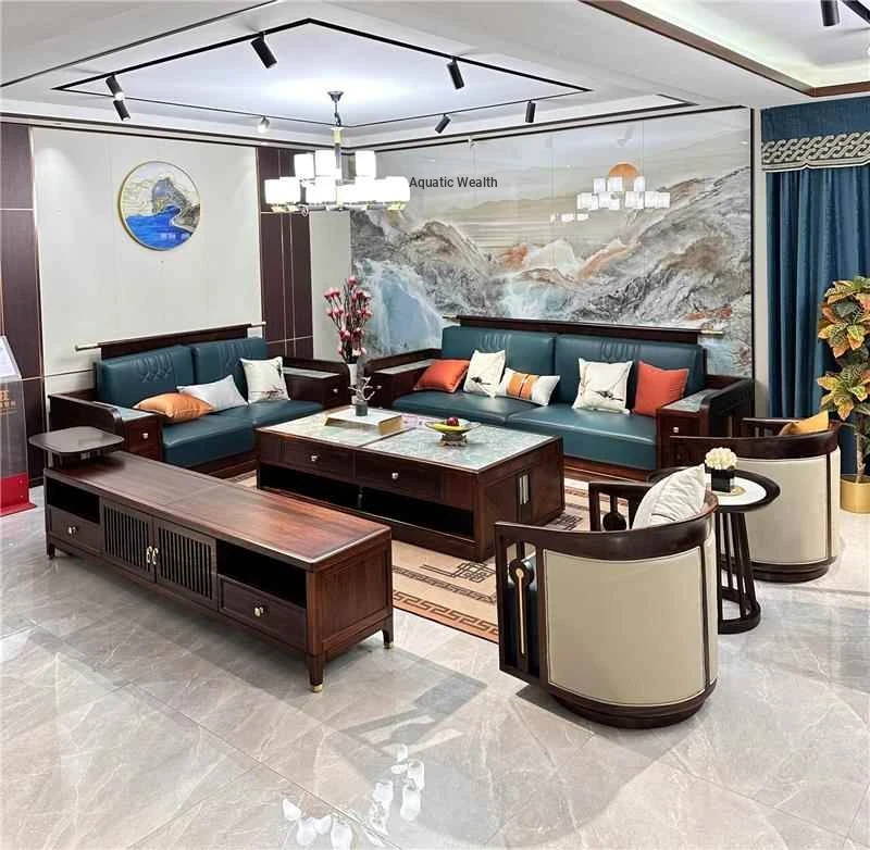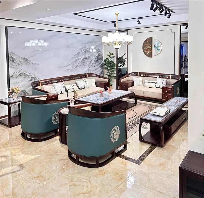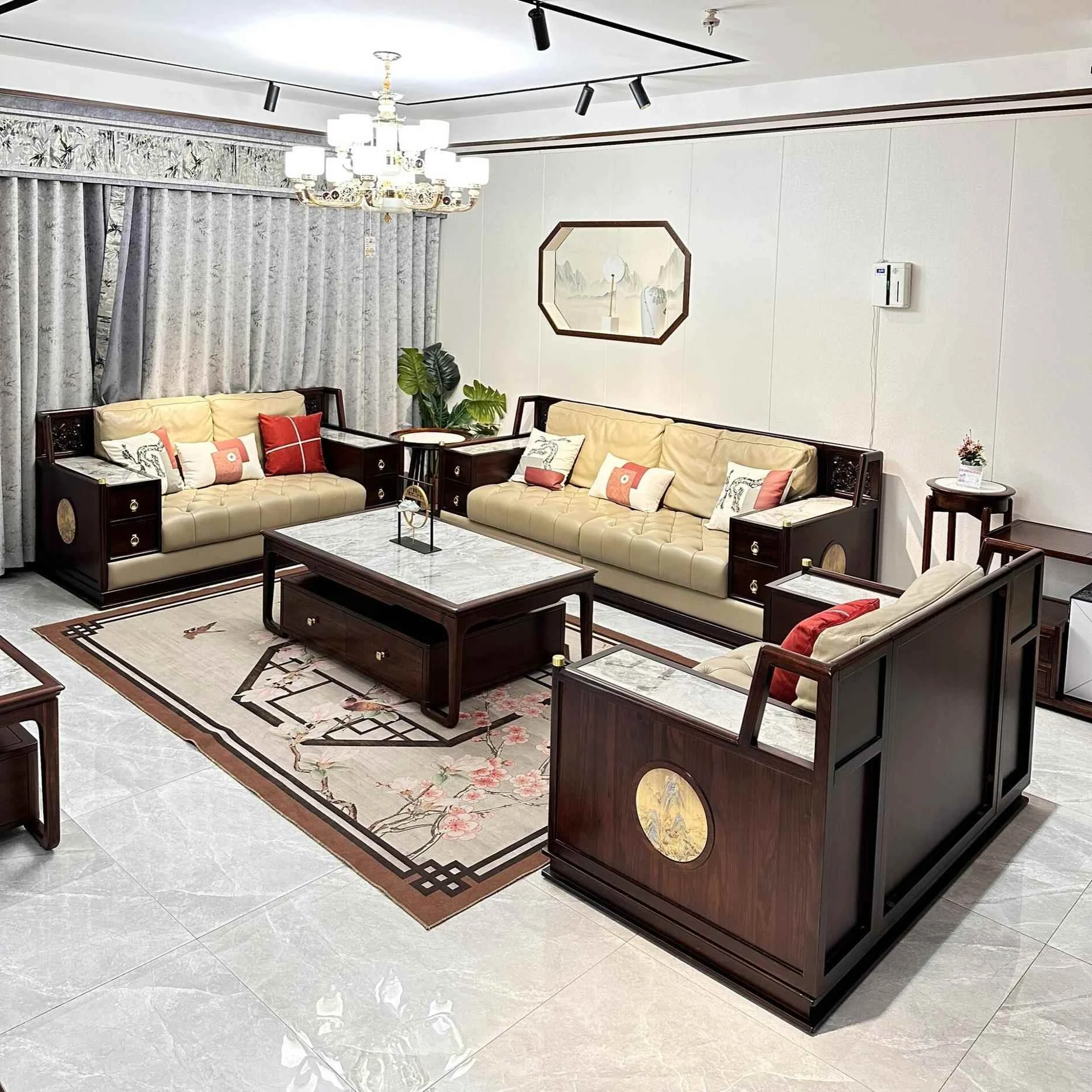 Luxurious New Chinese Style Villa Sofa - Modern Minimalist Large Solid Wood Black Gold Furniture for Hotel and Club Bedrooms