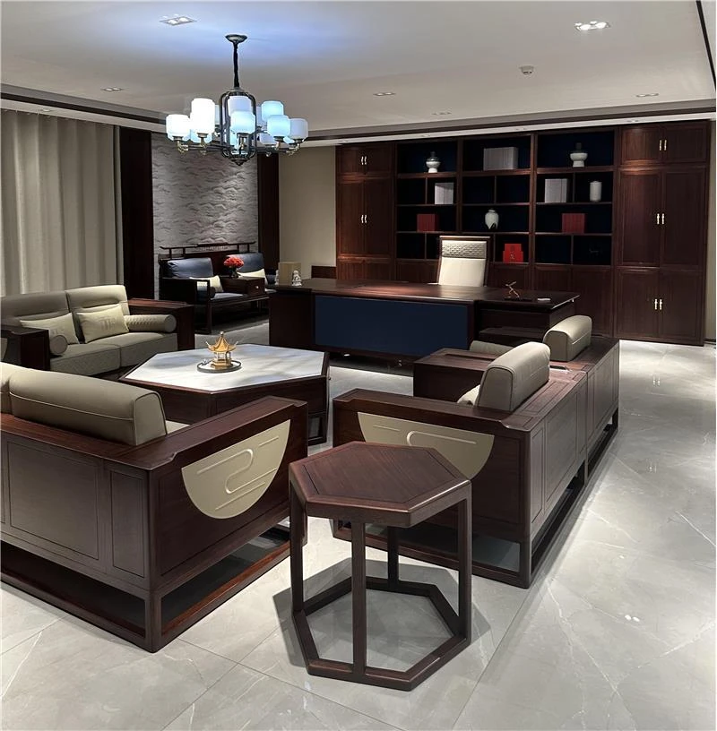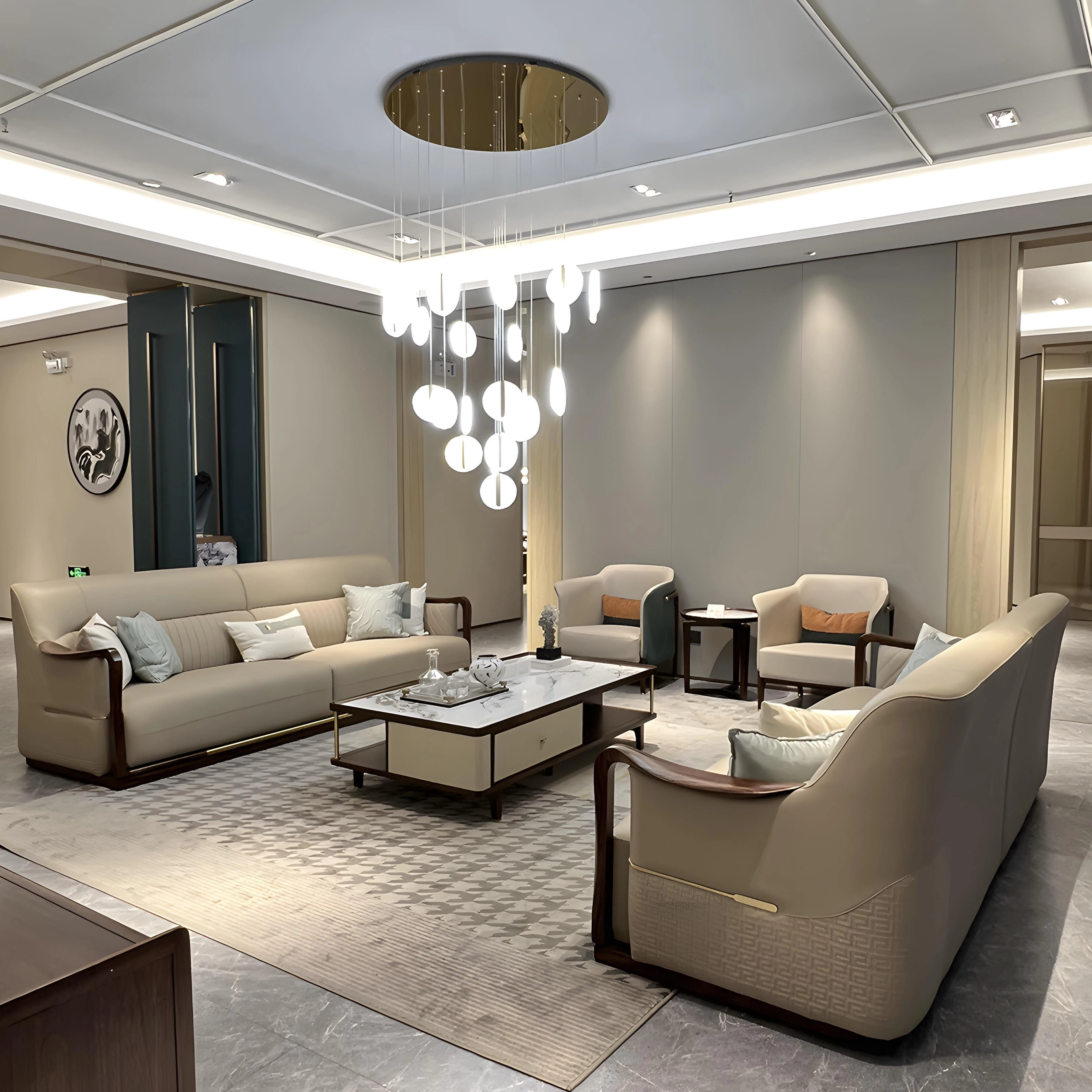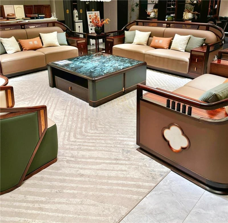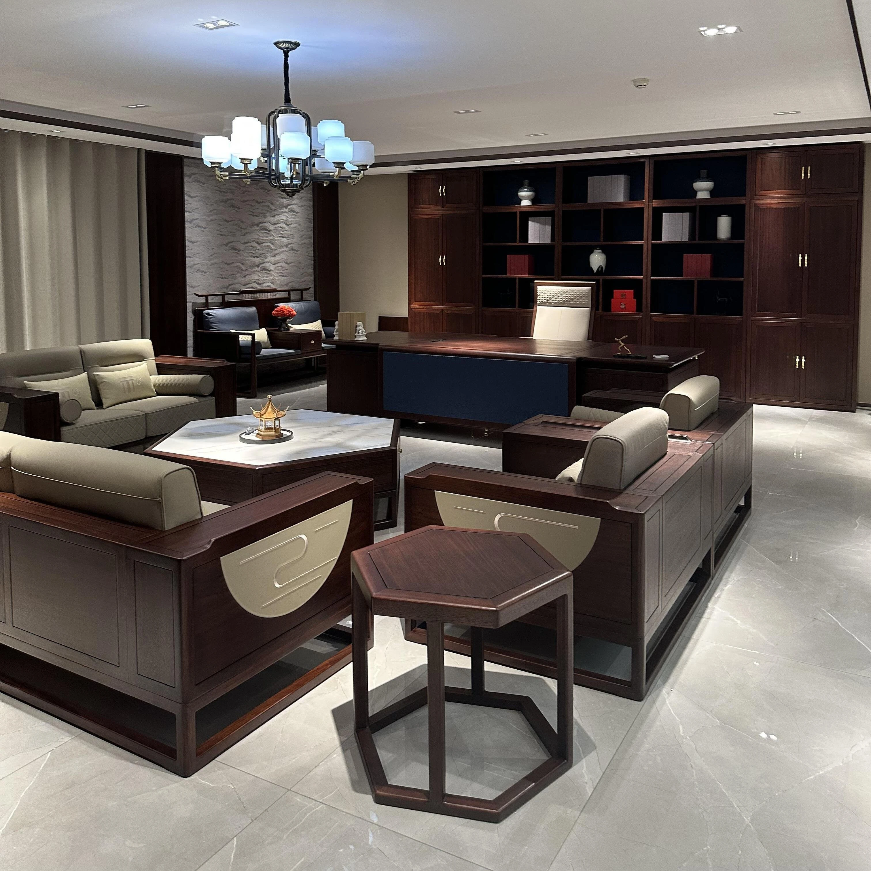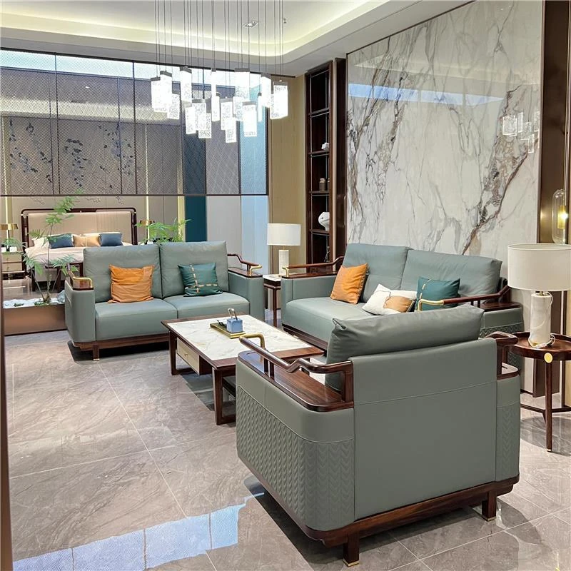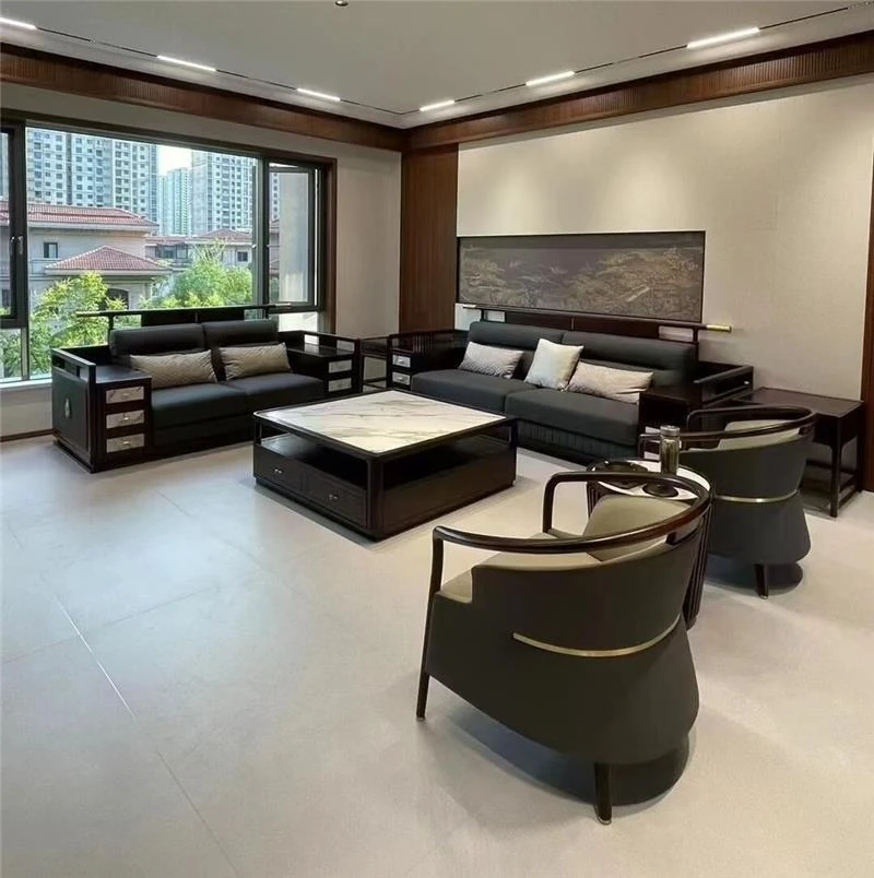 Luxurious New Chinese-Style Black Walnut Sofa Set for Model Rooms - Modern Minimalist Solid Wood Design for Spacious Villas and Luxury Homes