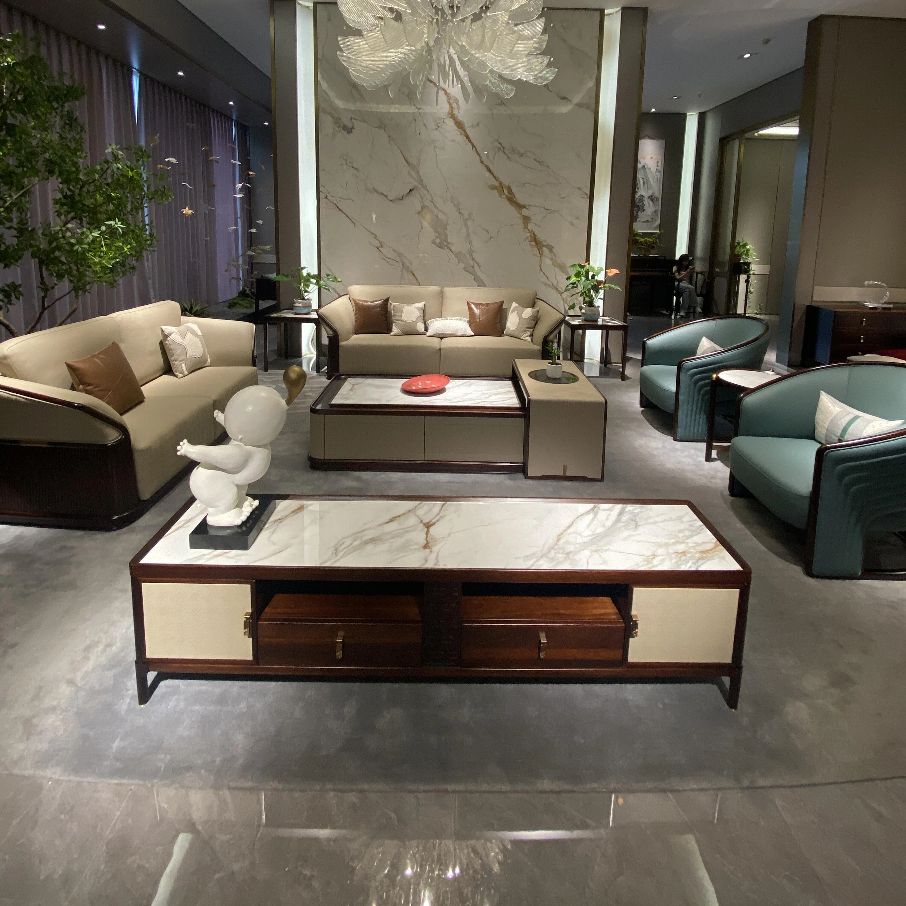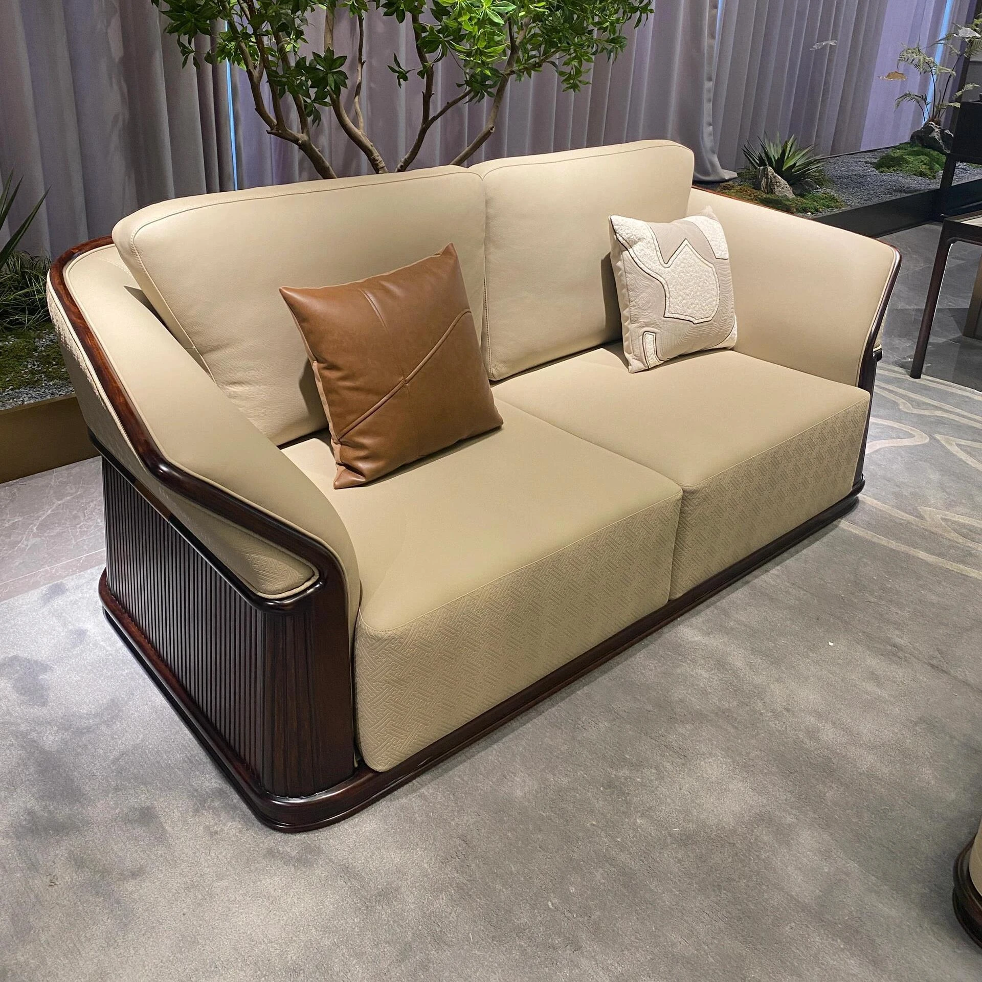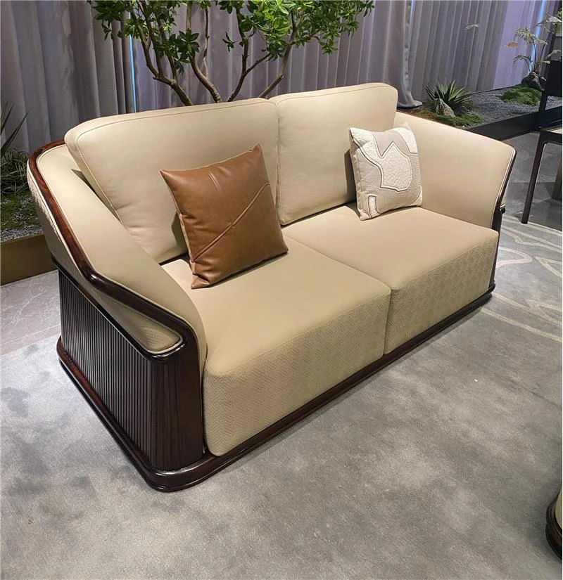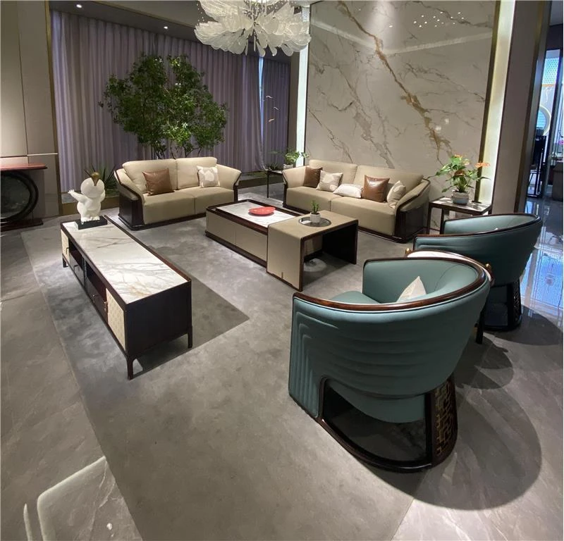Luxurious New Chinese-Style Villa Clubhouse: High-End Spacious Hardwood Bedroom Sofa in Black Gold Wood - Modern Elegance for Your Dream Home
