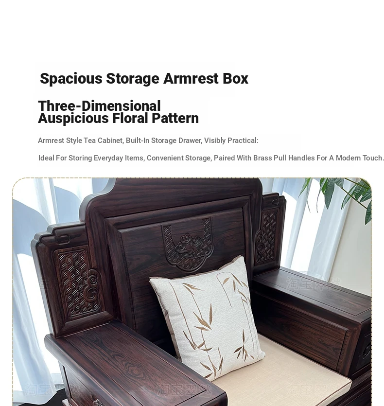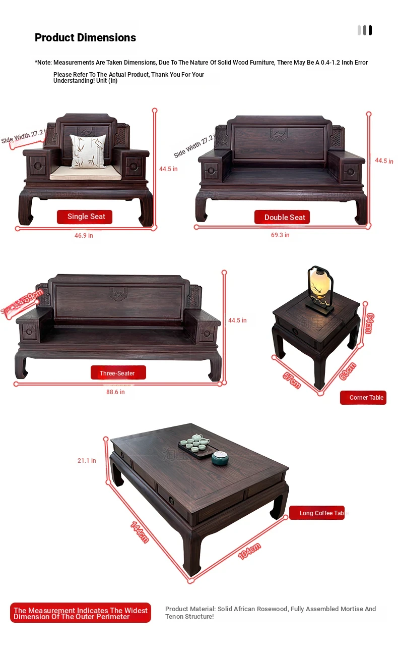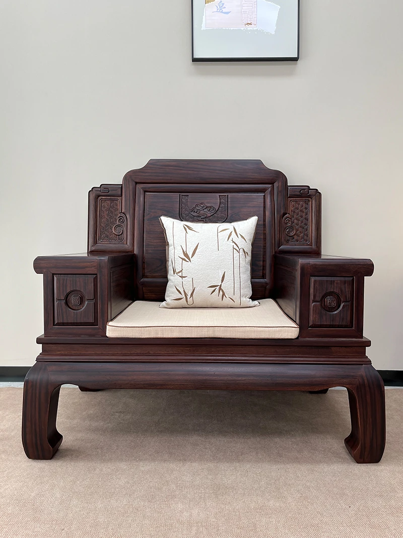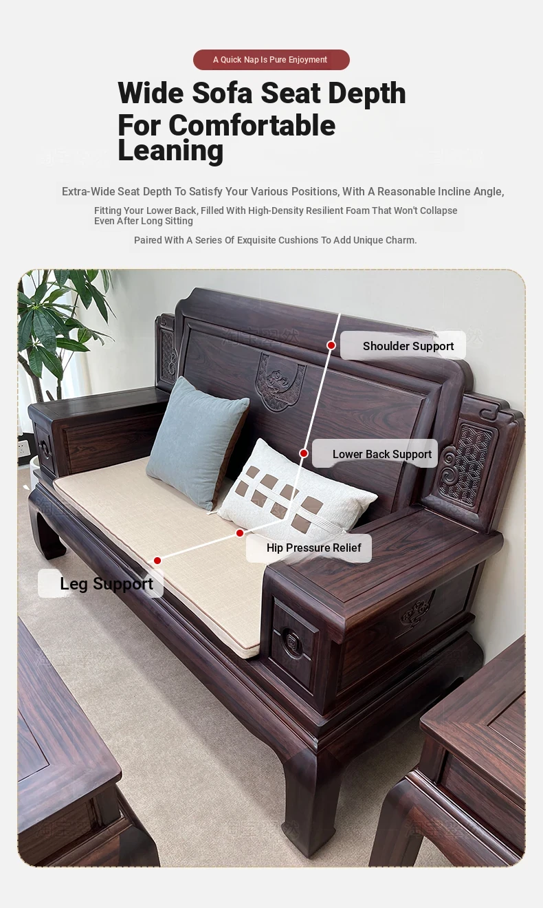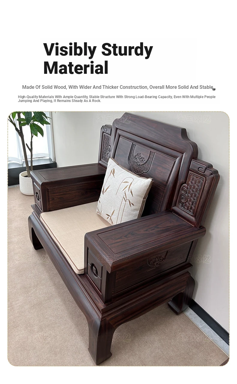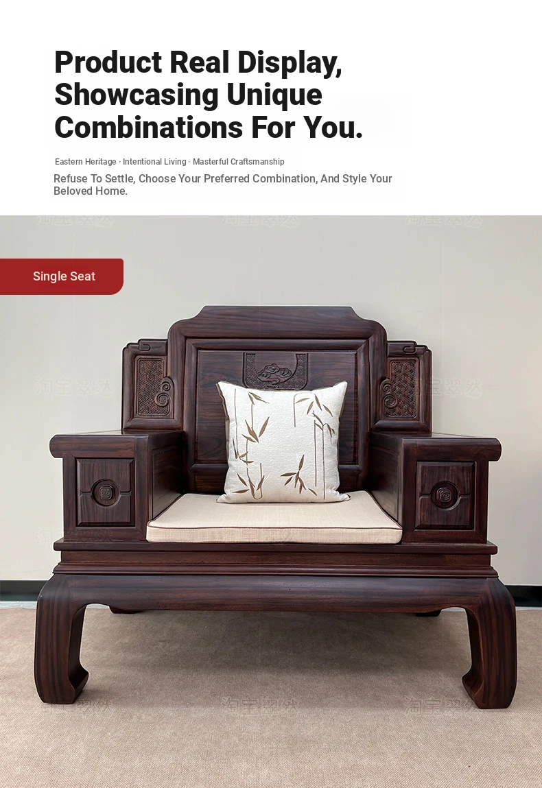 Luxury African Rosewood Solid Wood Sofa Set for Spacious Living Rooms - Traditional Chinese Style with Mortise and Tenon Joinery and Wax Finish, Perfect for Elegant Interiors