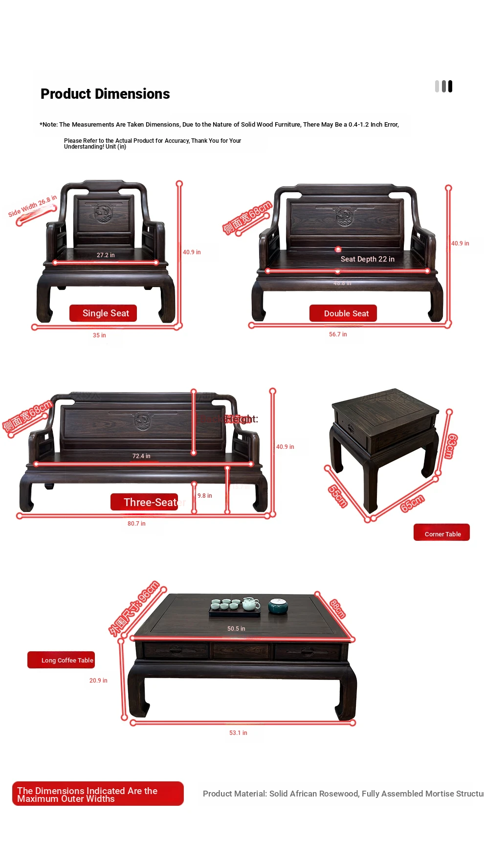 Three-person position (100% pure solid wood)