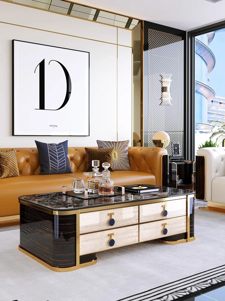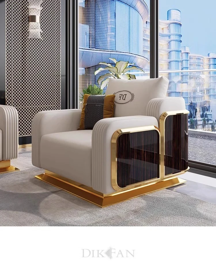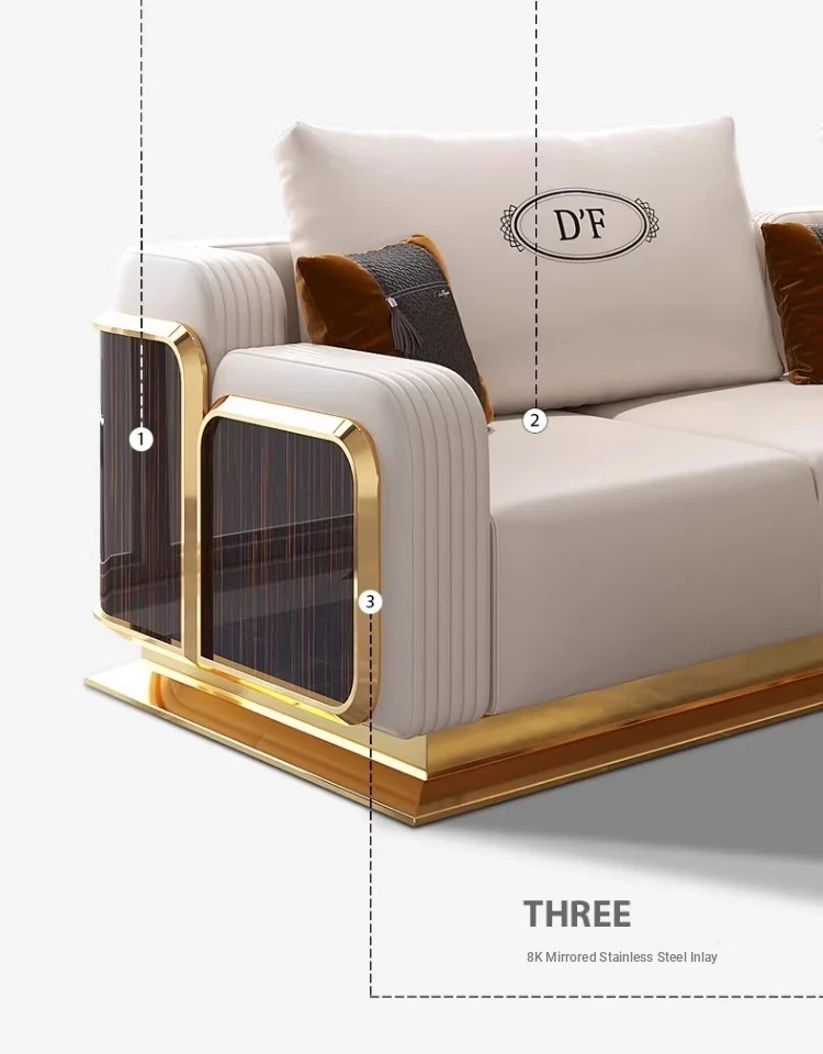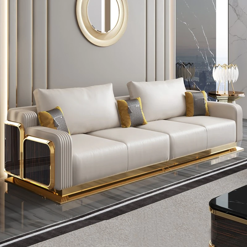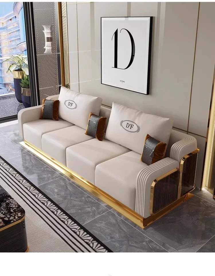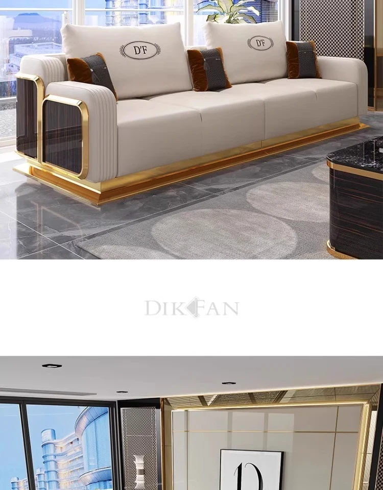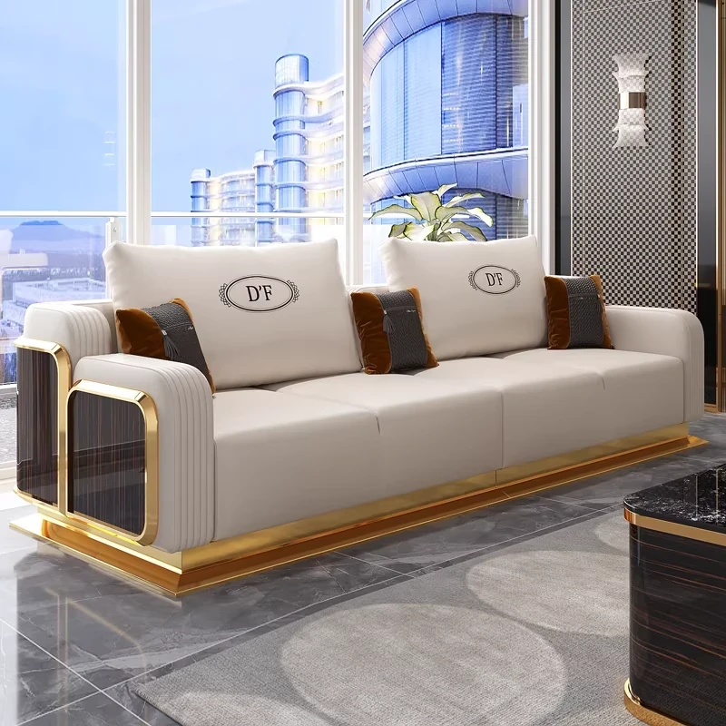 Luxury Genuine Leather Sofa Set for Villa and High-End Apartments - Bentley Style Elegant Living Room Furniture Collection