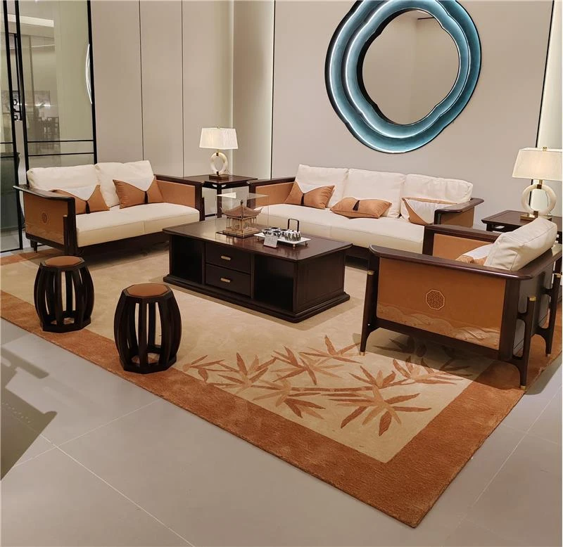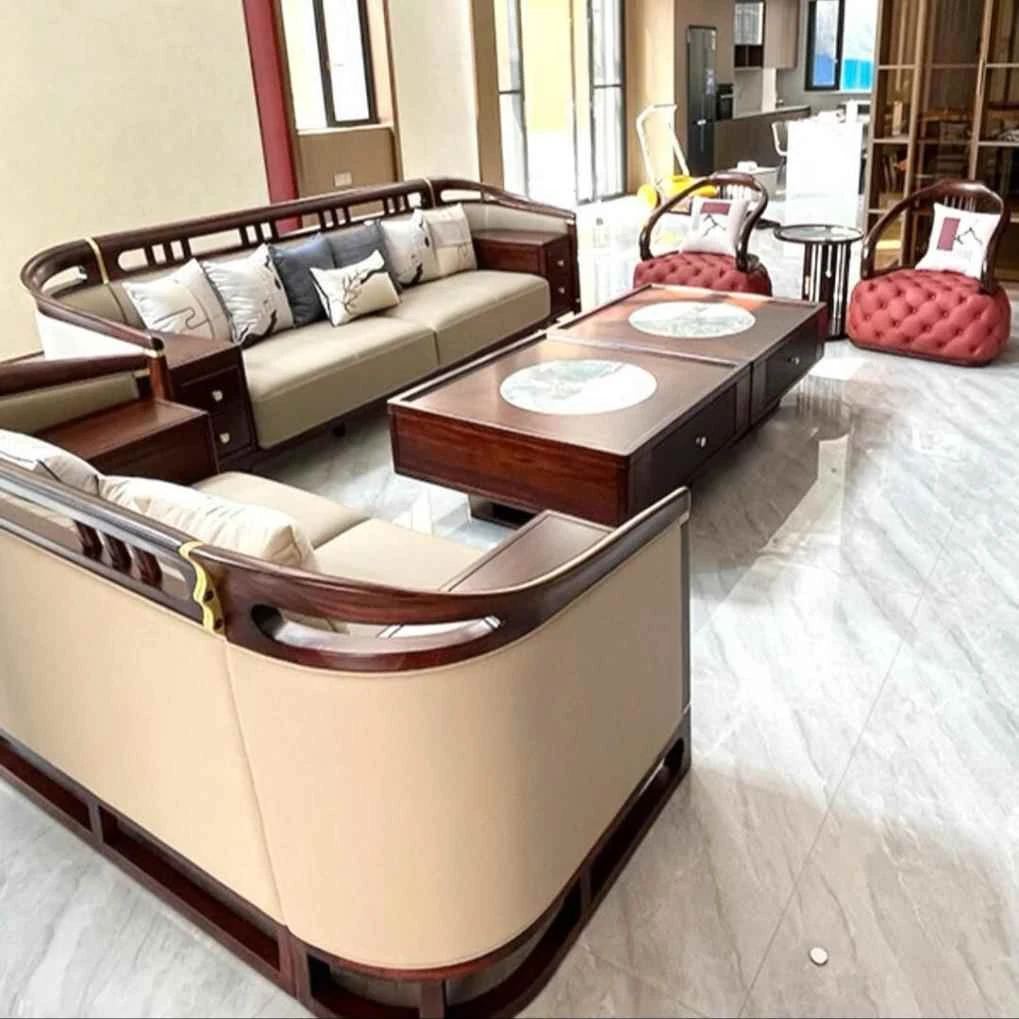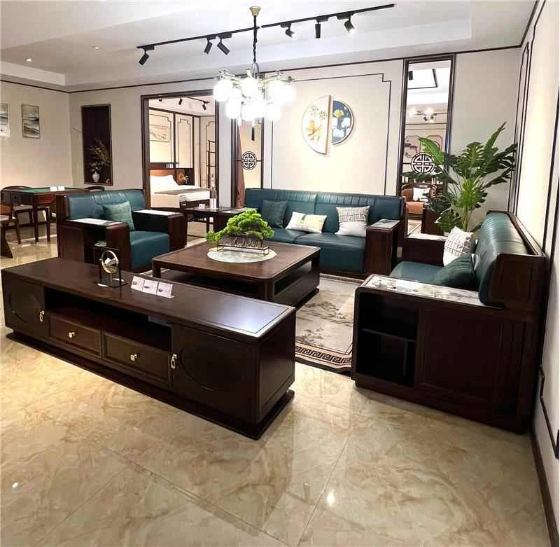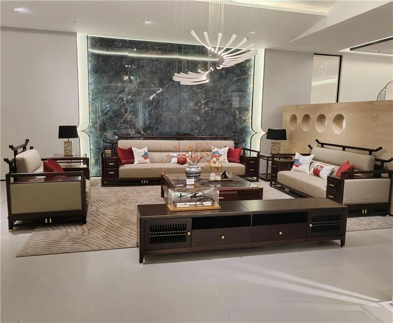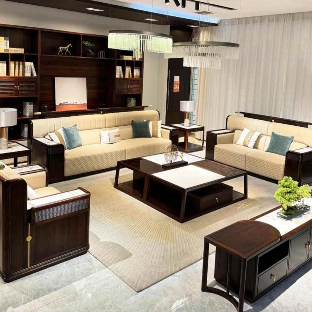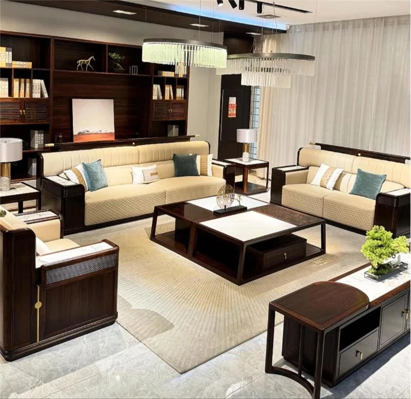 Luxury Modern Chinese Style Black Walnut Solid Wood Sofa for Villas and High-End Residences - Perfect for Spacious Living Rooms with Minimalist Design