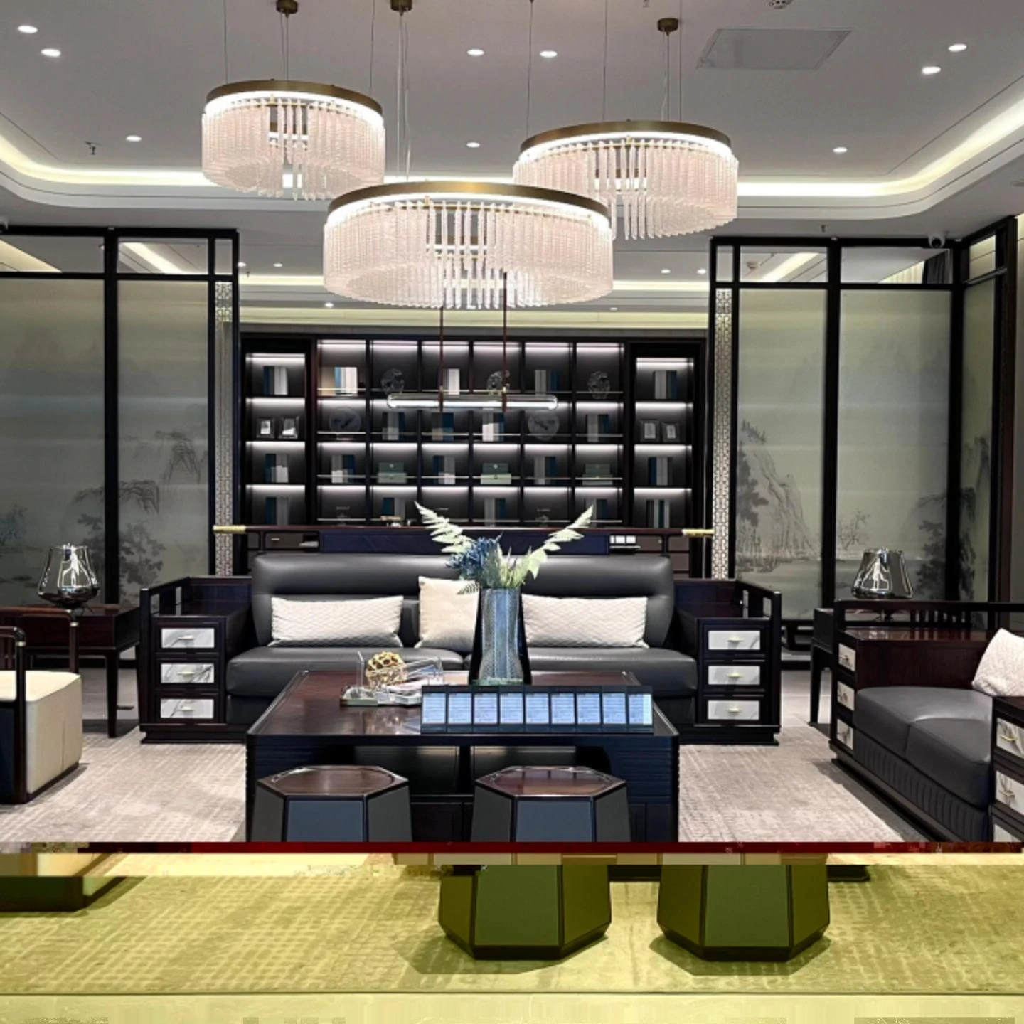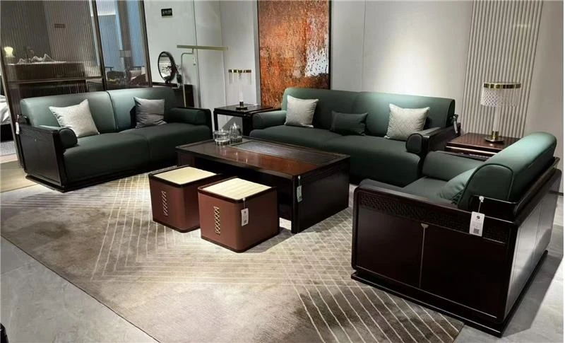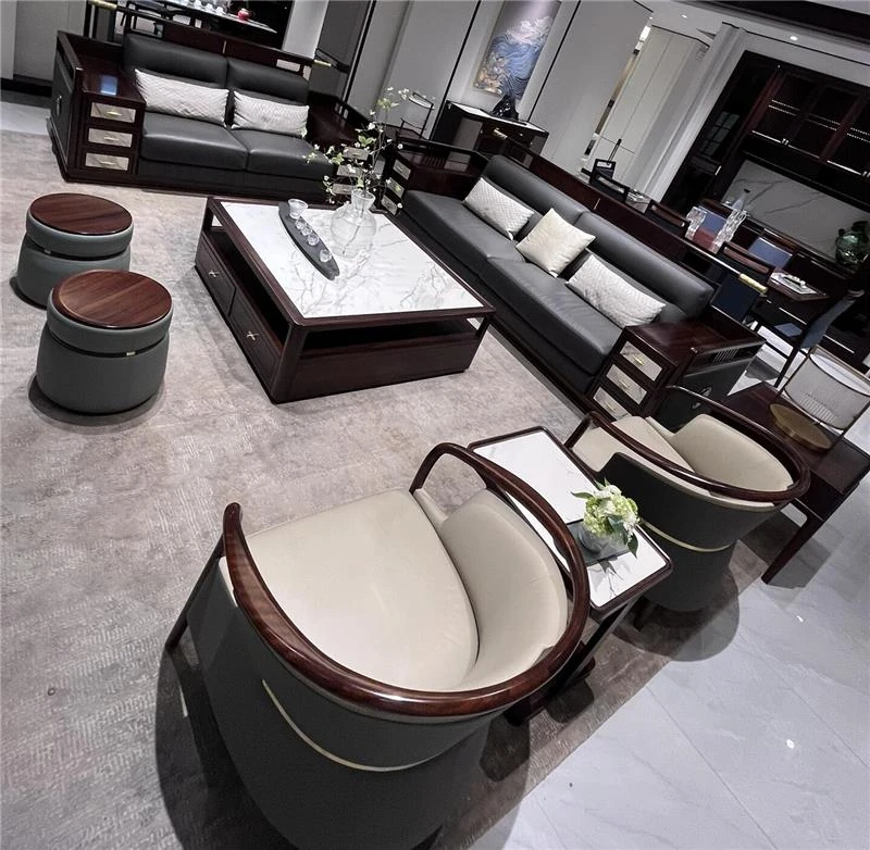 Luxury Modern Chinese-Style Solid Wood Sofa Set in Dark Wenge - Elegant Minimalist Design for Spacious Living Rooms and High-End Villas