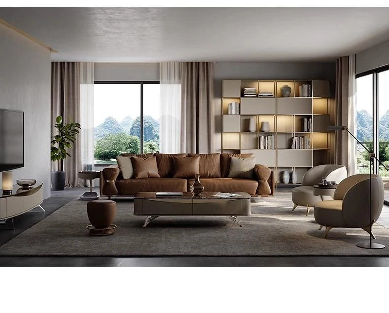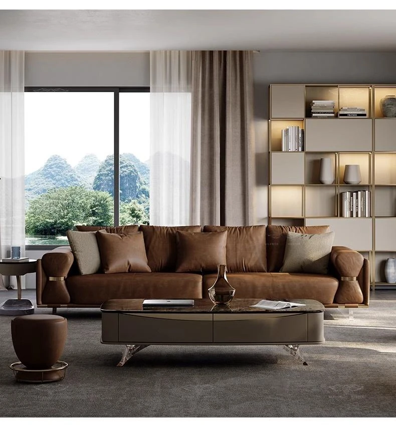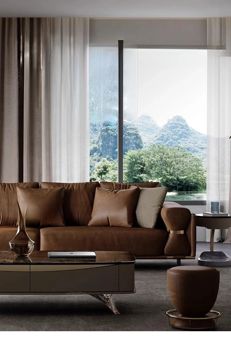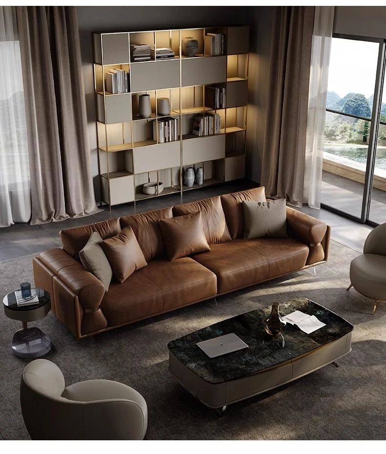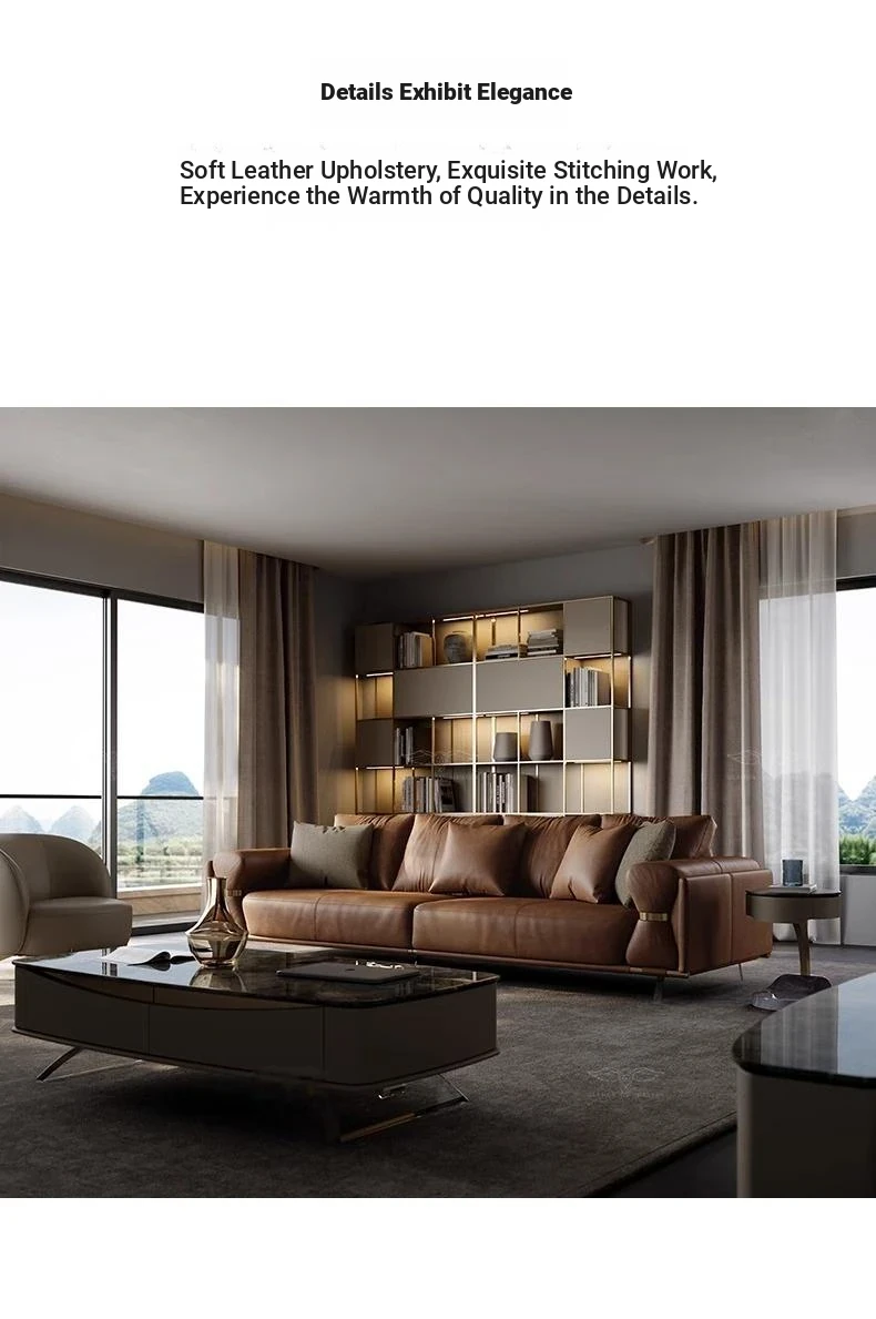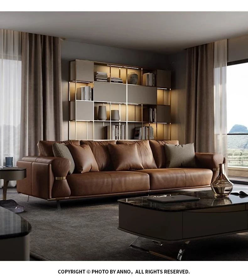 Luxury Modern Genuine Leather Sofa for Spacious Living Room - 2024 New Arrival, Stylish and Comfortable Furniture for Your Home