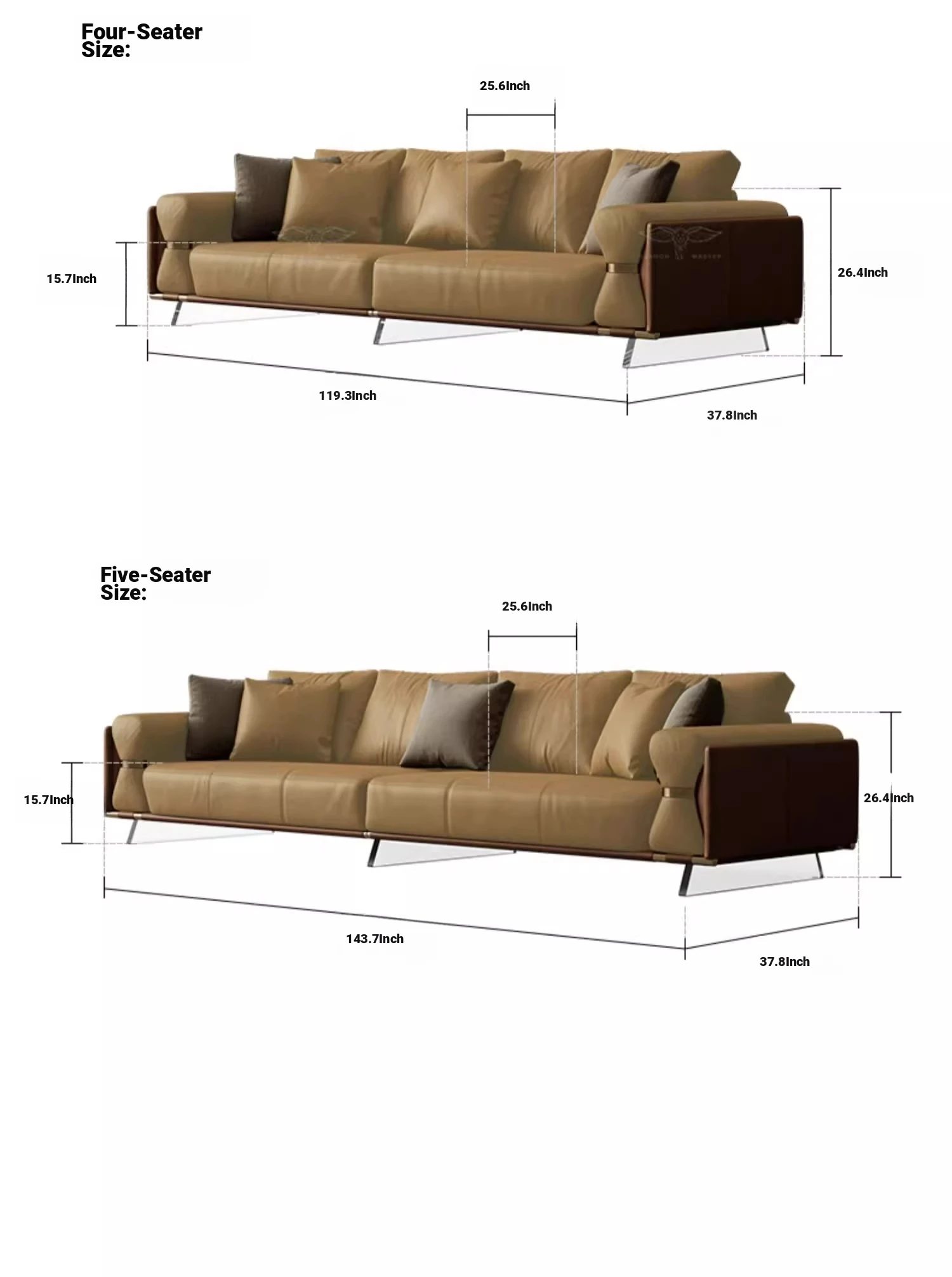 recall sofa five/grain thick full leather/V/champagne gold
