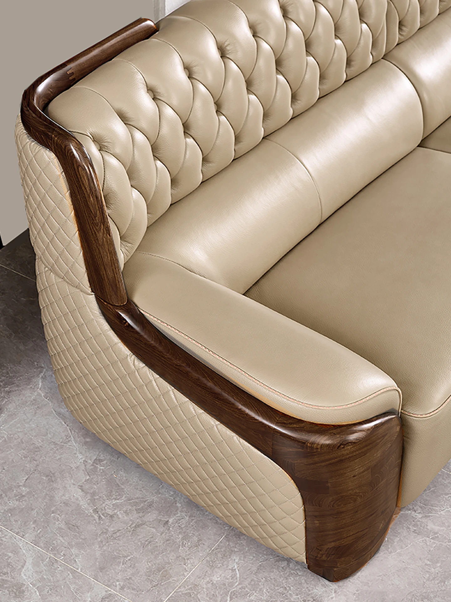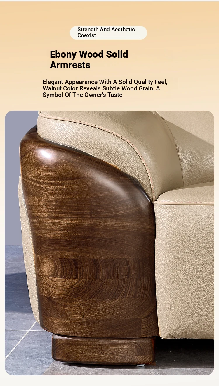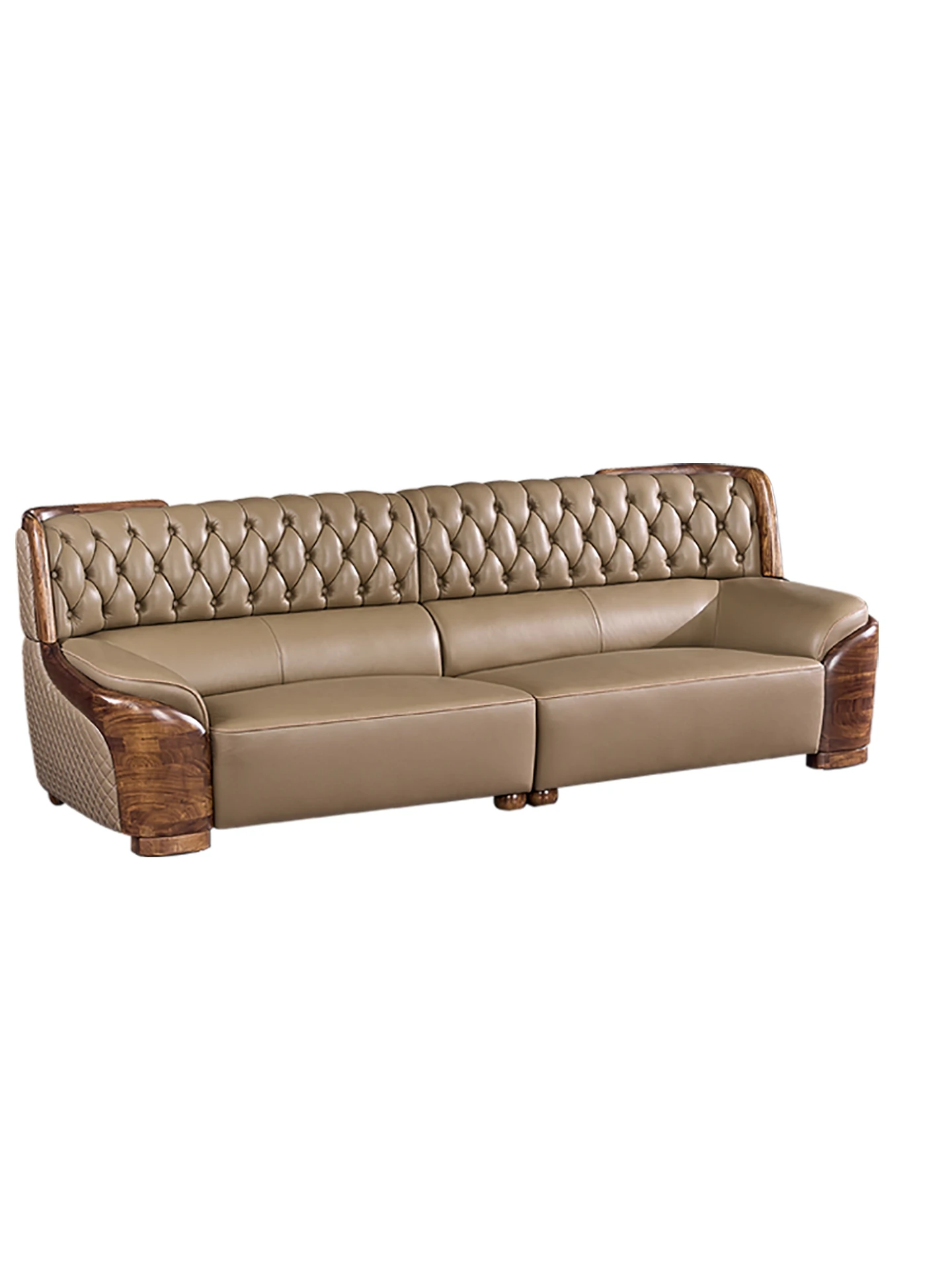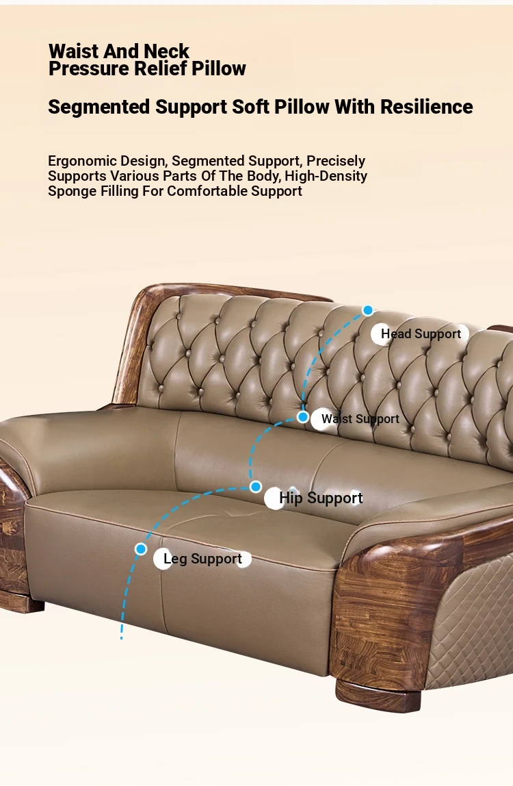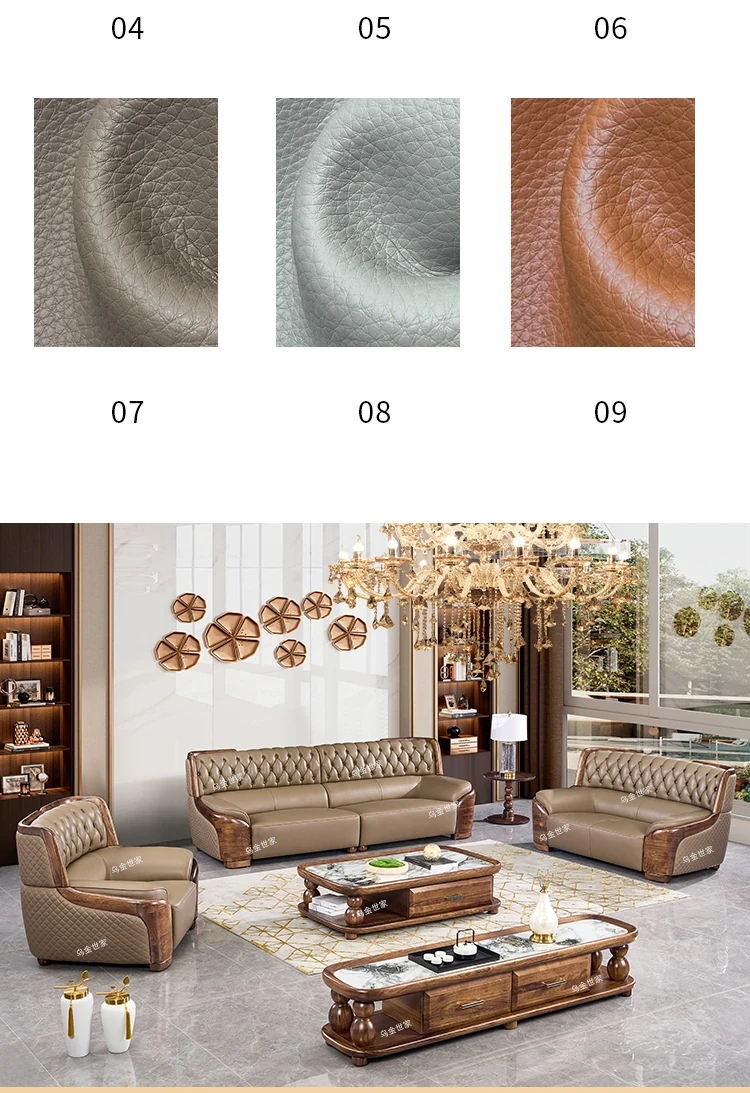 Luxury New Chinese Style Black Gold Wood Genuine Leather Sofa Set - Top Grain Cowhide, Elegant High-End Villa, European Modern Straight Sectional Design