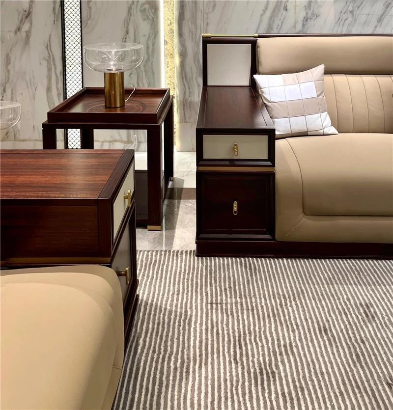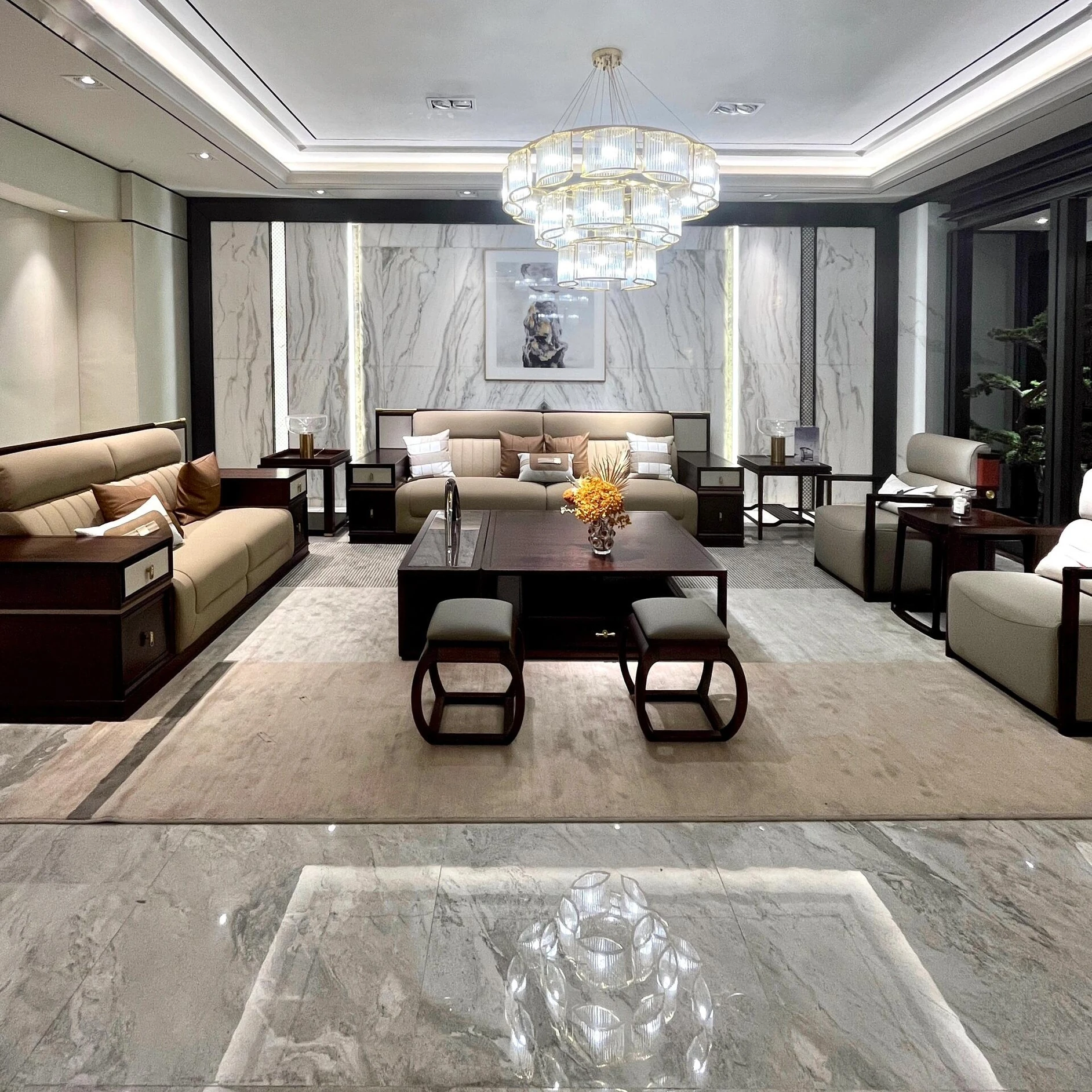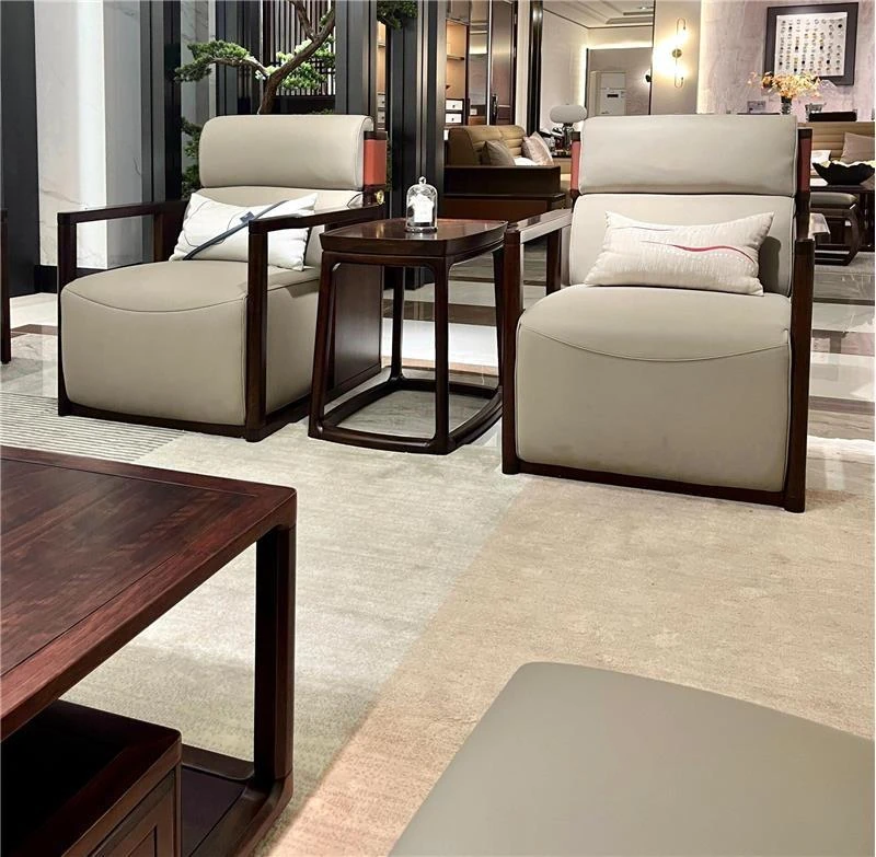 Luxury New Chinese Style Sofa in Black Walnut Wood for Spacious Living Rooms, Villas, and High-End Clubhouses – Perfect for Elegant Homes and Upscale Interiors.