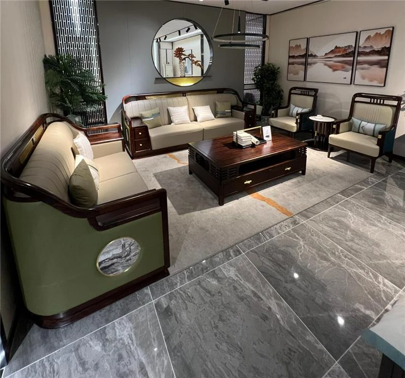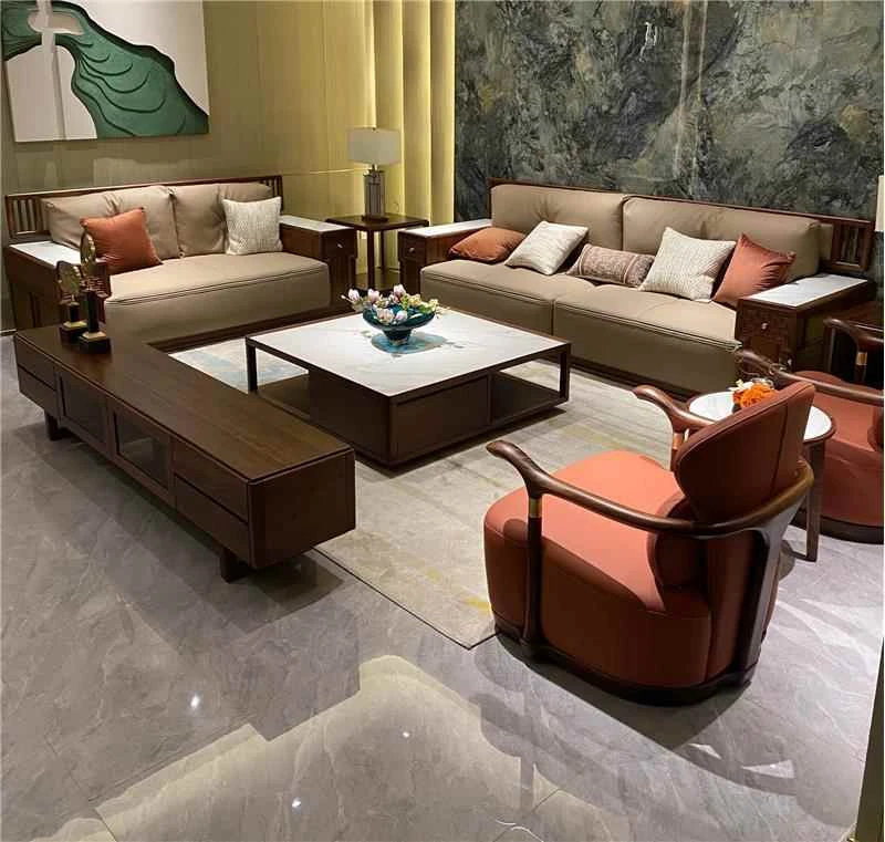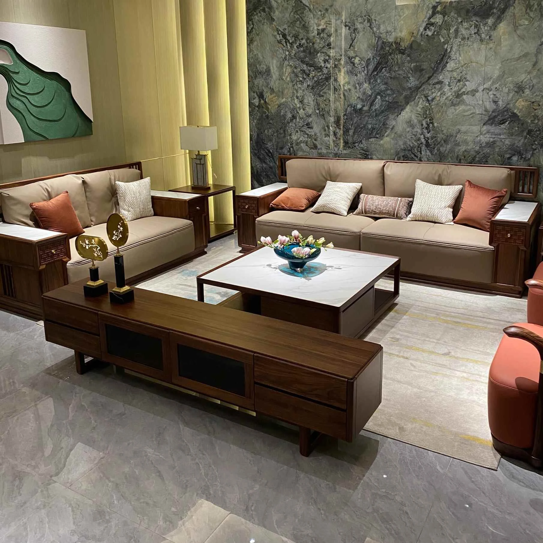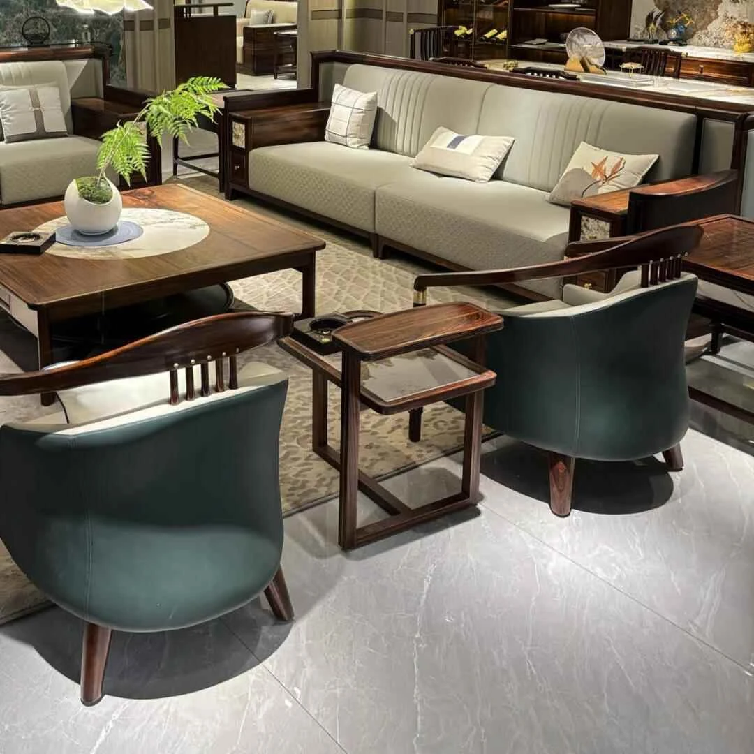 Luxury New Chinese Style Sofa - Solid Wukong Wood for Spacious Living Rooms, Villas, and High-End Clubhouses. Modern Minimalist Design for Upscale Homes.