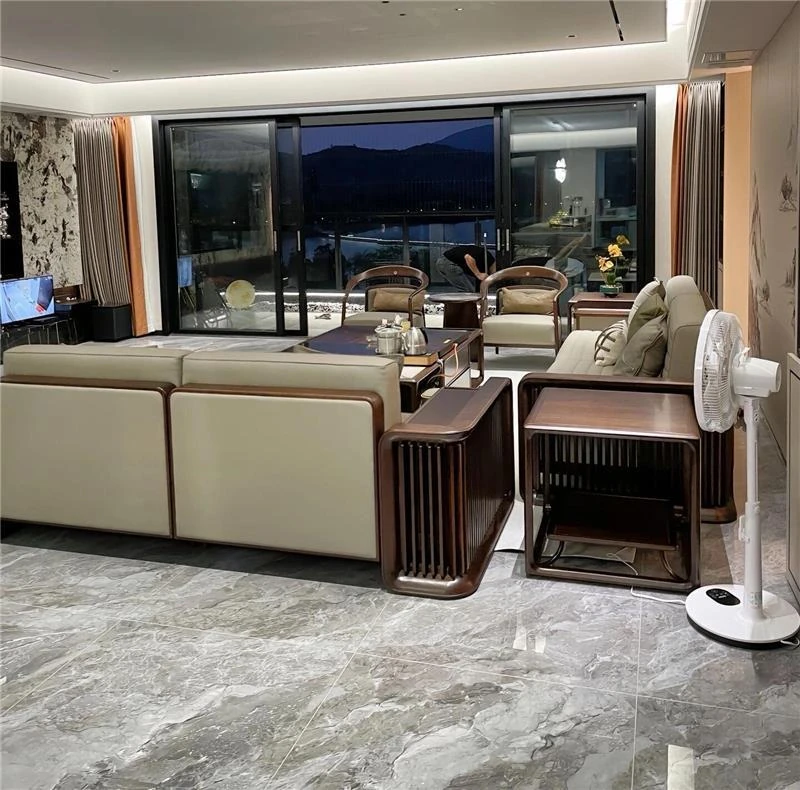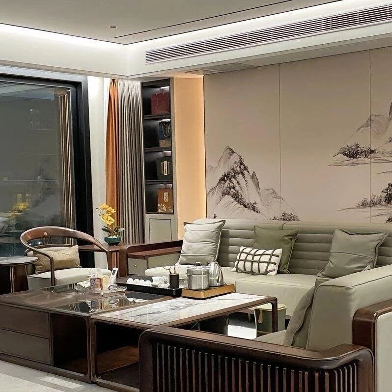 Luxury New Chinese Style Villa Clubhouse: High-End Spacious Bedrooms with Solid Wood Sofas in Ebony - Modern Elegance for Upscale Living
