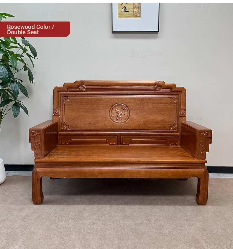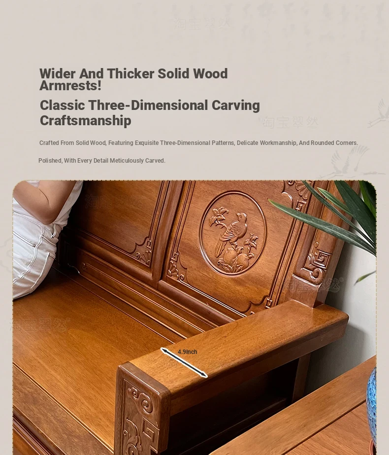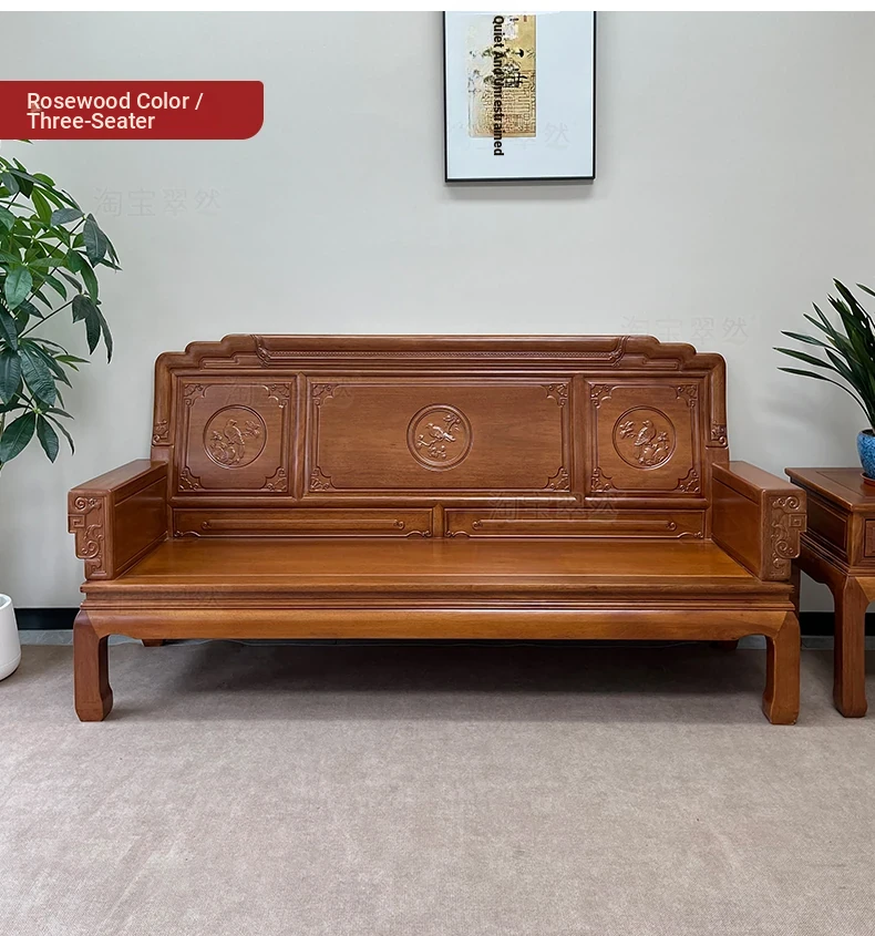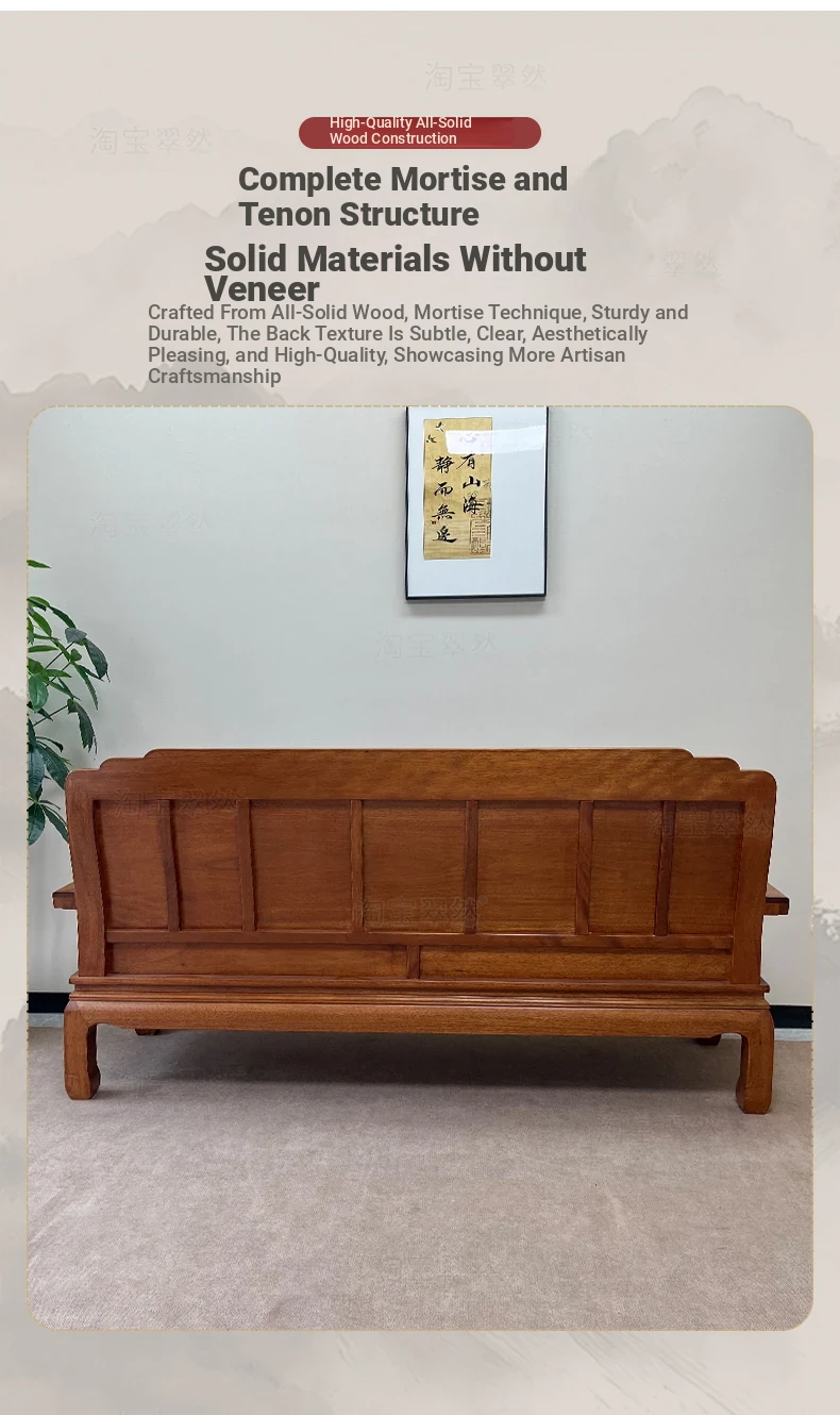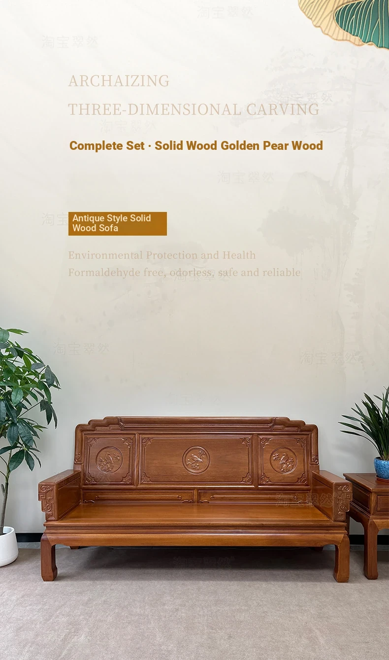 Luxury Solid Wood Sofa with Mortise and Tenon Joinery – Classic Antique Style Carved Design, Eco-Friendly Wood Wax Finish, Perfect for Modern Chinese Living Rooms