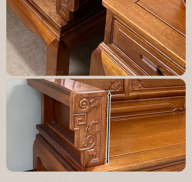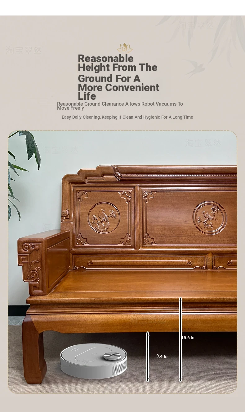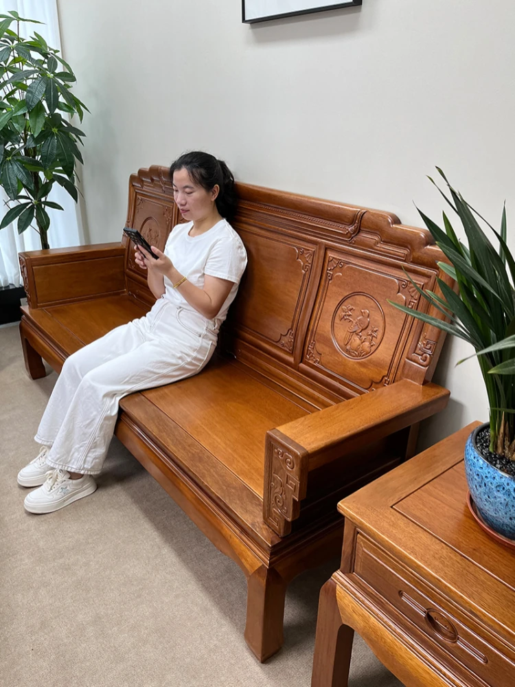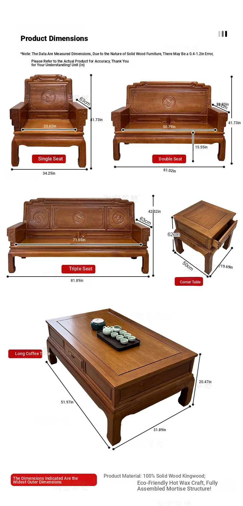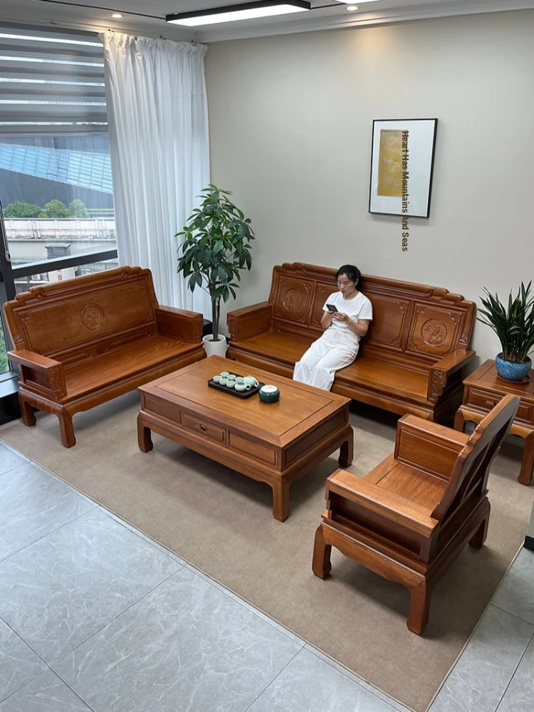 Luxury Solid Wood Sofa with Mortise and Tenon Joinery – Classic Antique Style Carved Design, Eco-Friendly Wood Wax Finish, Perfect for Modern Chinese Living Rooms