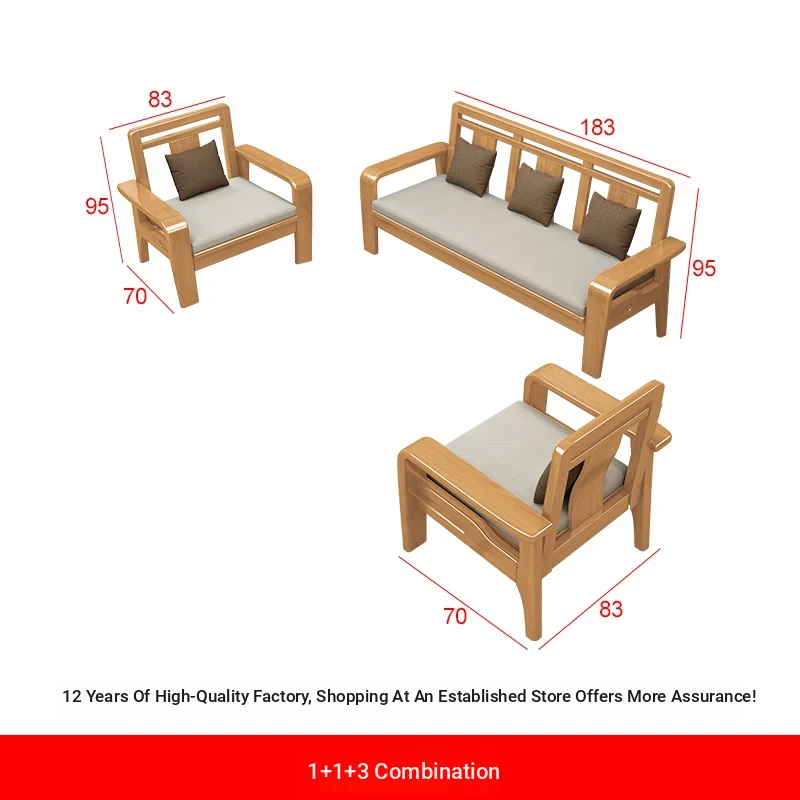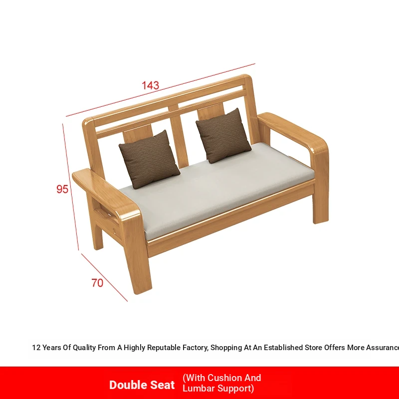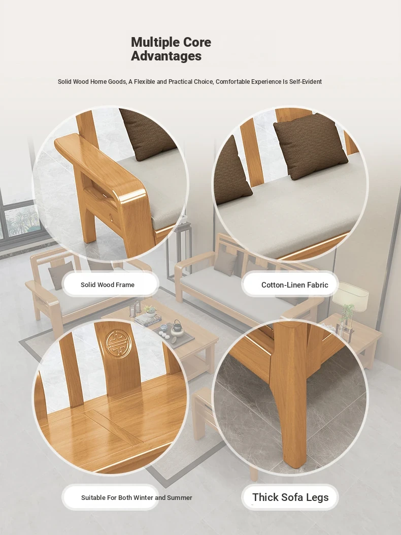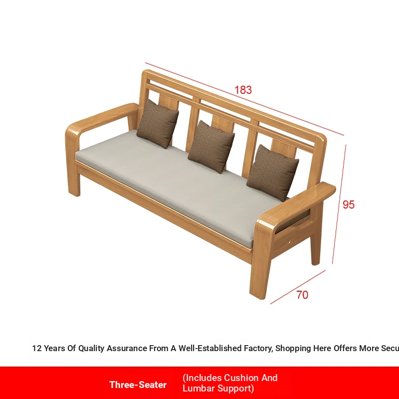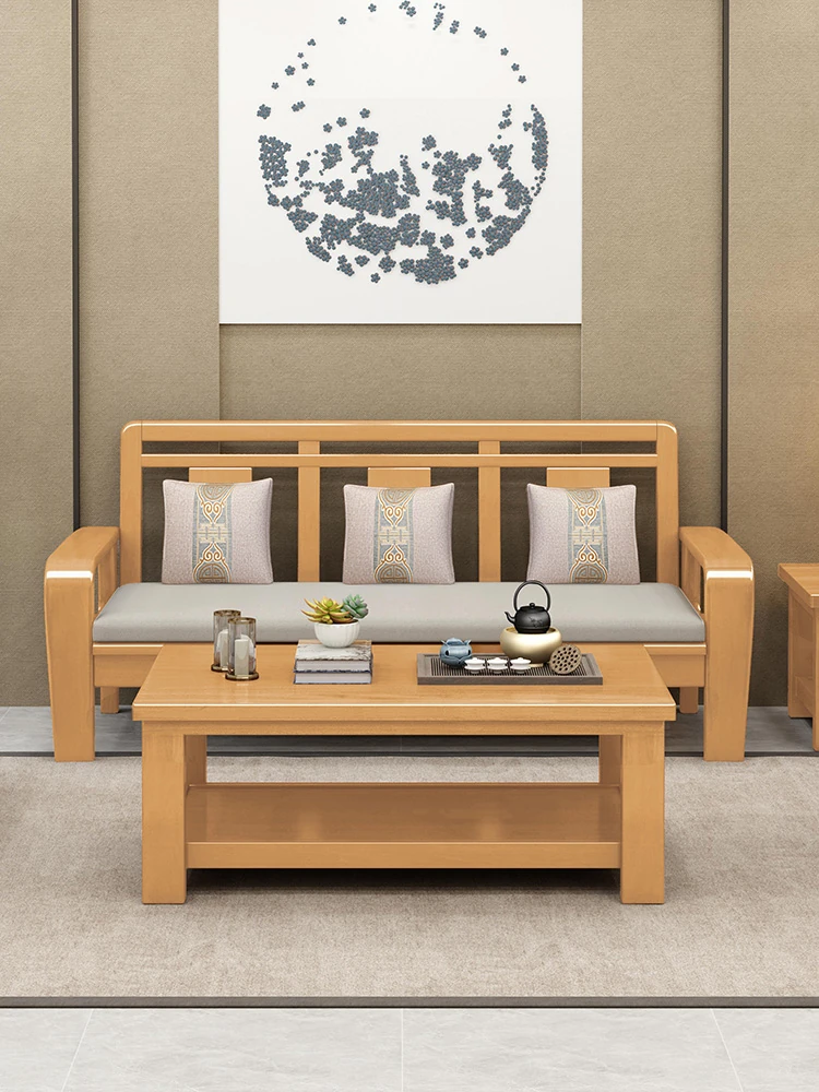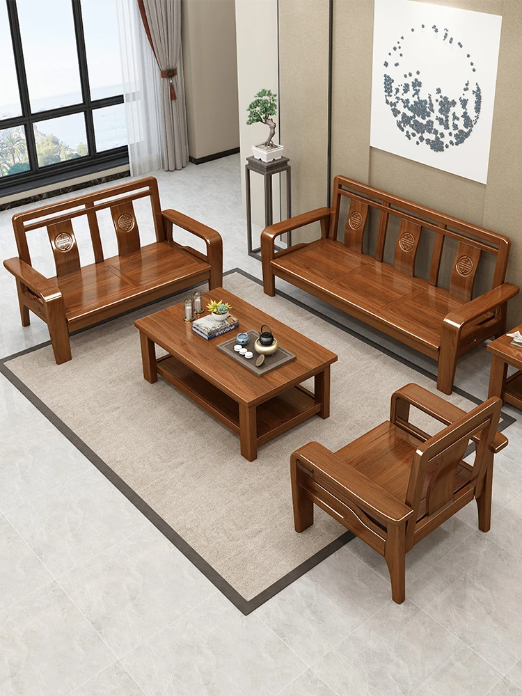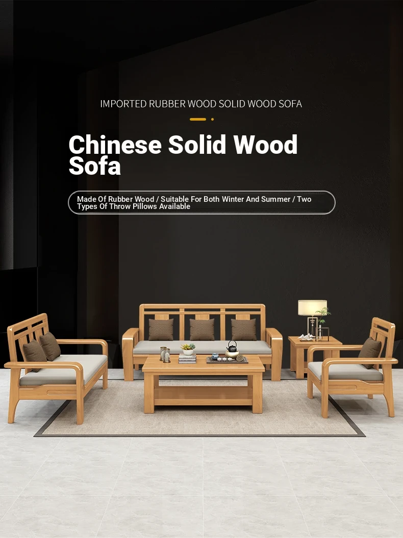 Modern Chinese Solid Wood Sofa - Versatile Winter & Summer Design, Minimalist 3-Seater for Small Rural Living Rooms, Classic Hard Seat Furniture