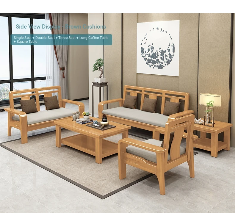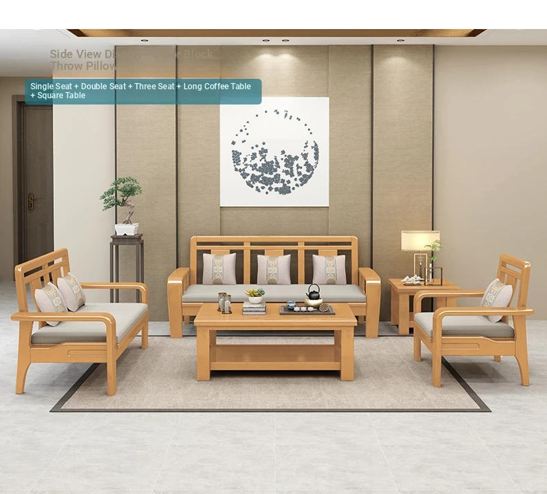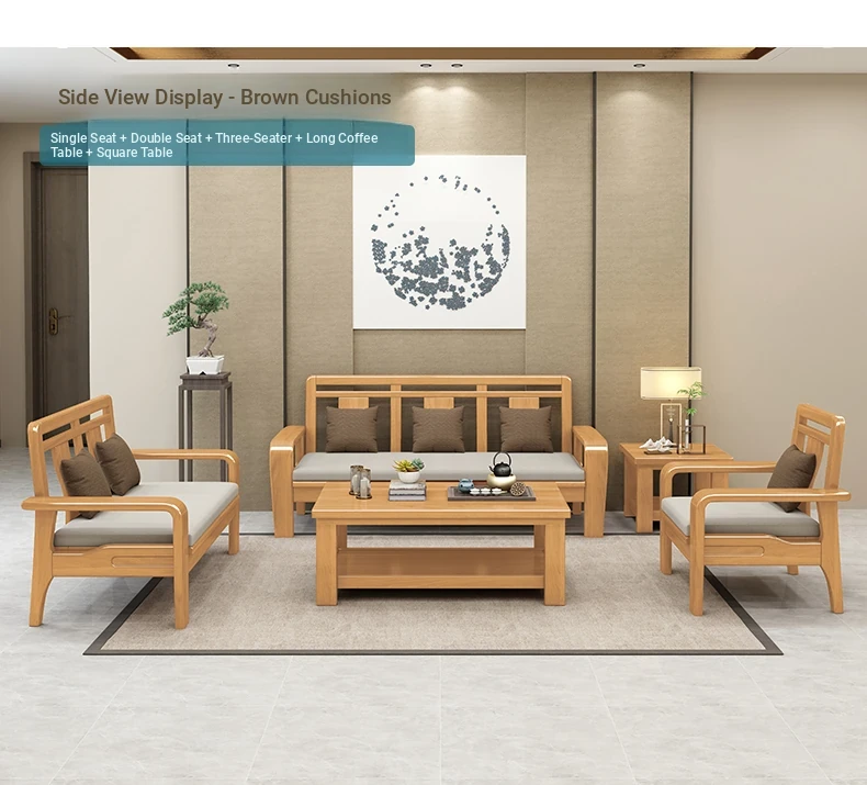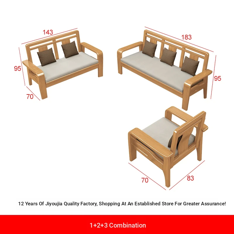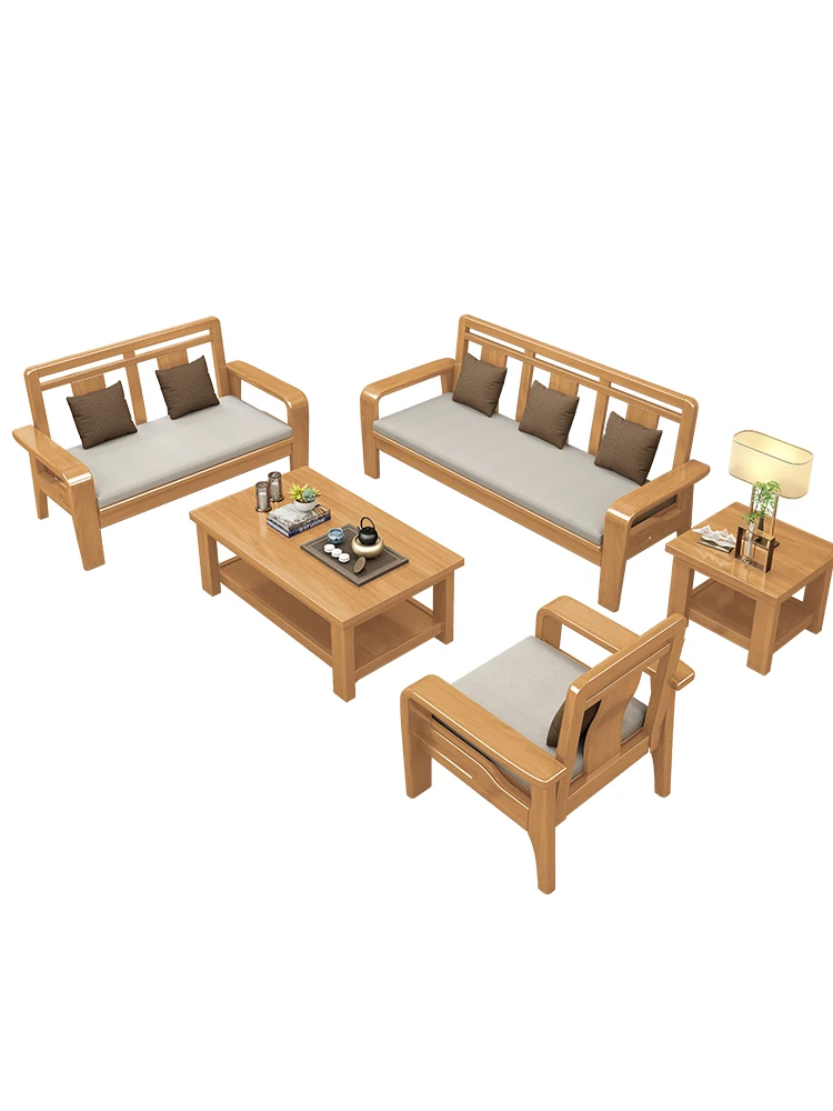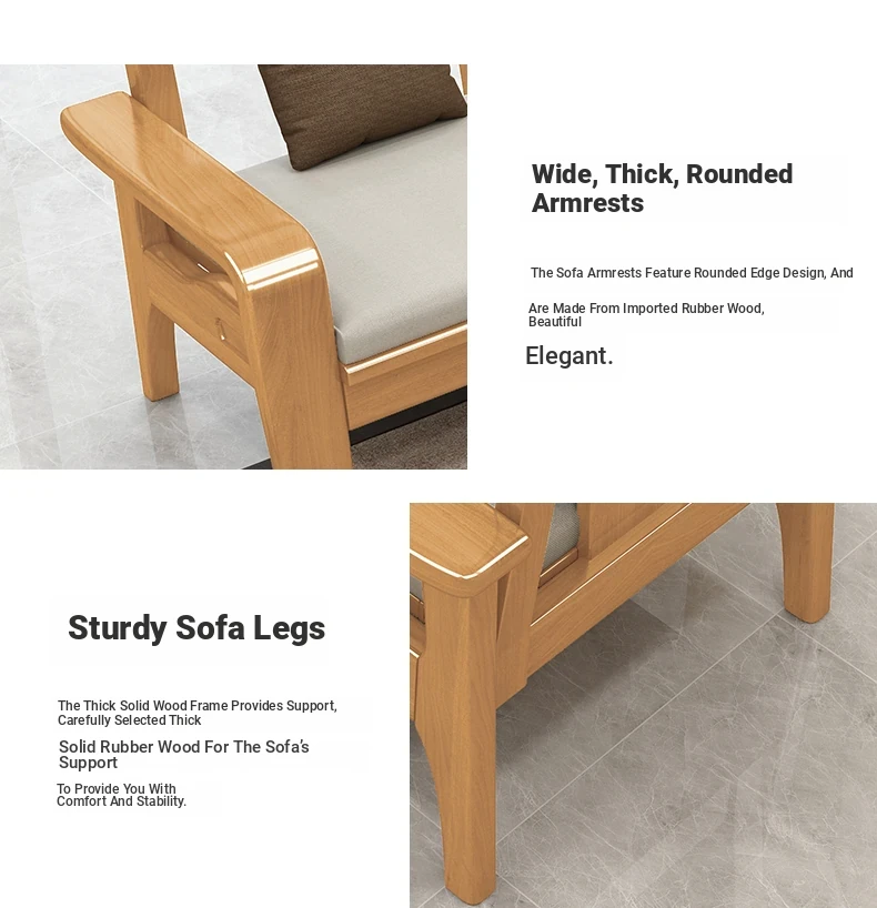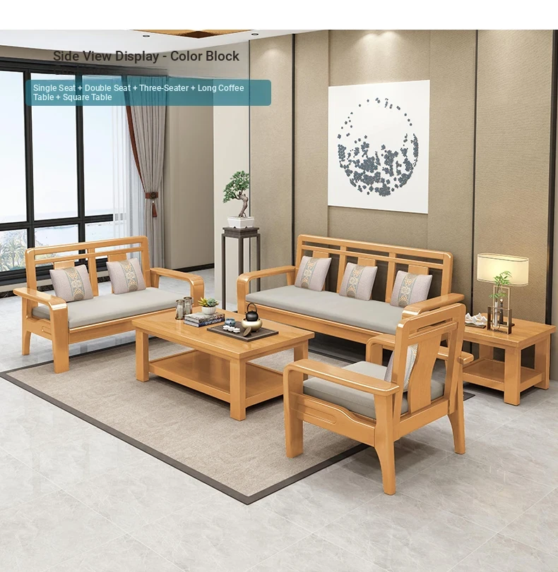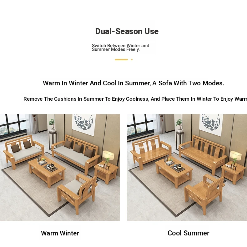 Modern Chinese Solid Wood Sofa - Versatile Winter & Summer Design, Minimalist 3-Seater for Small Rural Living Rooms, Classic Hard Seat Furniture