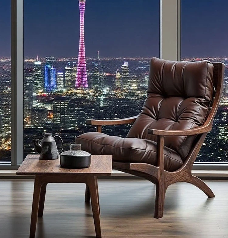 Modern Chinese Style Black Walnut and Ash Wood Armchair - Elegant Leisure Chair for Home, Living Room, Hotel, and Office - Trendy Furniture for Stylish Spaces