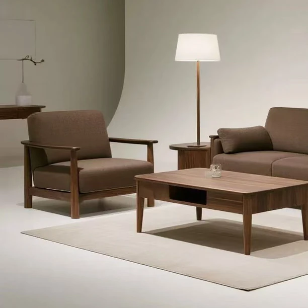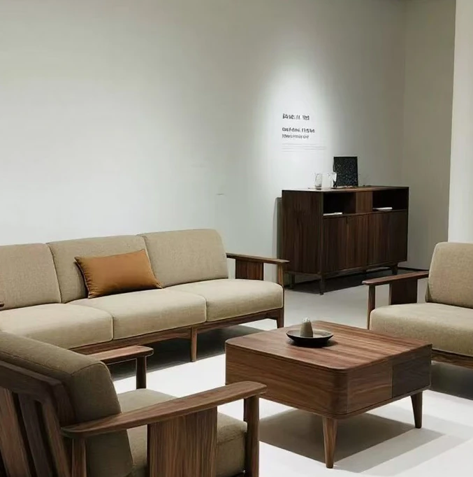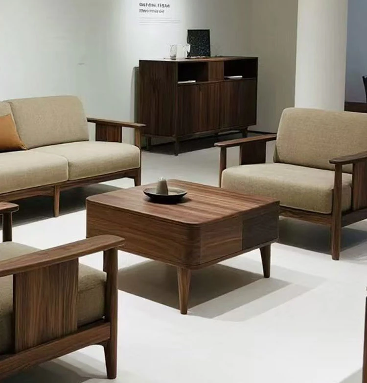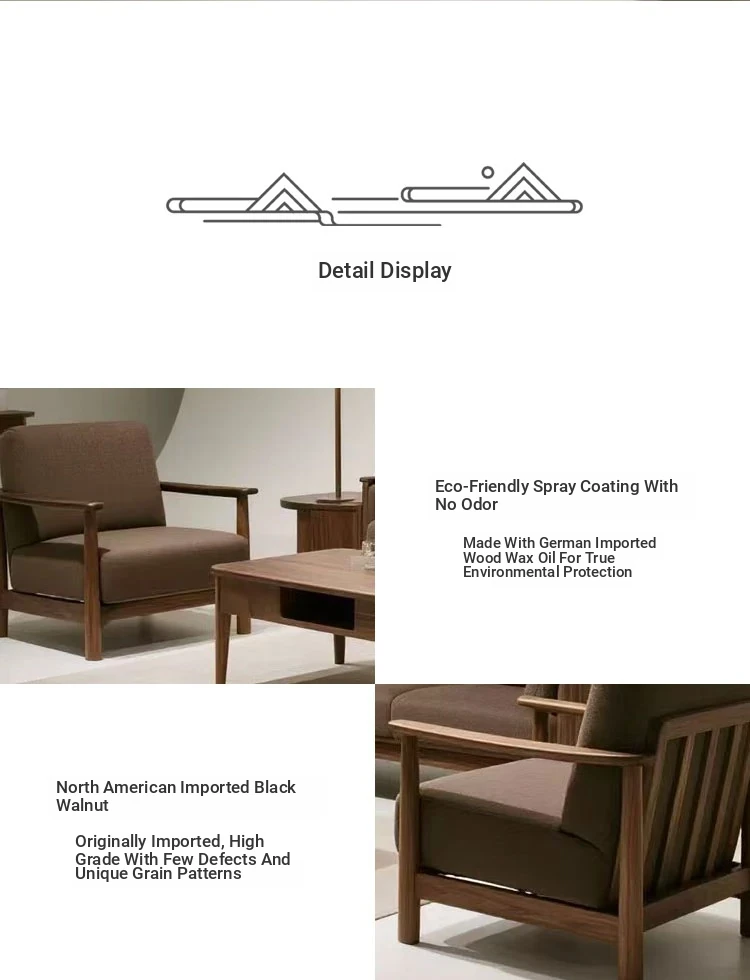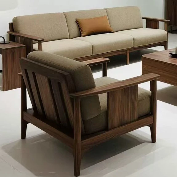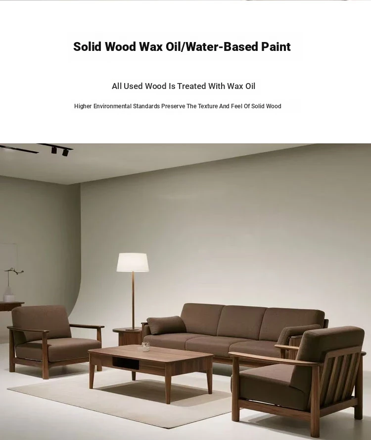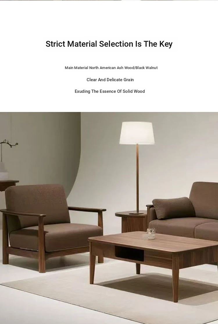 Modern Chinese Style Black Walnut and Ash Wood Sofa - Ideal for Hotels, B&Bs, Offices, and Homes. Perfect for Multi-Person Seating in Living Rooms!