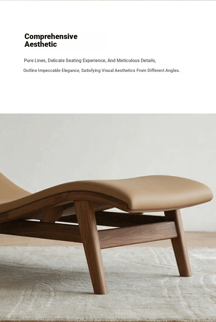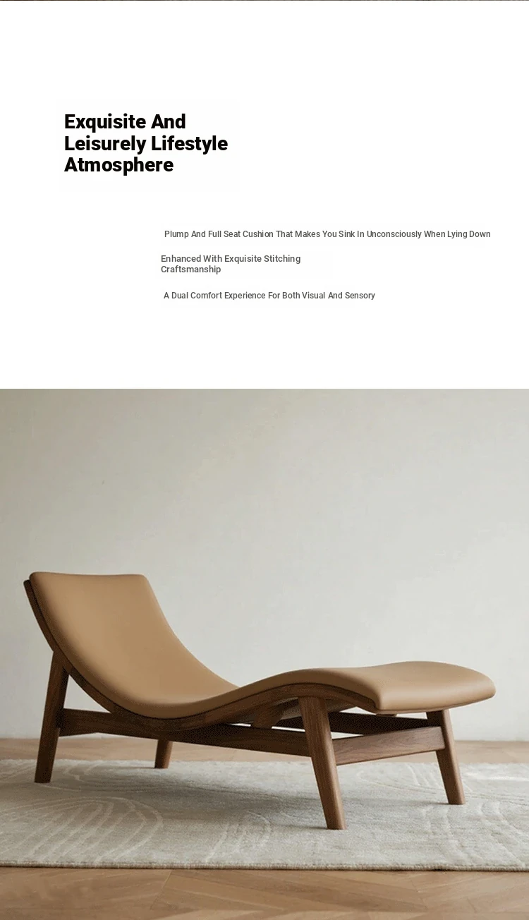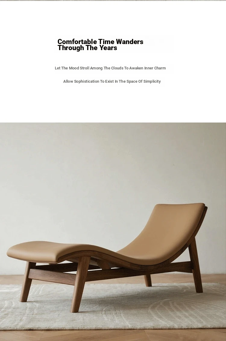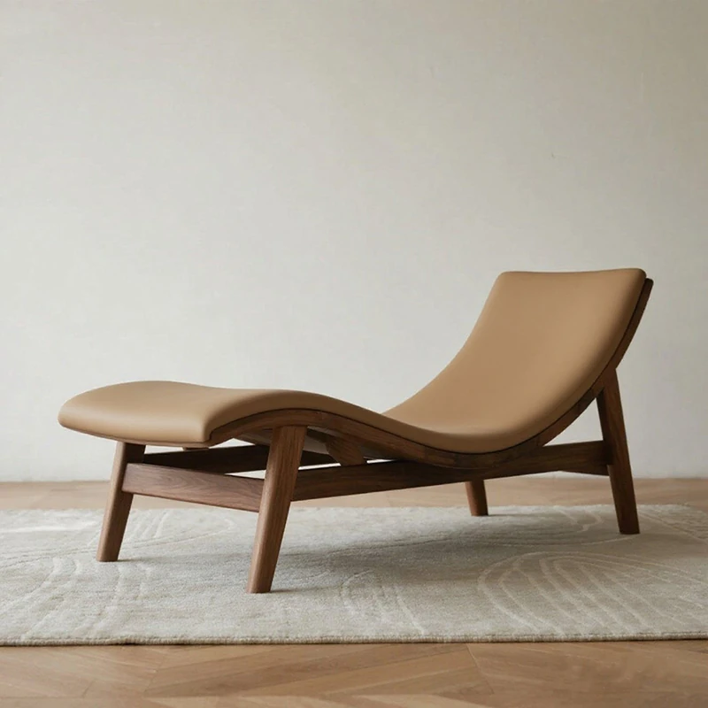 Modern Chinese Style Black Walnut and Ash Wood Solid Zen Chaise Lounge Chair – Ideal for Office, Hotel, and Guesthouse Seating